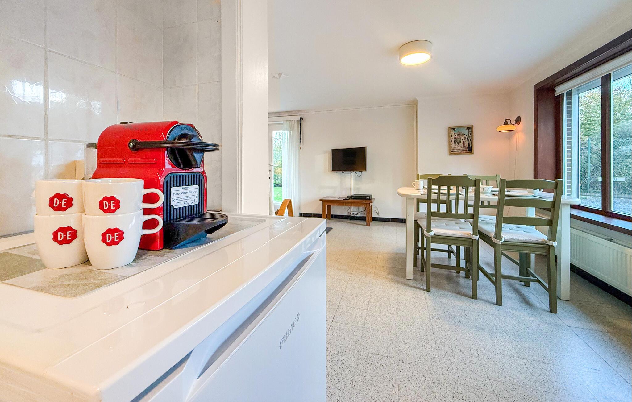 Denne ferieleiligheten er et herlig tilfluktssted for par eller små familier som ønsker å tilbringe avslappende dager ved den belgiske kysten. Den lyse stuen er smakfullt innredet, med komfortable lenestoler, en koselig sofa og en TV for avslappende kvelder. Tilbered favorittrettene dine på det praktisk innredede kjøkkenet, og nyt måltidene sammen ved spisebordet i stuen.