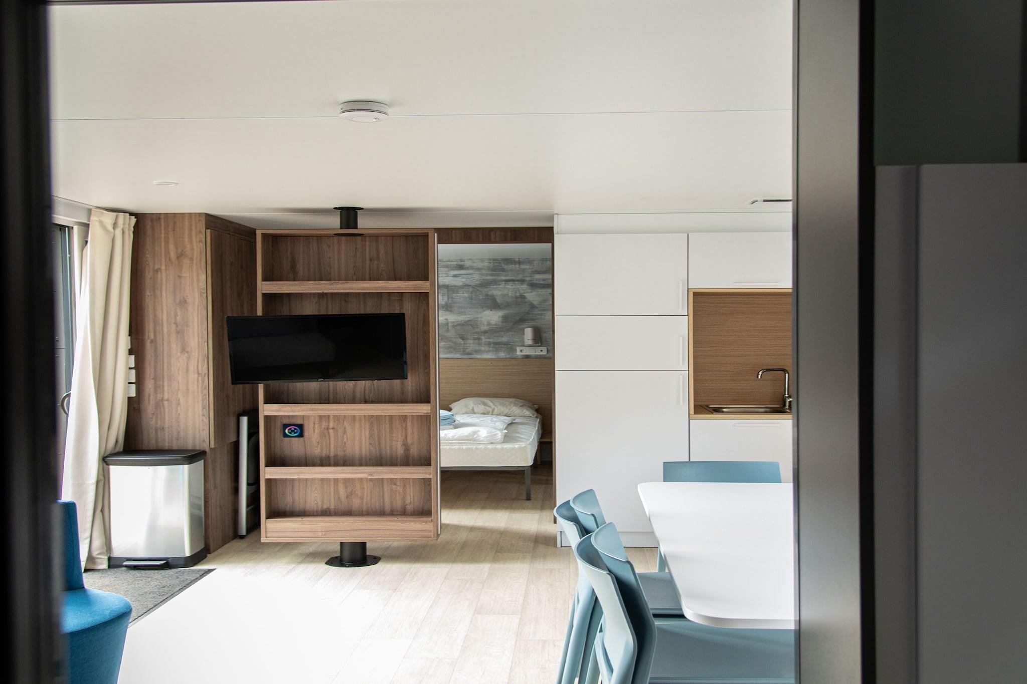 En koselig skogshytteflykt Denne frittliggende hytten ligger på den fredelige Camping Petite Suisse i Dochamps, og tilbyr den perfekte blandingen av komfort og natur. Med moderne interiør, to bad for ekstra privatliv og en romslig planløsning, er den ideell for familier eller små grupper. Slapp av på din private terrasse under parasollen eller slapp av etter en dag ute med en dukkert i det store, oppvarmede utendørsbassenget som deles med gjestene. Barn vil elske de trygge lekesonene, og kjæledyr er også mer enn velkomne - det er rikelig med åpen plass for eventyrene deres. Eventyr og sjarm i Ardennene Bare 700 meter unna, tilbyr de omkringliggende skogene fantastiske gang- og sykkelstier. Naturelskere kan utforske Parc Chlorophylle, kun en kort kjøretur unna, med turer i tretoppene og morsomme utstillinger for alle aldre. Et besøk til La Roche-en-Ardenne byr på slottsruiner, kajakkpadling på Ourthe-elven og fantastisk utsikt over dalen. Kjæledyreiere kan nyte hundevennlige skogsturer og spaserturer langs elven som både mennesker og kjæledyr vil elske. Nyt lokale smaker i nærheten En rekke restauranter og barer ligger mindre enn 100 meter unna, inkludert koselige Taverne Camping Petite Suisse som serverer belgiske klassikere med uteservering perfekt for kjæledyr. For et mer raffinert preg tilbyr Le Cor de Chasse i Wéris (25 min kjøring) Michelin-stjerneservering. Lokale butikker i nærheten gjør det enkelt å hamstre ferske råvarer eller nyte en morgenkaffe på terrassen.