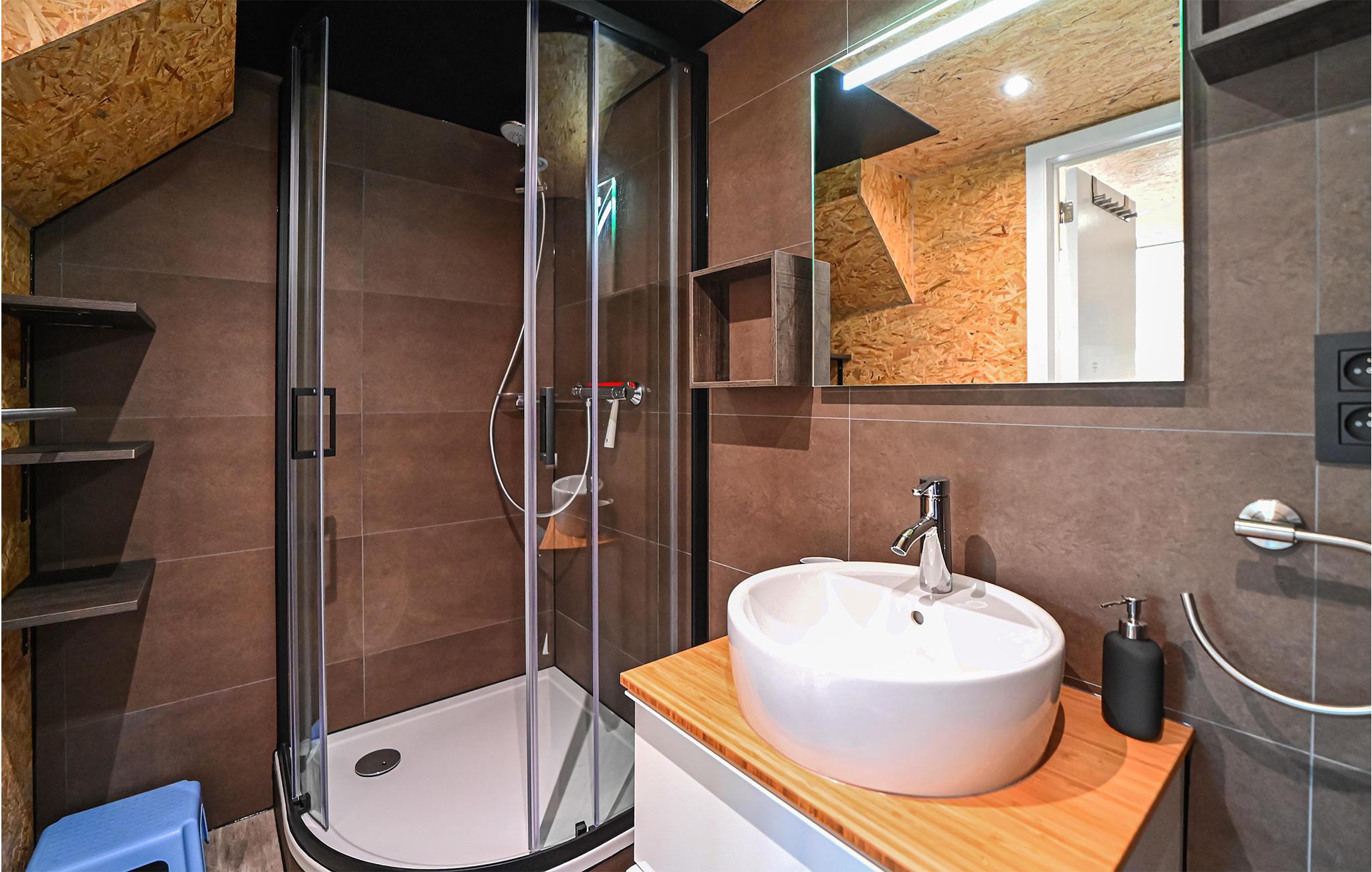 - WC med varmt og kaldt vann, Dusj