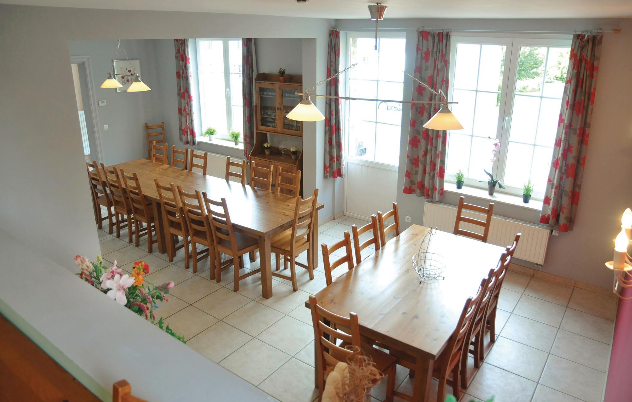 Innkvarteringen er en renovert herregård som ligger i hjertet av Wéris, en av de vakreste landsbyene i Vallonia, bare 10 km fra Durbuy. Wéris har beholdt sin opprinnelige stil veldig godt gjennom årene. I landsbyens omgivelser finner du mer enn 4000 år gamle megalittiske steder (megalittiske graver) og bautasteiner (bautasteiner). Du kan også vandre, sykle eller ri langs dalene i Ourthe og dens biflod, Aisne. Du vil bli overrasket over de mange vakre utsiktspunktene, som du ofte vil se ganske uventet. Selvfølgelig bør du besøke Durbuy og ikke glemme slottet La Roche-en-Ardenne og grottene i Hotton under oppholdet ditt. Bare 200 m fra feriehuset ditt finner du flere restauranter og hyggelige kafeer. Barna kan boltre seg på plenen ved herregården. Dette huset er hovedsakelig beregnet på familiegrupper. Andre grupper kan imidlertid aksepteres med eierens samtykke og med en mulig økning i depositumet. Grupper av personer under 30 år er generelt ikke tillatt.