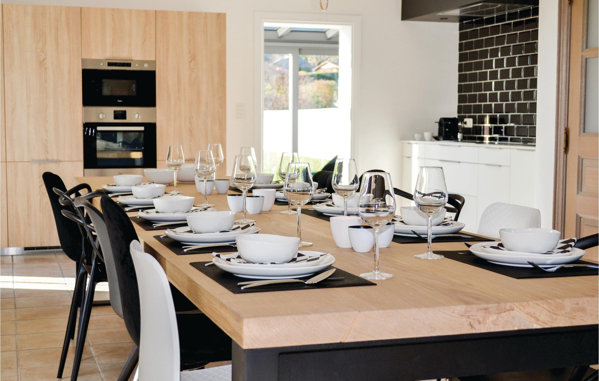 Dette feriehuset med privat basseng og badstue ligger vakkert til i en liten landsby i nærheten av Durbuy i de belgiske Ardennene. Fra den vakre lyse stuen ser du ut over åkrene og foten av Ardennene i miles. Husets trumfkort er selvfølgelig det overbygde bassenget, hvor du kan svømme hele sesongen fra april til oktober, uavhengig av været. Badstuen i hagen fullfører velværeområdet. Huset er totalrenovert og har plass til 10 personer. I nærheten av stuen med vedovn, Smart TV og spillkonsoll er det en bar og bordfotball. Spisestuen med åpent kjøkken er koselig og fullt utstyrt. De som ønsker å nyte solen selv i kaldere temperaturer, kan kose seg på verandaen og nyte utsikten. De fem romslige soverommene ligger i første etasje. Ett av dem er til og med utstyrt med egen dusj på bakkenivå. Det største badet er luksuriøst utstyrt med badekar og dusj. Det tredje badet ligger i gangen. Herfra kan du ta vakre turer eller sykkelturer. Det er terrengsykkelstier i nærheten. Durbuy er kjent for de perfekte utendørssportene som kajakkpadling og klatring. I tillegg er Durbuy et ideelt sted for gourmeter, den ene restauranten er bedre enn den andre. Ungdom under 30 år og utdrikningslag er ikke tillatt.