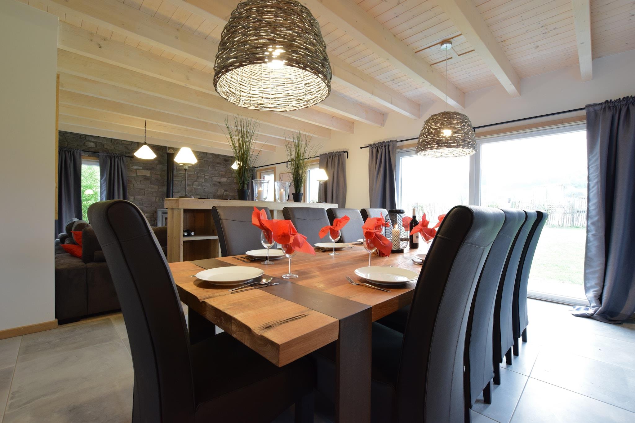Velkommen til denne elegante og luksuriøse 5-roms villaen i Durbuy, ideell for en stor familie eller gruppe på opptil 10 gjester. Enten du er her for en helgetur eller en lengre ferie, tilbyr dette eksklusive tilfluktsstedet komfort, avslapning og en rekke førsteklasses fasiliteter. Slapp av i den private badstuen eller boblebadet etter en dag med utforsking av de sjarmerende omgivelsene. Ligger nær Ourthe-elven, er Durbuy kjent som den minste byen i verden og er perfekt for naturskjønne turer, sykling og vannsport. Spaser gjennom de pittoreske middelaldergatene og oppdag en rekke koselige restauranter, kafeer og butikker. Golfentusiaster vil sette pris på den nærliggende Durbuy golfbane. Villaen har en stor inngjerdet hage med lekeapparater hvor barna kan kose seg trygt, mens voksne slapper av på balkongen eller takterrassen. Kveldene er perfekte for en grillfest under stjernene. Innendørs fritid er like innbydende med bordtennis, airhockey, dart og bordfotball tilgjengelig. En barneseng og barnestol gjør dette hjemmet virkelig familievennlig.