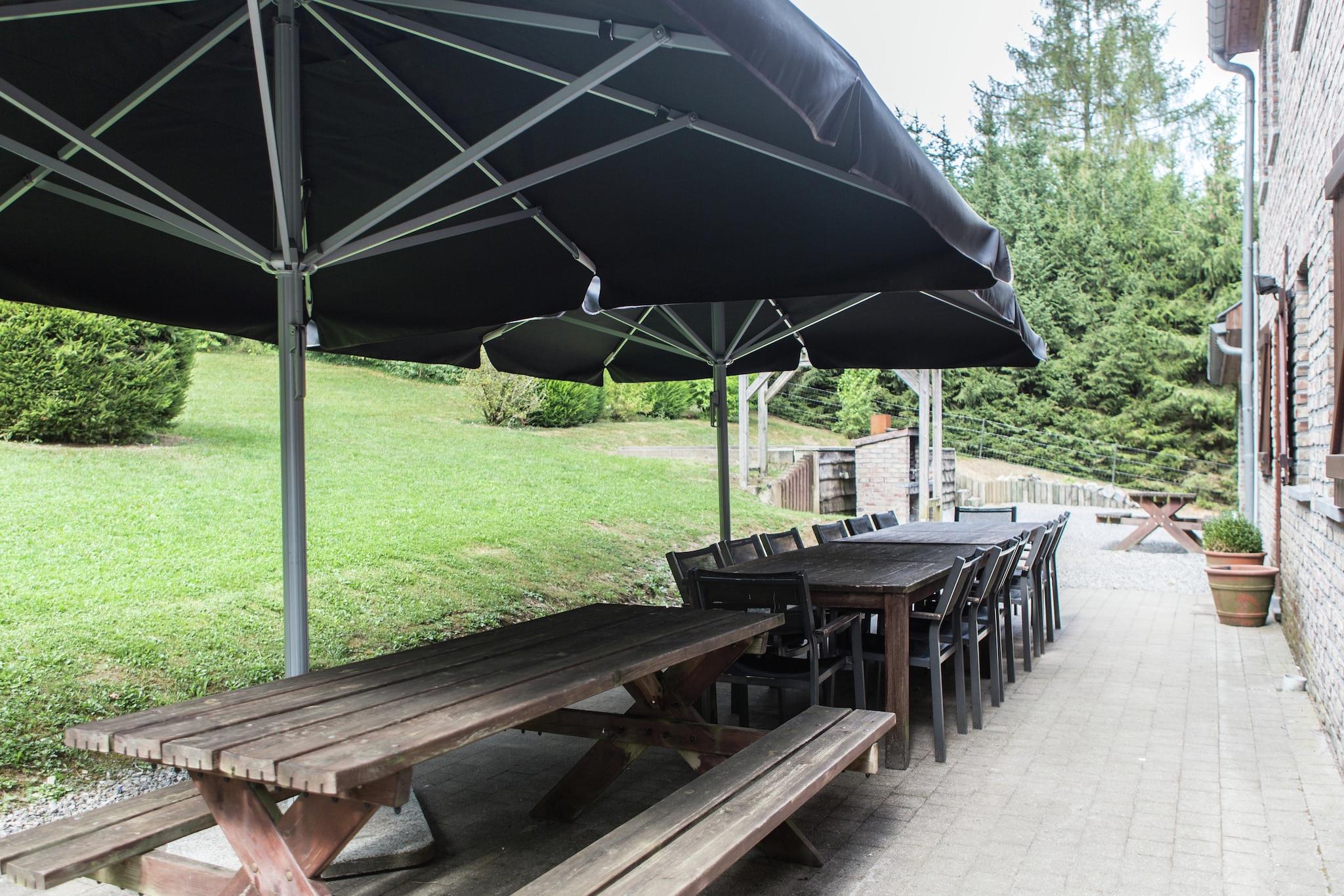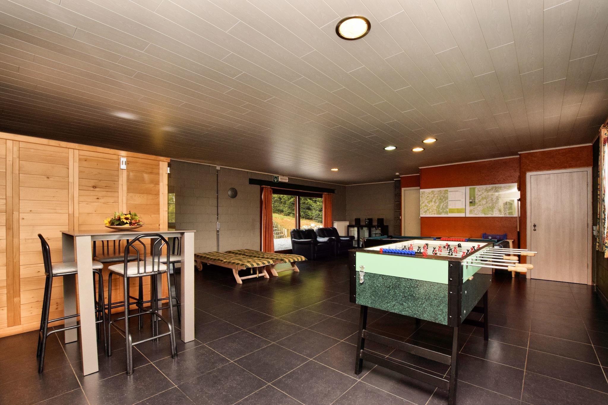 Denne romslige villaen med 7 soverom ligger bare 7 km fra den romantiske byen Durbuy, og er perfekt for familier, naturelskere og teambuilding-tilfluktssteder. Boligen ligger i utkanten av en rolig landsby, og tilbyr en stor hage med petanquebane, solrik terrasse og lekeapparater for barn. Med plass til opptil 15 gjester, er den ideell for gruppeturer i Ardennene. Innvendig har villaen et avslapningsrom med badstue, bordtennis, bordfotball og et treningsområde. Det åpne kjøkkenet og spisestuen er perfekt for felles måltider, og den koselige stuen inviterer deg til å slappe av etter en dag med utforsking. Kjæledyr er velkomne mot en ekstra avgift, og parkering er tilgjengelig på stedet. Utforsk grottene i Hotton (14 km) og Remouchamps (25 km), eller nyt kajakkpadling på Ourthe-elven, golf i Barvaux og stå på ski om vinteren. De sjarmerende byene Heyd, La Roche-en-Ardenne og middelalderens Durbuy er alle innen rekkevidde. Enten du går på tur, sykler eller bare slapper av, tilbyr denne villaen en allsidig og innbydende base i Ardennene.