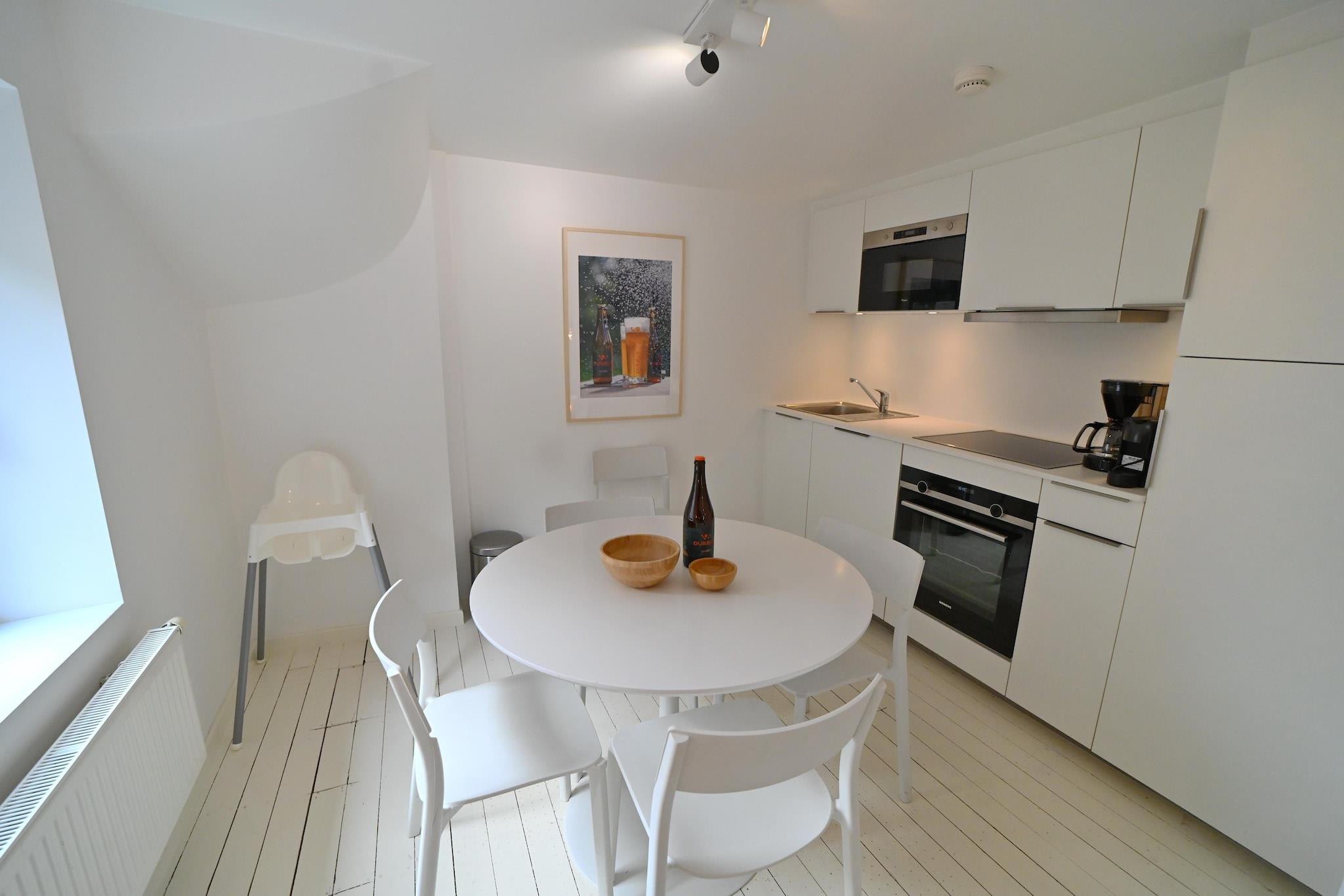 Denne koselige leiligheten har en ideell beliggenhet i hjertet av Durbuy. Du har tilgang til en koselig overbygd terrasse i byens hage, med oppbevaring for sykler. Leiligheten er tilgjengelig via en utendørs trapp. Durbuy er ifølge eksperter den minste byen i verden, og har et stort torg med terrasser og restauranter. Det er også morsomt å handle i de mange små og koselige butikkene. For mer handling kan du hengi deg til Durbuy Adventure (5km), hvor du kan velge mellom mer enn 60 forskjellige aktiviteter, som paintball, terrengsykling, abseiling, klatring og scrambling. Golfentusiasten kan gå til ulike golfbaner i området, blant de vakreste i Ardennene. Besøk også bryggeriet La Ferme au Chêne, der den berømte Marckloff-ølen brygges: en gulbrun øl med litt bitter ettersmak. Selvfølgelig er det også en ost fra øl med samme navn. Om vinteren er dette et flott skiområde. De mest kjente Alpine skibakker er Baraque de Fraiture (27km) og Val de Wanne (36km). Langrenn er mulig i den nærliggende Odeigne (25 km), Samrée (22 km) og Vecmont (29 km), alle mindre enn en halv time unna.