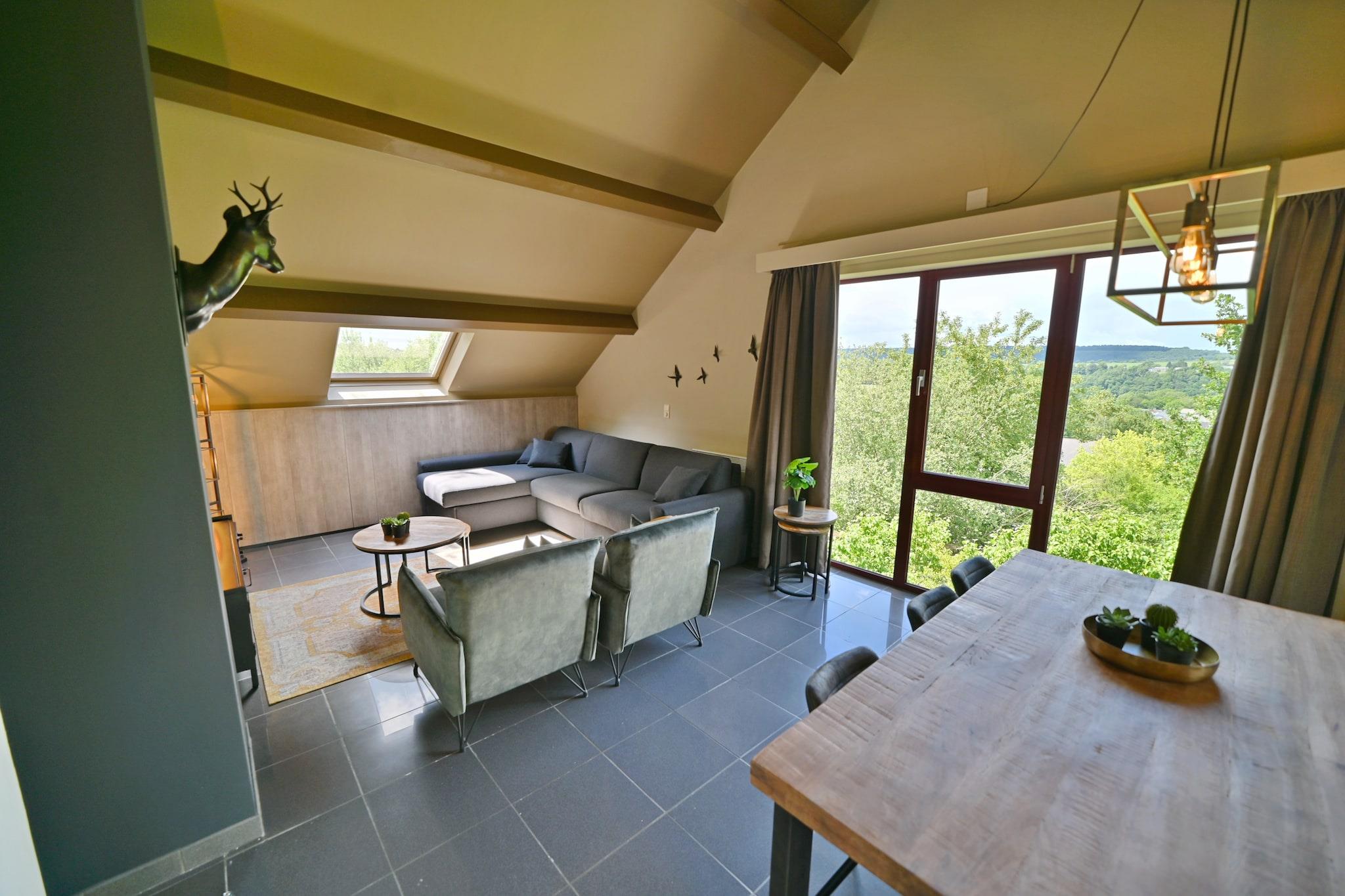 Denne sjarmerende leiligheten i 2. etasje ligger i de rolige skogene til Résidence Durbuy, og tilbyr en perfekt blanding av moderne komfort og rustikk sjarm. Varmt interiør, en koselig sovesofa og stilig innredning skaper en avslappende atmosfære for oppholdet ditt. Det velutstyrte, åpne kjøkkenet inkluderer en kombinert mikrobølgeovn, oppvaskmaskin og kaffemaskin i Nespresso-stil – ideelt for rolig frokost eller middag med venner. Med to soverom og et elegant bad med badekar-dusj-kombinasjon, er plassen perfekt egnet for familier eller små grupper på opptil fire voksne og to barn under 12 år. Ta med deg din pelskledde venn - denne leiligheten tar imot kjæledyr! Utforsk de frodige stiene i nærliggende Bois de Viné, ideelle for naturskjønne hundeturer, eller ta en spasertur langs elven Ourthe, bare noen minutter unna. Mange lokale kafeer og parker i Durbuy er kjæledyrvennlige, og leilighetens private terrasse er perfekt for å slappe av med valpen ved din side. Enten du slapper av i solen eller jager pinner på plenen, vil kjæledyret ditt elske det her like mye som du gjør. Bare en kort kjøretur eller sykkeltur fra det historiske sentrum av Durbuy finner du brosteinsbelagte gater med innbydende spisesteder. Unn deg lokale favoritter som Le Fou du Roy for belgisk mat eller nyt vedfyrt pizza på en kjæledyrvennlig terrasse på La Piazza. Etter middag kan du spasere i middelaldergatene med hunden din og nyte magien til den minste byen i verden.