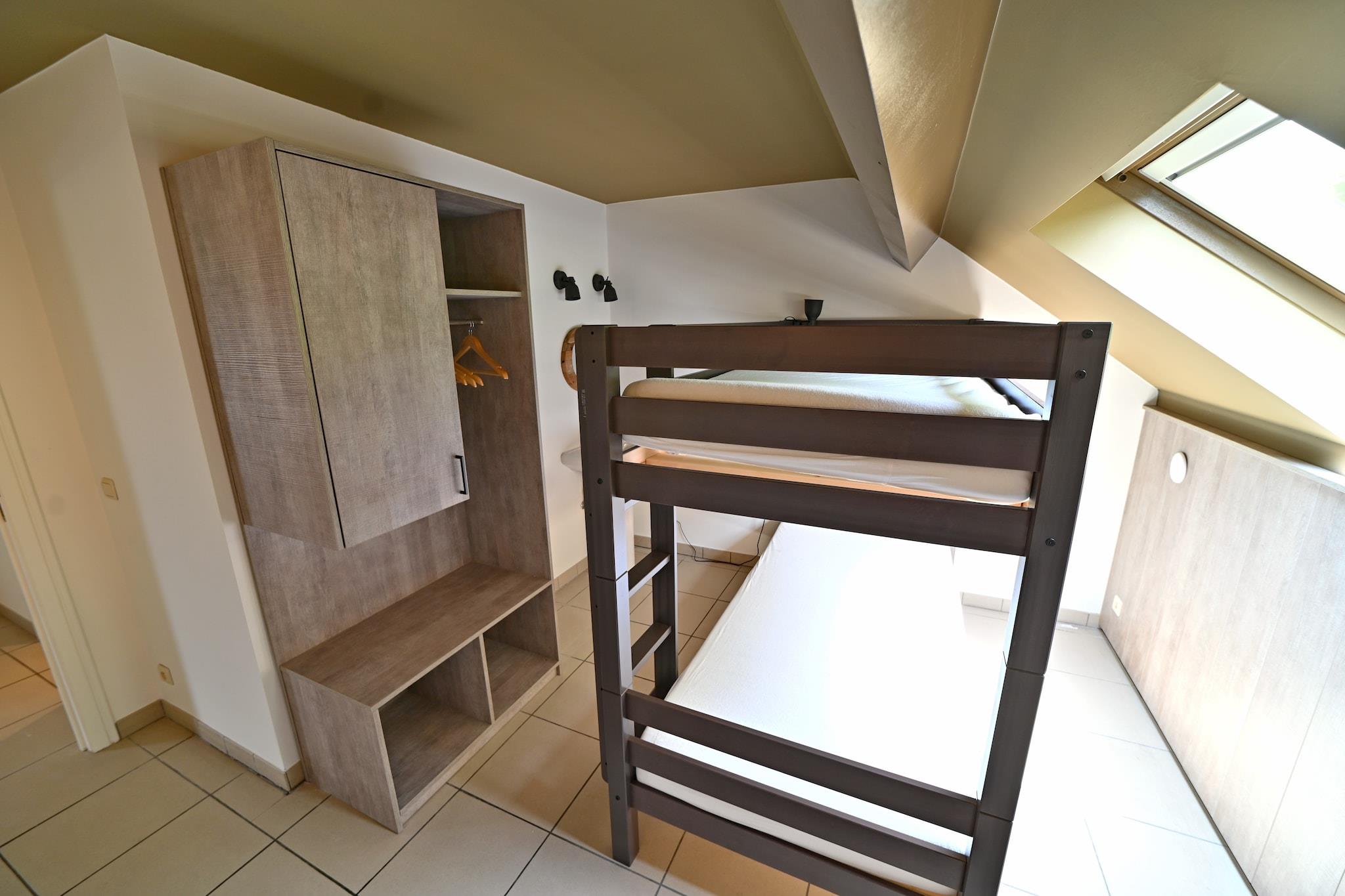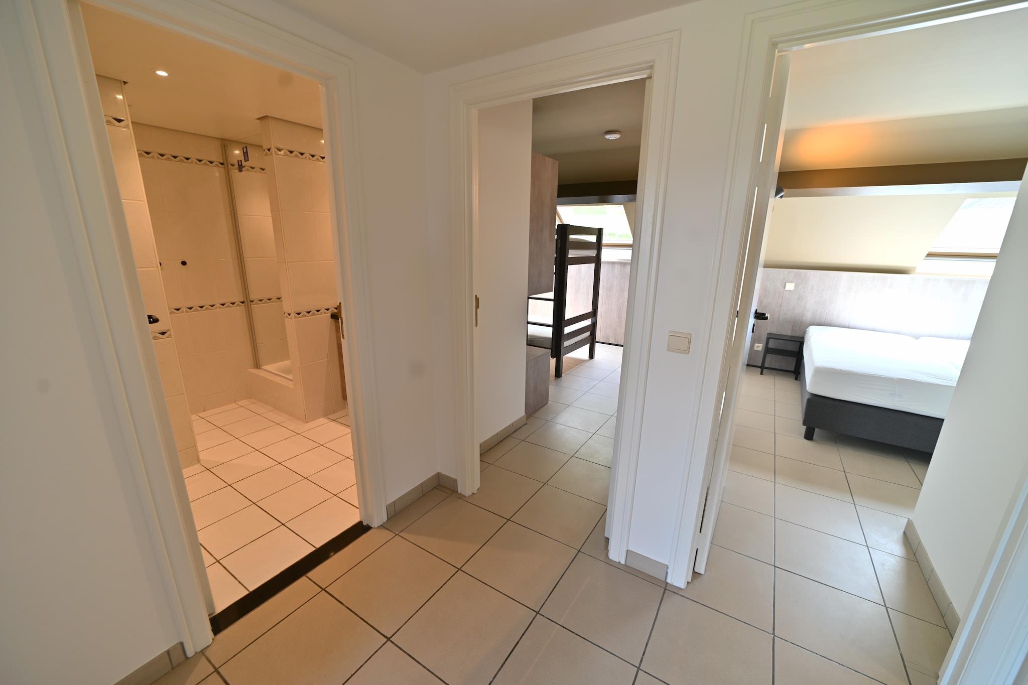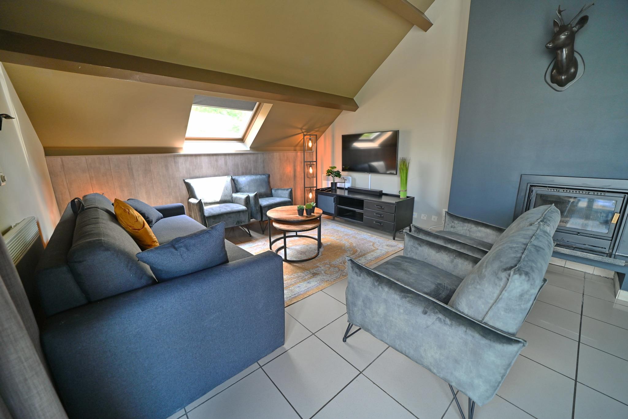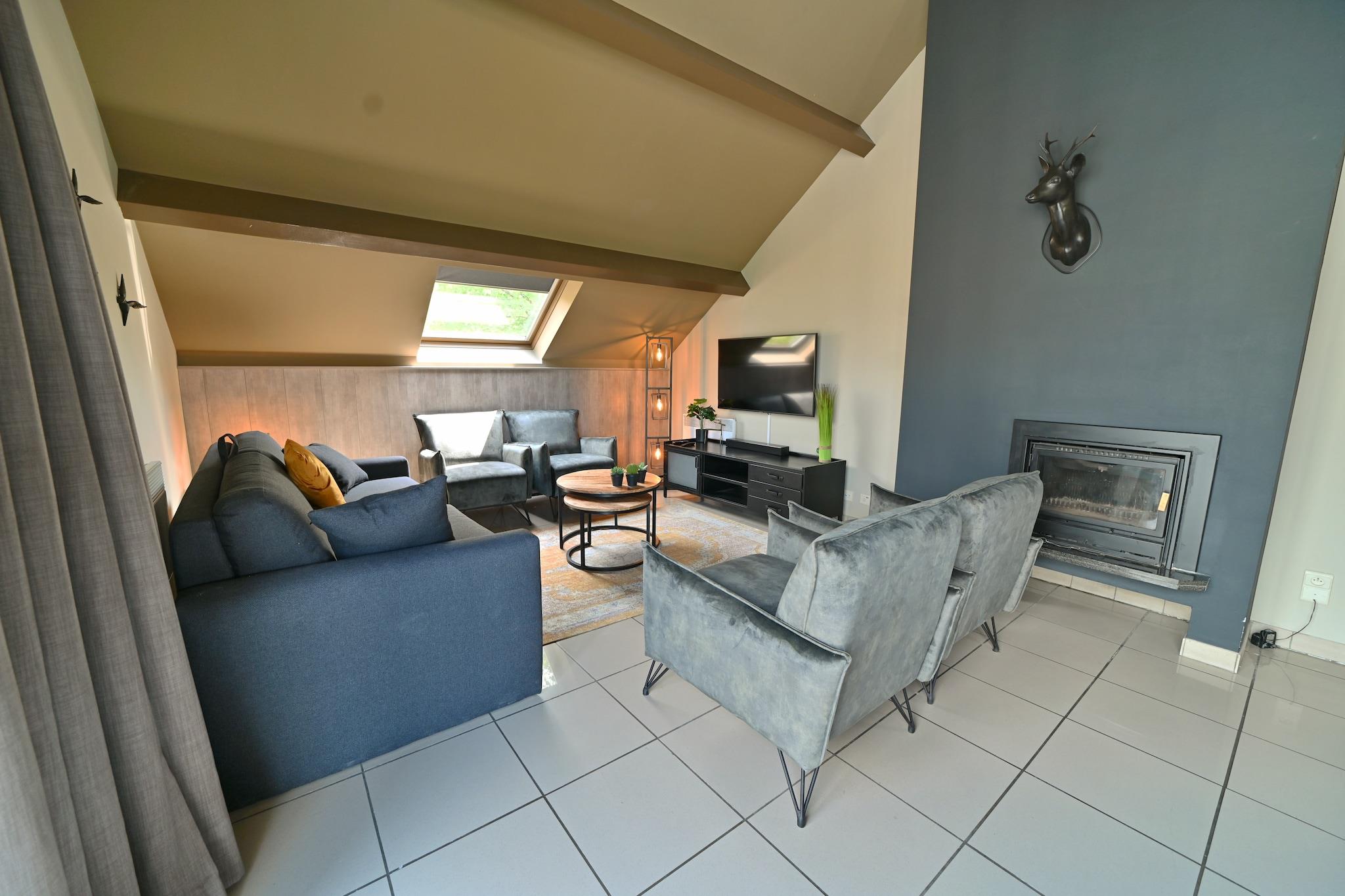 Stilig tilfluktssted i hjertet av naturen Denne romslige leiligheten i 2. etasje ligger gjemt i det frodige skogen til Résidence Durbuy, og blander komfort med moderne design. Den innbydende L-formede stuen har koselige sitteplasser, en gasspeis, en dobbel sovesofa og varmt naturlig lys. Med tre soverom - ett med dobbeltseng og to med enkeltsenger med springfjærmadrass (kan konfigureres som dobbeltrom) - er det komfortabelt vert for familier eller grupper. Det elegante, åpne kjøkkenet har oppvaskmaskin og kombinert mikrobølgeovn, og to bad (inkludert ett med boblebad) sørger for stressfrie morgener. Et separat toalett gir ekstra bekvemmelighet. Paws Welcome – Kjæledyreventyr venter Ta med deg din pelskledde følgesvenn - denne leiligheten er kjæledyrvennlig! Bare noen skritt unna byr området på naturskjønne skogsturer og stier langs elven, perfekt for hale-logrende spaserturer. Utforsk nærliggende Bois de Petithan eller nyt en lekeøkt i de åpne gressområdene i Parc des Topiaires. Flere lokale kafeer tar imot kjæledyr på terrassene deres, noe som gjør det enkelt å dele opplevelsen med din firbeinte venn. Etter en dag ute kan du slappe av sammen på din private terrasse med hageutsikt, som ligger i første etasje. Spis og oppdag i Durbuy Kjent som den "minste byen i verden", fortryller Durbuy med sin middelalderske sjarm og kulinariske herligheter. Unn deg belgiske spesialiteter på Le Fou du Roy, eller nipp til lokale øl på La Brasserie Saint-Amour, både innen kort kjøretur og kjæledyr velkommen.
