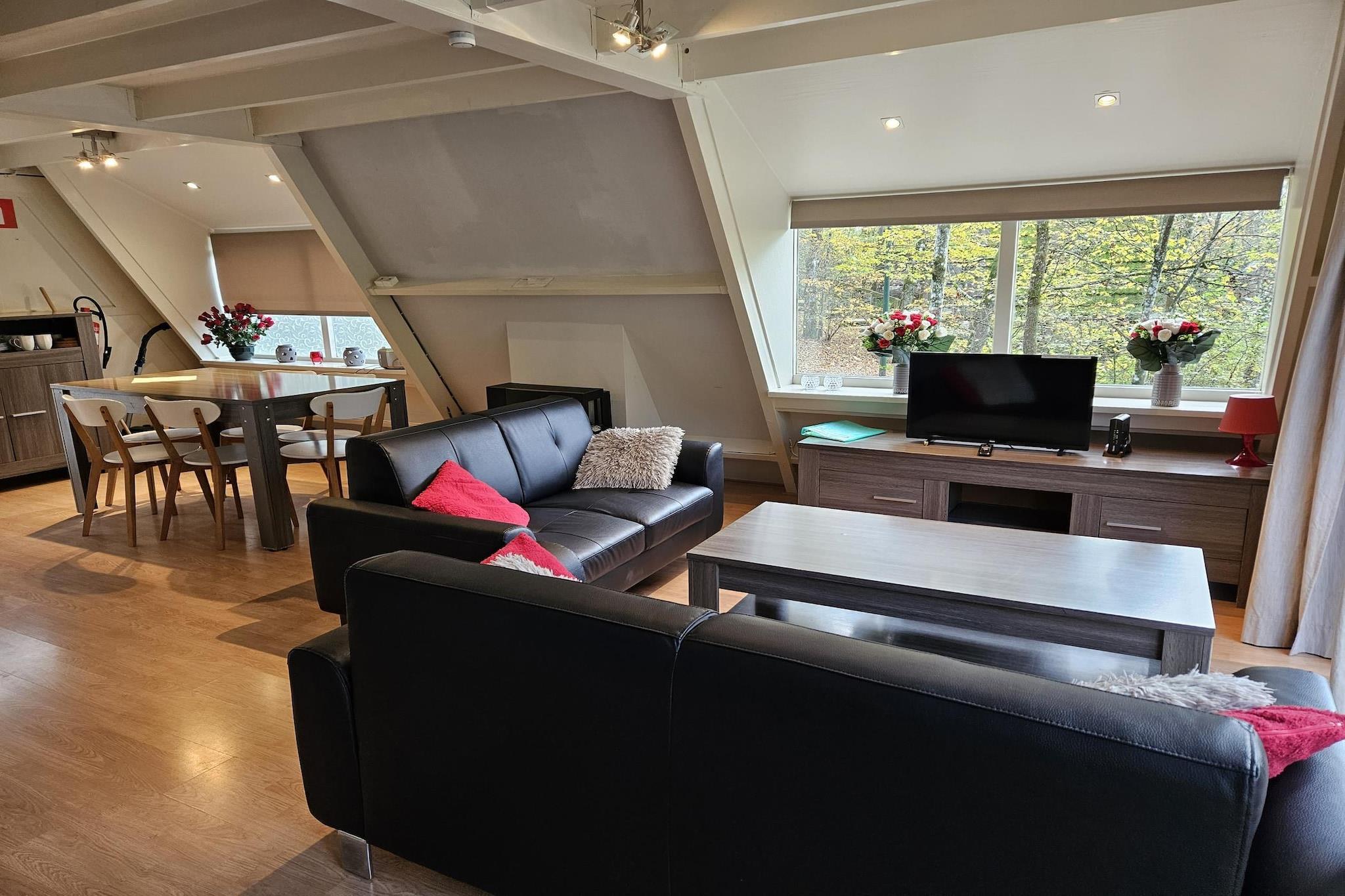 Denne sjarmerende hytta ligger i det grønne hjertet av Durbuy, og tilbyr et koselig og fredelig tilfluktssted omgitt av den naturlige skjønnheten i Belgias Ardennes-region. Den fullstendig inngjerdede eiendommen gir privatliv og ro, noe som gjør den til et ideelt tilfluktssted for familier, par eller små grupper som søker et komfortabelt opphold i en av Europas mest pittoreske byer. Hytta strekker seg over 74 m² og har en varm og innbydende stue med flatskjerm-TV, spiseplass og komfortable sitteplasser – perfekt for avslapning etter en dag med utforsking. Det moderne kjøkkenet er fullt utstyrt med kokeplate, kaffemaskin, kombinert mikrobølgeovn, oppvaskmaskin og alt du trenger for å tilberede et hjemmelaget måltid. Et stilig bad med dusj, servant og toalett fullfører planløsningen i første etasje. Ovenpå finner du to koselige soverom og en liten gang med en ekstra enkeltseng, med komfortabel plass til opptil fem gjester. Soverommene kan arrangeres med enten dobbeltsenger eller enkeltsenger, noe som sikrer fleksibilitet for familier eller venner som reiser sammen. Utenfor inviterer en herlig terrasse deg til å nyte fredelige morgener med kaffe eller avslappende kvelder under stjernene. Den inngjerdede hagen er ideell for barnefamilier, og tilbyr et trygt og rolig miljø. Hytta ligger på Rue d’Andenne, i kort avstand fra Durbuys historiske sentrum, og gir enkel tilgang til naturskjønne turstier, sjarmerende restauranter og lokale attraksjoner. Håndklær og kjøkkenutstyr er ikke inkludert, men kan leies i resepsjonen. Finn Wi-Fi-koden din på TV-klistremerket. Gjeldende åpningstider for brasseriet og svømmebassenget er tilgjengelige i resepsjonen. Vennligst støtt vår økologiske innsats ved å slå av lys og varme når du forlater hytta.