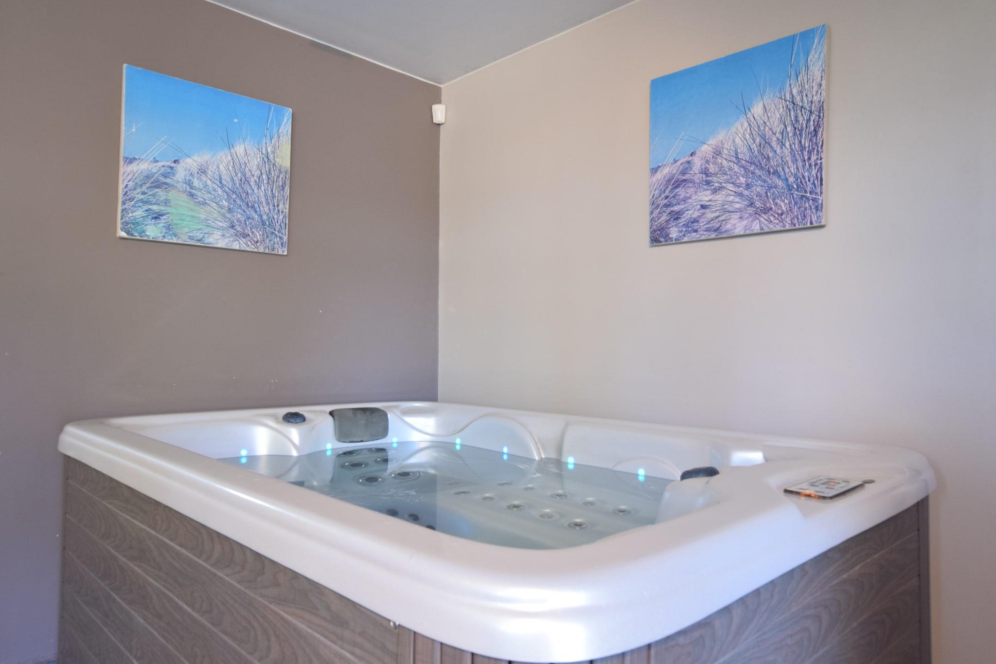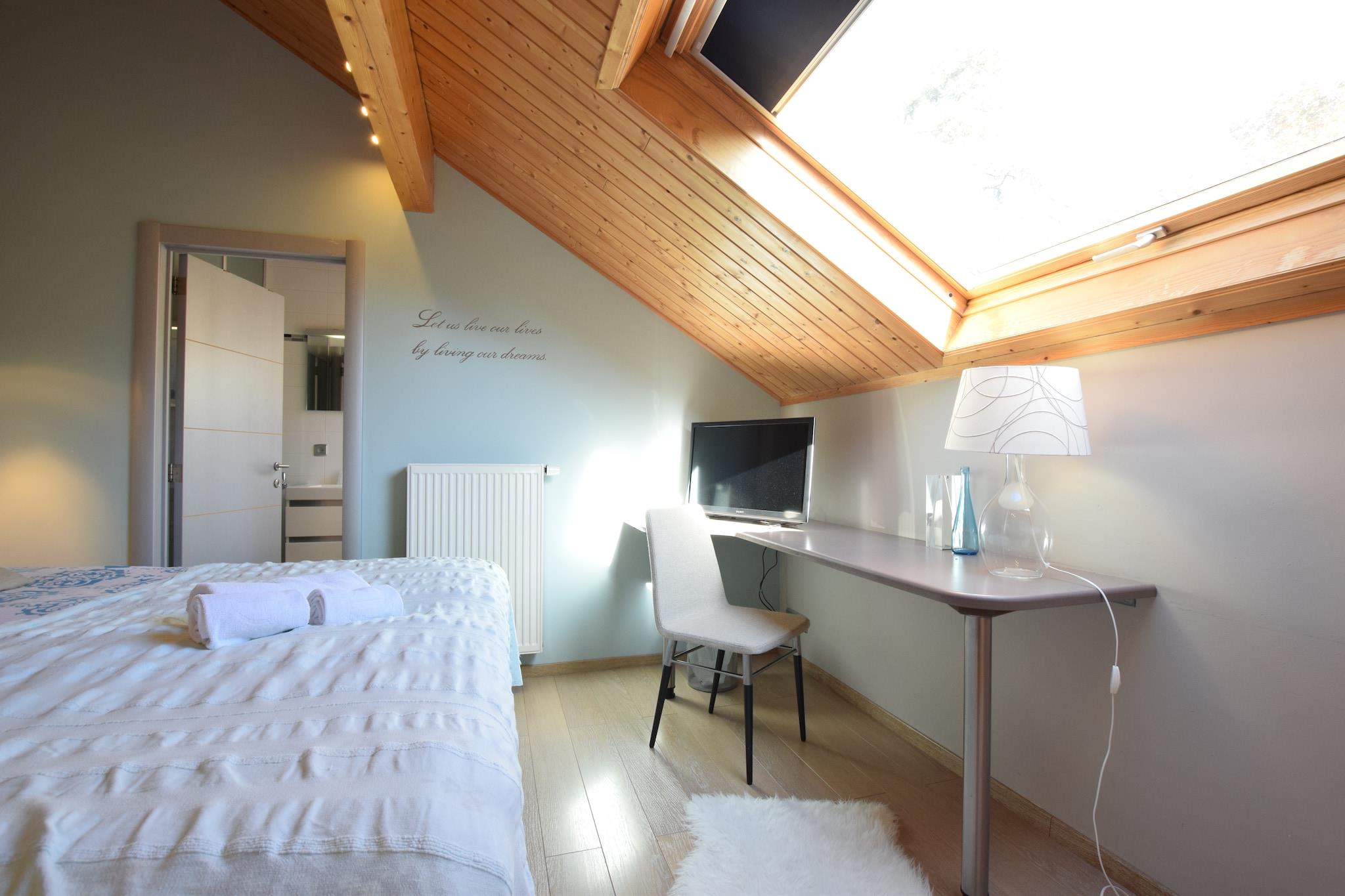 I sentrum av en eiendom på mer enn en hektar, ikke langt fra Durbuy og Barvaux, i en oase av ro og grønt, er hytta faktisk et nytt vedlegg til huset med egen inngang. Hytta er ny (midten av desember 05), luksuriøs og veldig komfortabel. På reservasjon (2 timer per dag) vil du kunne nyte det veldig hyggelige dekket og oppvarmet (27) svømmebassenget. I nærområdet er et besøk til den lille middelalderbyen Durbuy (7 km), kjent for sin mat, et must, så er det Wéris (10 km) og dets menhirs, Ny (10 km), en av de mest vakre landsbyer i Wallonia, eller kanskje de fantastiske Hotton-hulene (10 km). Muligheter for å slappe av i nærheten er mange: fiske og svømme i Ourthe 500 m unna, 2 flotte golfbaner 8 km unna: Durbuy og Five Nations (mulighet til å betale green fees til eieren), eventyrsporter, kajakkpadling, rafting, klatring, tennis , quads, minigolf, ski i La Baraque de Fraiture (30 km), ikke glemme et stort utvalg av flotte utflukter.