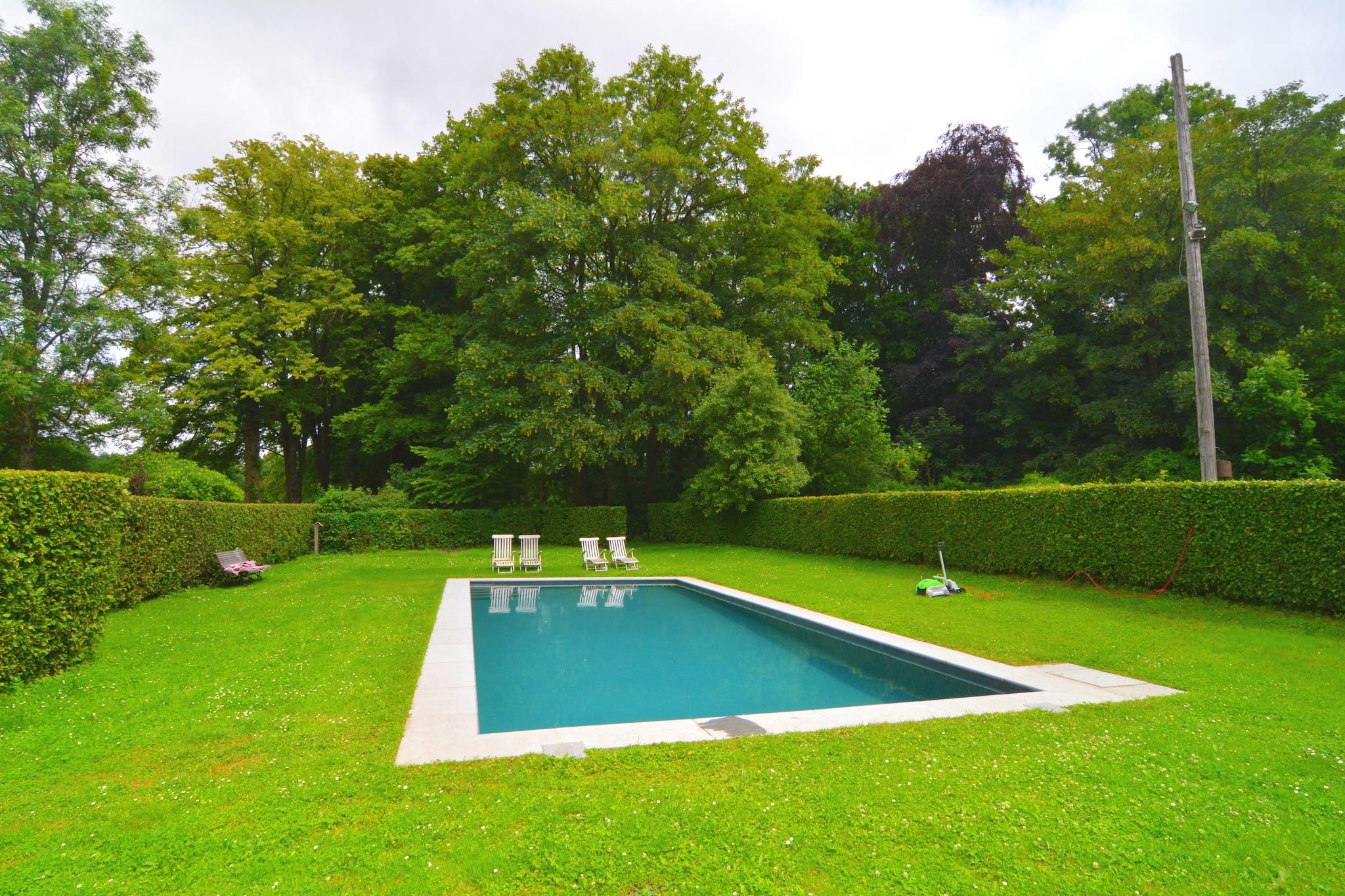 Dette feriehuset med 4 soverom ligger på vakkert slottsområde i Gesves, og tilbyr et rolig tilfluktssted for opptil 9 gjester. Med et felles svømmebasseng, plen for soling, tennisbane og badstue, er det perfekt for familier eller grupper som søker en fredelig flukt fra Ardennene. Boligen har sentralvarme, en koselig stue med utsikt over skogen og et fullt utstyrt kjøkken som åpner ut til spisestuen. Gå ut for å grille på terrassen, slappe av i den felles hagen eller nippe til vin mens barna leker i nærheten. Det omkringliggende landskapet er ideelt for lange turer og naturelskere. Boligen ligger i nærheten av landsbyene Faulx-Les-Tombes, Haltinne, Mozet og Sorée, 6 km fra supermarkeder og 10 km fra sentrum. Nærmeste togstasjon ligger 10 km unna. Merk: Denne eiendommen er best egnet for familier. Ungdomsgrupper og fester er ikke tillatt.