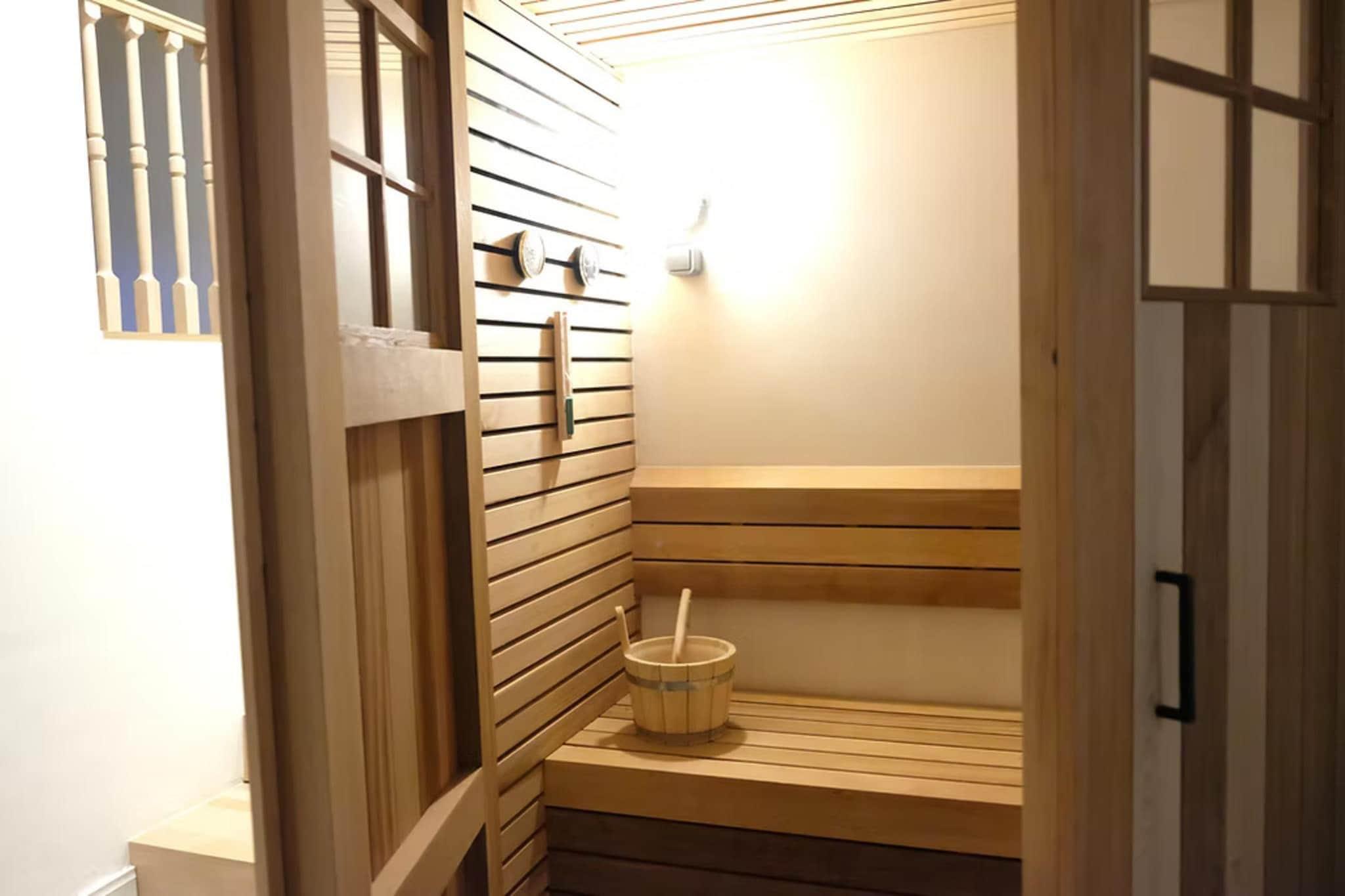Stue(TV, vedovn(tre), sittehjørne), åpent kjøkken(spisebord, komfyr med kokeplater(keramisk), vannkoker, brødrister, kjøkkenvifte, kaffetrakter(kaffepute), stekovn, mikrobølgeovn, kjøleskap med fryser, Blender), soveværelse(dobbeltseng), soveværelse(dobbeltseng), soveværelse(dobbeltseng), Barneværelse(3 personers køyeseng, 3 personers køyeseng), bad(badekar, håndvask, håndvask, toalett(utendørs)), bad(badekar, håndvask, toalett), bad(dusj, håndvask, toalett), bad(dusj, håndvask, toalett(utendørs)), badstue, hage, parkering