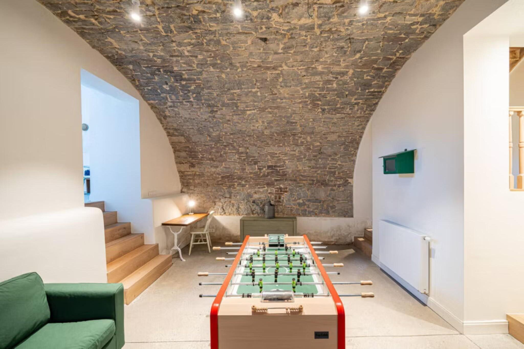 The Gardener's House ligger på de gamle fundamentene til et slottstårn, og tilbyr en virkelig unik tilflukt i Haltinne, Gesves, Belgia. Dette praktfulle huset med karakter, bare noen skritt fra det majestetiske Château de Haltinne, gir en eksepsjonell følelse av ro, med utsikt over frodige grønnsakshager, et sjarmerende drivhus og en vidstrakt frukthage. Beskyttet av sine ærverdige steinmurer, vil du føle deg lullet av naturens milde rytme, klar til å skape nye minner i omgivelser fylt med historie. Maison du Jardinier har gjennomgått en grundig renovering, og har bevart sin særegne karakter samtidig som den omfavner romslig moderne komfort. Innvendig vil du oppdage tre innbydende soverom, hvert med en komfortabel dobbeltseng, sammen med en morsom sovesal perfekt designet for opptil seks barn. Med fire velutstyrte bad, et fullt utstyrt kjøkken, romslige spise- og stuer og et eget underholdningsrom, er det god plass til hver gjest. For ultimat avslapning kan du slappe av i din private badstue, en perfekt avslutning på en dag med utforskning. Dette sjarmerende tilfluktsstedet er ideelt for opptil 6 voksne og 6 barn, og sovesalen tilbyr et lekent og innbydende sted eksklusivt for de yngre gjestene. Utenfor de rolige rammene til ditt historiske tilfluktssted, lokker den vallonske regionen med varierte attraksjoner. Utforsk Ardennenes naturlige skjønnhet, perfekt for fotturer, sykling og kajakkpadling på elver som Lesse. Oppdag de fortryllende Grottes de Han-sur-Lesse, et spektakulært grottesystem og dyrepark (ca. 40 km unna). Besøk den historiske byen Namur (ca. 20 km unna), med sin imponerende citadell og sjarmerende gamleby, eller middelalderbyen Dinant (ca. 30 km unna), kjent for sin beliggenhet ved elvebredden og kollegiale kirke. Nærområdet tilbyr også pittoreske turstier rett utenfor døren, og inviterer deg til å fordype deg fullstendig i den belgiske landsbygda.