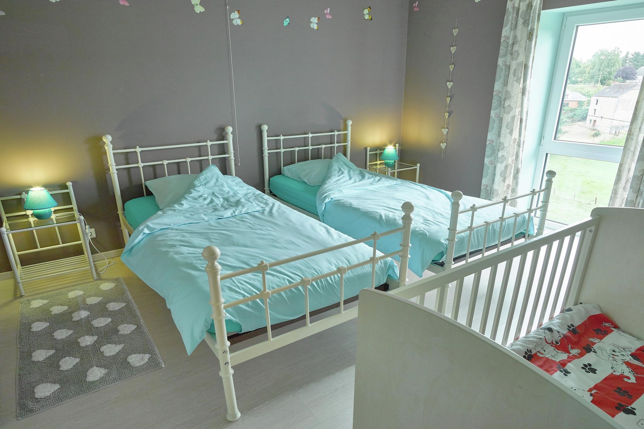 Denne sjarmerende 4-roms hytten ligger i den fredelige landsbyen Gimnée (Doische), og tilbyr et koselig tilfluktssted for opptil 9 gjester. Ligger nær Namur og den fortryllende Ardennene-regionen, er det ideelt for familier og grupper som søker naturfylte ferier. Nyt spaserturer gjennom det nærliggende sentrum (bare 100 m unna) eller nyt lokale smaker på restauranter og supermarkeder kun 3 km fra dørstokken din. Hytta, bygget i 2008, utstråler varme med sentralvarme og en innbydende atmosfære. Kjøkkenet med åpen planløsning inviterer til felles matlagingsøyeblikk med sine kjære, mens den private inngjerdede hagen er perfekt for uteservering, grilling og solrik avslapning. Barn vil elske lekeutstyret, og foreldrene vil sette pris på de 2 høye stolene og barnesengene. Enten du er på fottur, kanopadling, på ski eller sykler gjennom Ardennene, tilbyr dette kjæledyrvennlige hjemmet komforten og sjarmen til å slappe av etter hvert eventyr. To kjæledyr er velkomne for en liten avgift, slik at ingen familiemedlemmer blir etterlatt.