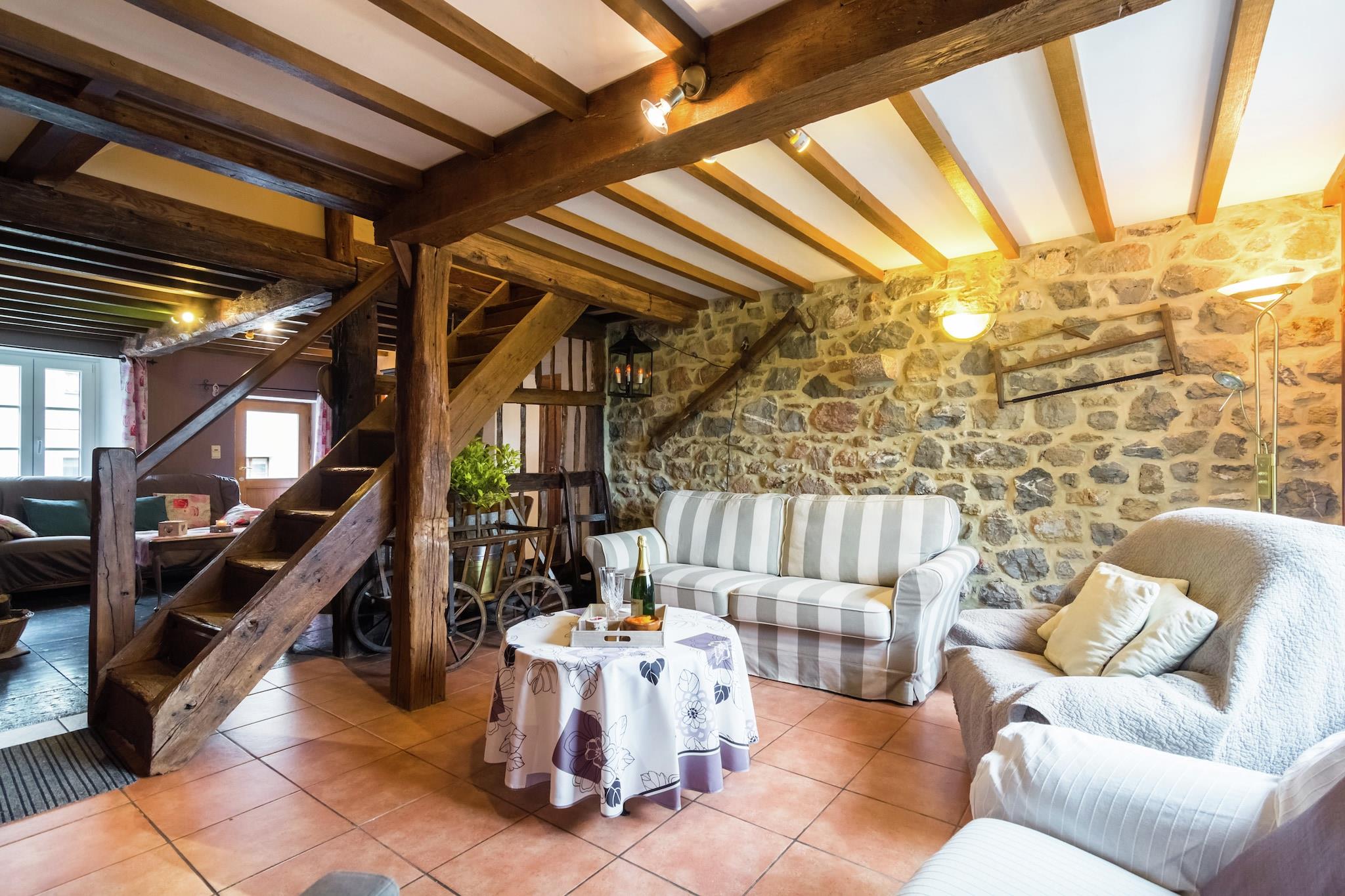 Dette 5-roms feriehuset i Gimnée ligger i Ardennes-regionens velduftende sjarm, og tilbyr et varmt og romslig opphold for opptil 9 gjester. Den møblerte terrassen inviterer til avslappende kvelder rundt grillen, noe som gjør den ideell for store familier eller grupper som søker en fredelig tilfluktssted på landet. Sentrum ligger bare en kort spasertur unna, perfekt for å oppdage lokale spesialiteter. Essentials og spisesteder er tilgjengelig innen 2 km, mens attraksjoner i nærheten som Neptunhulene, Fondry des Chiens, Hitlers Bunker og Three Valleys Steam Railway lover minneverdige utflukter. Innvendig er boligen utstyrt med sentralvarme og en koselig vedovn for kjøligere dager. Et boblebad gir beroligende avslapning, og en radio holder deg tilkoblet. Unge gjester blir omtenksomt ivaretatt med en barneseng, barnestol og lekegrind. Den nærmeste flyplassen ligger 45 km unna, noe som sikrer enkel tilgang til dette rolige tilfluktsstedet.