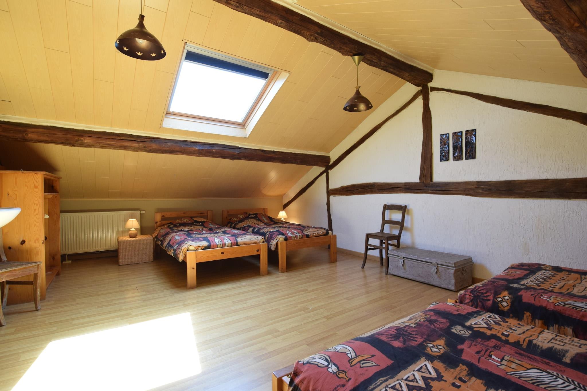 Dette autentiske gårdshuset med 6 soverom i Gouvy ligger i utkanten av landsbyen Montleban, og tilbyr et fredelig tilfluktssted for opptil 16 gjester. Boligen er omgitt av skog og natur, og har en stor terrasse, inngjerdet hage, grill og en finsk badstue, perfekt for å slappe av etter en dag utendørs. Huset ble bygget for over 250 år siden med Ardennes-eik, leirjord og stein, og utstråler rustikk sjarm samtidig som det tilbyr moderne bekvemmeligheter. Inne kan du nyte et luksuriøst kjøkken, romslig spiseplass, peis og rekreasjonsrom med bordfotball og biljard. Skogen og sentrum av landsbyen ligger bare 500 meter unna, mens restauranter og butikker er mindre enn 5 km unna. En kunstig skiløype ligger 6 km unna, og et svømmebasseng er 8 km fra eiendommen. Liège lufthavn ligger 61 km unna. Merk: Ungdomsgrupper og fester er ikke tillatt. Kjæledyr er velkomne (maks 5) for EURO 20/natt. Ekstra kostnader tilkommer for verktøy og rengjøring.