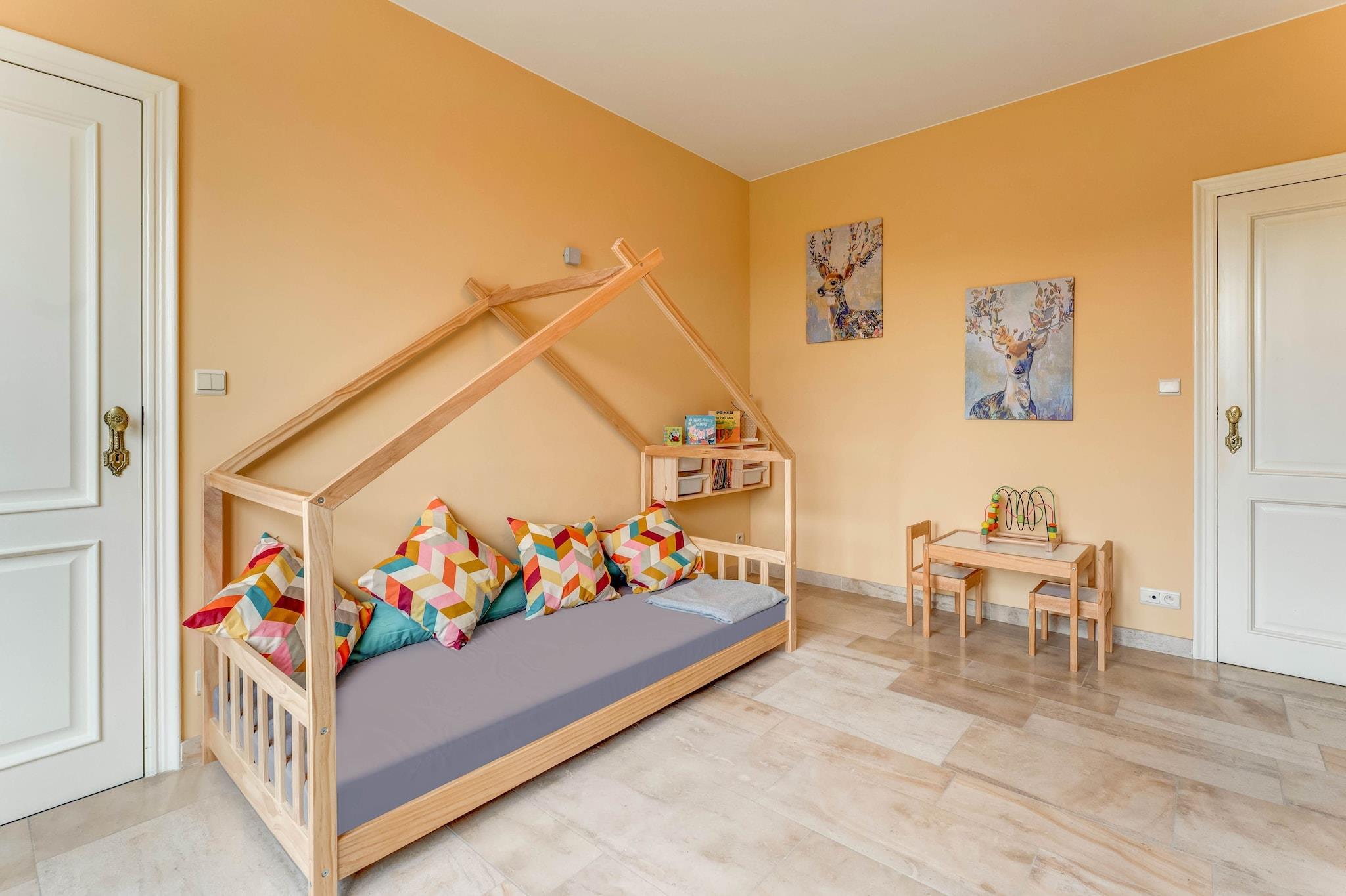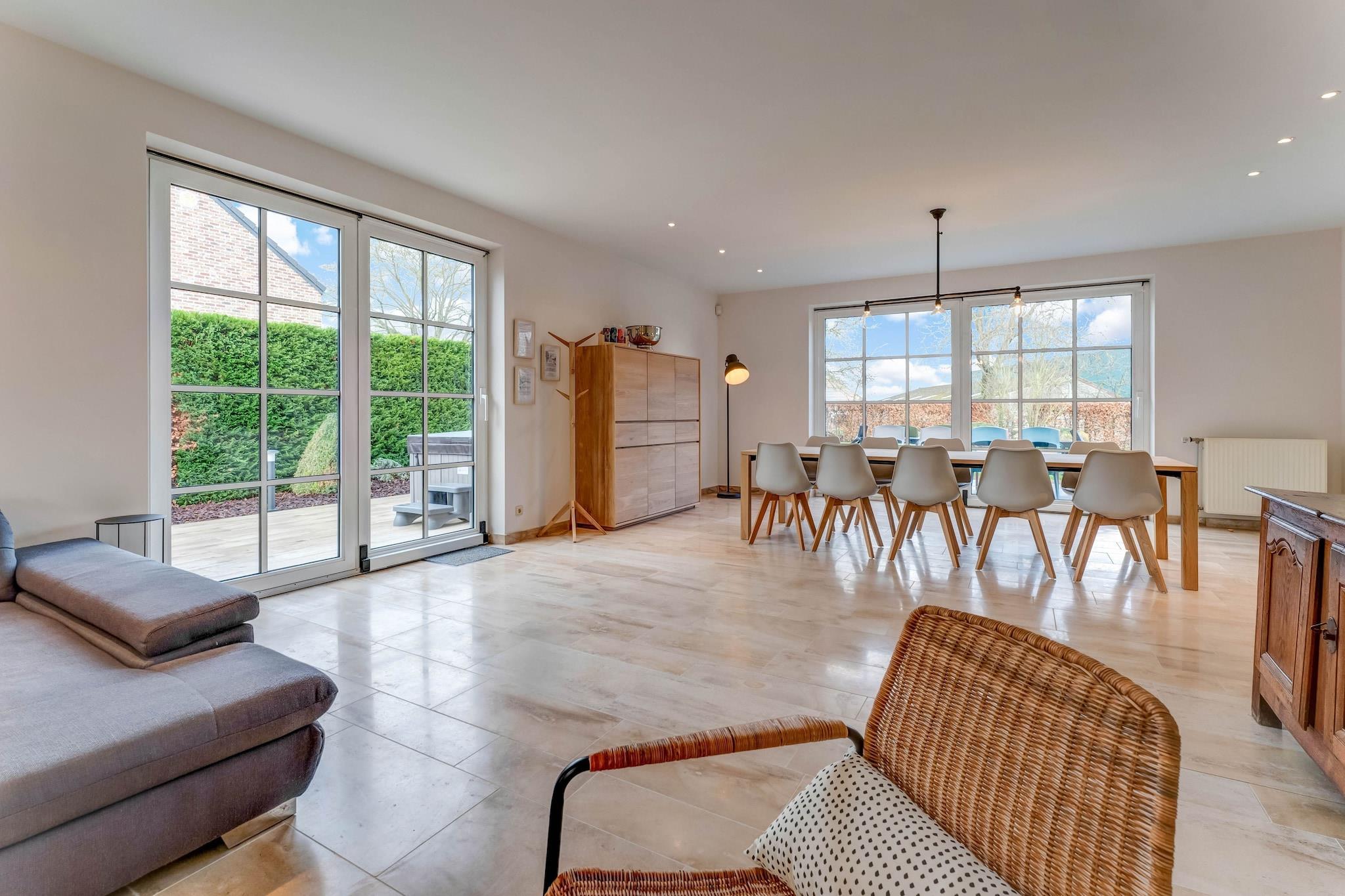 Dette vakre 3-roms feriehuset i Heers ligger i hjertet av Haspengouw, og tilbyr et luksuriøst tilfluktssted for opptil 10 gjester. Omgitt av frukthager, slott og kapeller, er det den perfekte basen for sykling, fotturer og utforsking av regionens rike historie. Hjemmet har en privat hage med boblebad, utendørs badstue og møblert terrasse, ideell for avslappende kvelder og grilling. Inne finner du et fullt utstyrt kjøkken, en koselig stue/spisestue med en dekorativ peis og et oppholdsrom med bordfotball, leker og selskapsspill. Et lekerom, barneseng, barnestol og stellematte gjør det familievennlig. Utforsk nærliggende byer som Liège (40 km), Maastricht og Aachen, eller ta en naturskjønn spasertur gjennom Haspengouw frukthager. Ekstra: – – Gratis Wi-Fi er tilgjengelig overalt. – Gjester kan nyte gratis parkering på stedet.