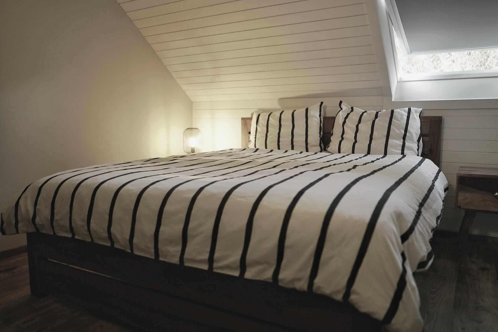 Omgitt av grøntområder og rolige landeveier, tilbyr dette koselige feriehuset i Hotton en fredelig tilflukt nær naturen, samtidig som det bare ligger en kort kjøretur fra den livlige sjarmen til nærliggende Durbuy. Gjemt bort i rolige omgivelser, er det et sted hvor familier kan slappe av, nyte frisk luft og tilbringe kvalitetstid sammen. Den moderne designen og den varme atmosfæren gjør det lett å føle seg hjemme fra det øyeblikket du ankommer. Innvendig er huset lyst, praktisk og gjennomtenkt innredet for avslappende opphold. Første etasje danner hjemmets sosiale hjerte, med en komfortabel stue med smart-TV, sittehjørne og spisebord for felles måltider eller brettspill. Det åpne kjøkkenet er fullt utstyrt med alt du trenger for enkel feriematlaging, fra raske frokoster til enkle familiemiddager. Et moderne bad med dusj gir hverdagskomfort. Ovenpå er soverommet ideelt for familier, og kombinerer en komfortabel dobbeltseng med en køyeseng som barn vil elske. Gå ut på terrassen og nyt måltider i det fri, fyr opp grillen på varme kvelder eller bare slapp av med en kaffe mens du nyter de rolige omgivelsene. Parkering er tilgjengelig på stedet for ekstra bekvemmelighet. Fra huset kan du utforske regionens naturlige skjønnhet, med gang- og sykkelstier i nærheten og bredden av elven Ourthe like i nærheten. Hotton er kjent for sine grotter og sjarmerende landsbysentrum, mens Durbuy tilbyr brosteinsbelagte gater, restauranter og utendørsaktiviteter. Dette feriehuset er en komfortabel og familievennlig base for å oppdage Ardennene i ditt eget tempo.