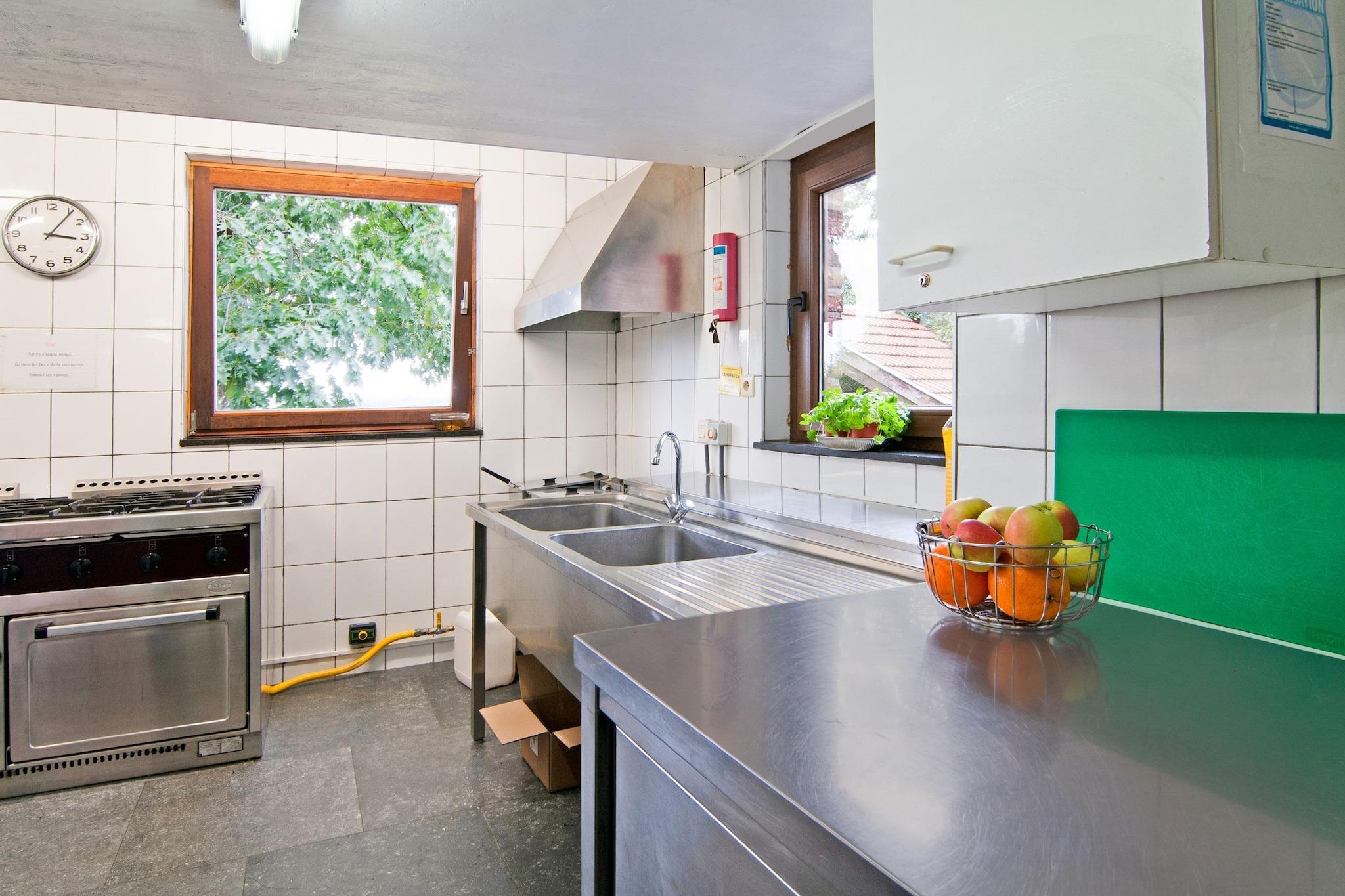 Denne romslige hytta med 6 soverom i Surister Jalhay er perfekt for ungdomsgrupper, retreater eller store familiesammenkomster, og har plass til opptil 70 gjester. Nyt den private terrassen og hagen, ideell for utendørs måltider eller stjernekikking med et glass vin. Området ligger i nærheten av Spa, kjent for sin termiske arv, og byr også på turstier og lokale restauranter. Innvendig har huset køyesenger på tvers av alle soverom, med to rom med eget bad for ekstra komfort. Den store stuen har 8 spisebord, perfekt for felles måltider, og det velutstyrte kjøkkenet gjør det enkelt å lage mat i fellesskap. Et romslig dusjrom sikrer bekvemmelighet for store grupper. Merk: Denne eiendommen er ikke egnet for fester. Arrangementer med lydanlegg, utdrikningslag eller bursdager er forbudt. Stilletider er fra kl. 22.00 til 08.00. Dette er et sted for kontakt, ikke feiring, ideelt for de som søker felles opplevelser i fredelige omgivelser.
