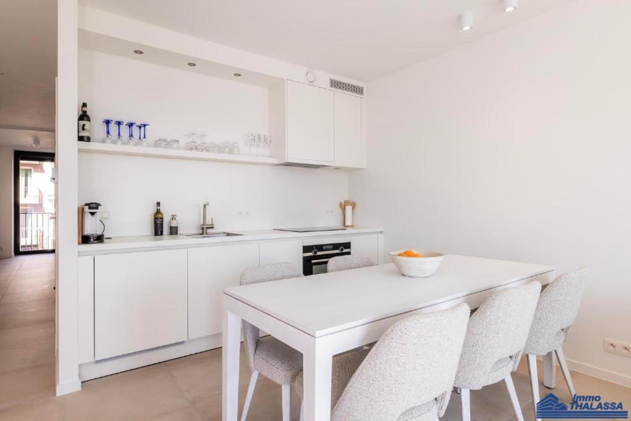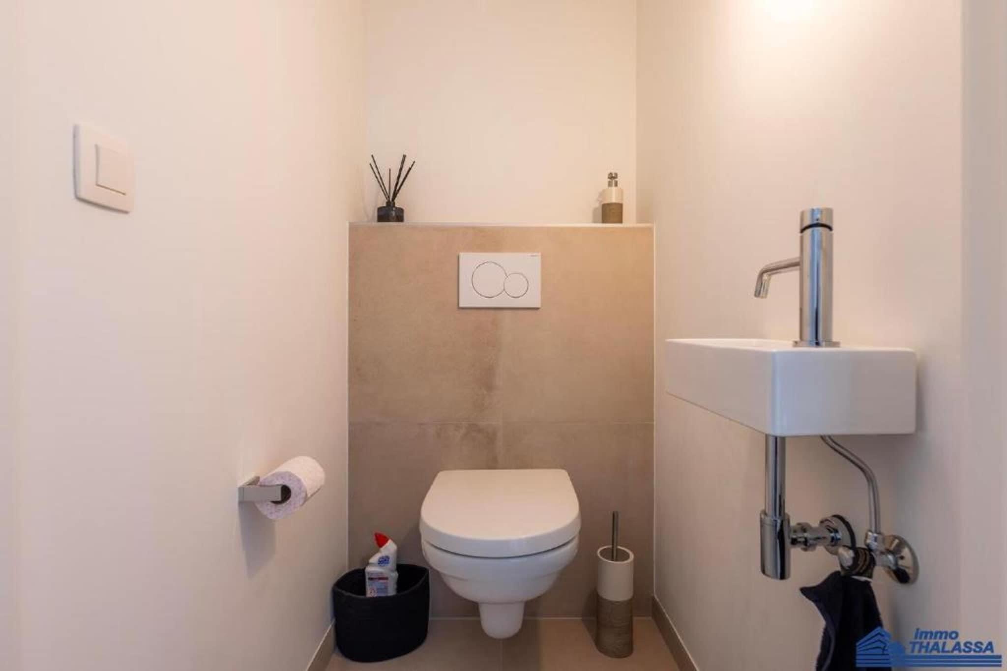 Denne lyse og smakfullt innredede leiligheten tilbyr den perfekte rammen for en avslappende ferie ved sjøen. Den har en romslig entré, et separat toalett og en solrik stue med en koselig sovesofa for to (1,60 m), flatskjerm-TV med digitale kanaler og Wi-Fi. Den sørvendte terrassen er utstyrt med bord og stoler – ideelt for utendørs måltider eller avslapning i solen. Den åpne spisestuen har komfortabel plass til seks gjester, mens det velutstyrte kjøkkenet har oppvaskmaskin, kjøleskap med fryseboks, induksjonstopp og alt nødvendig utstyr. Et vaskerom gir ekstra bekvemmelighet med vaskemaskin og tørketrommel. Det elegante badet har en enkel servant og en dusjkabinett i italiensk stil. Leiligheten har to soverom: ett med dobbeltseng (1,80 m) og en dobbel dyne, og et annet med køyeseng (2 x 90 cm) og enkeltdyner. Sentralvarmen går på gass, noe som sikrer komfort året rundt. Røyking er strengt forbudt. Små kjæledyr kan være tillatt på forespørsel. Inkludert i oppholdet: kaldtvannsforbruk, sluttrengjøring og avbestillingsforsikring. Energiforbruk er ikke inkludert og vil bli beregnet basert på måleravlesninger. Ankomsttider og datoer kan være fleksible på forespørsel. Dette innbydende stedet er et utmerket valg for familier eller par som ønsker å nyte komfort, sollys og bekvemmelighet i ett.