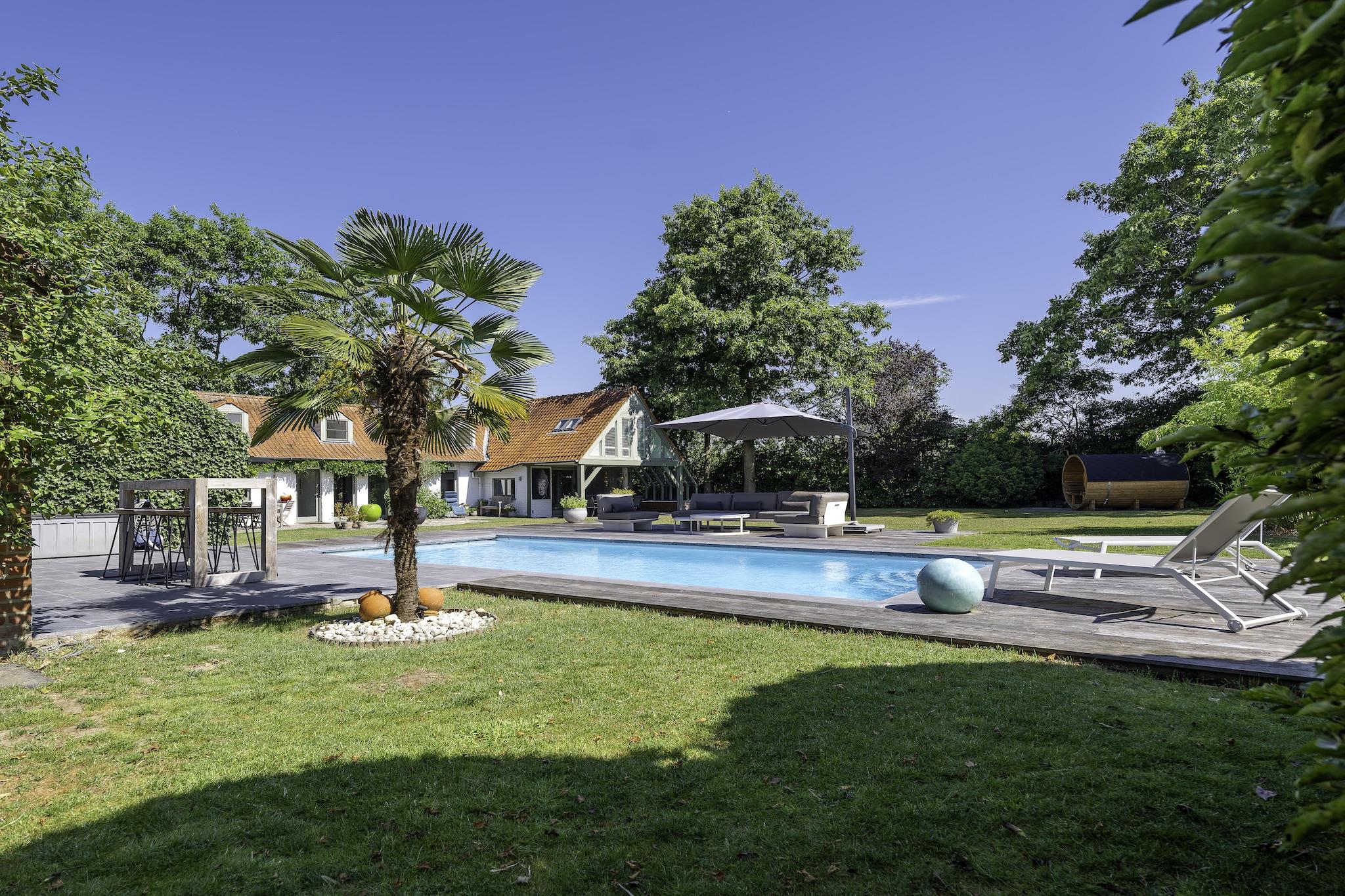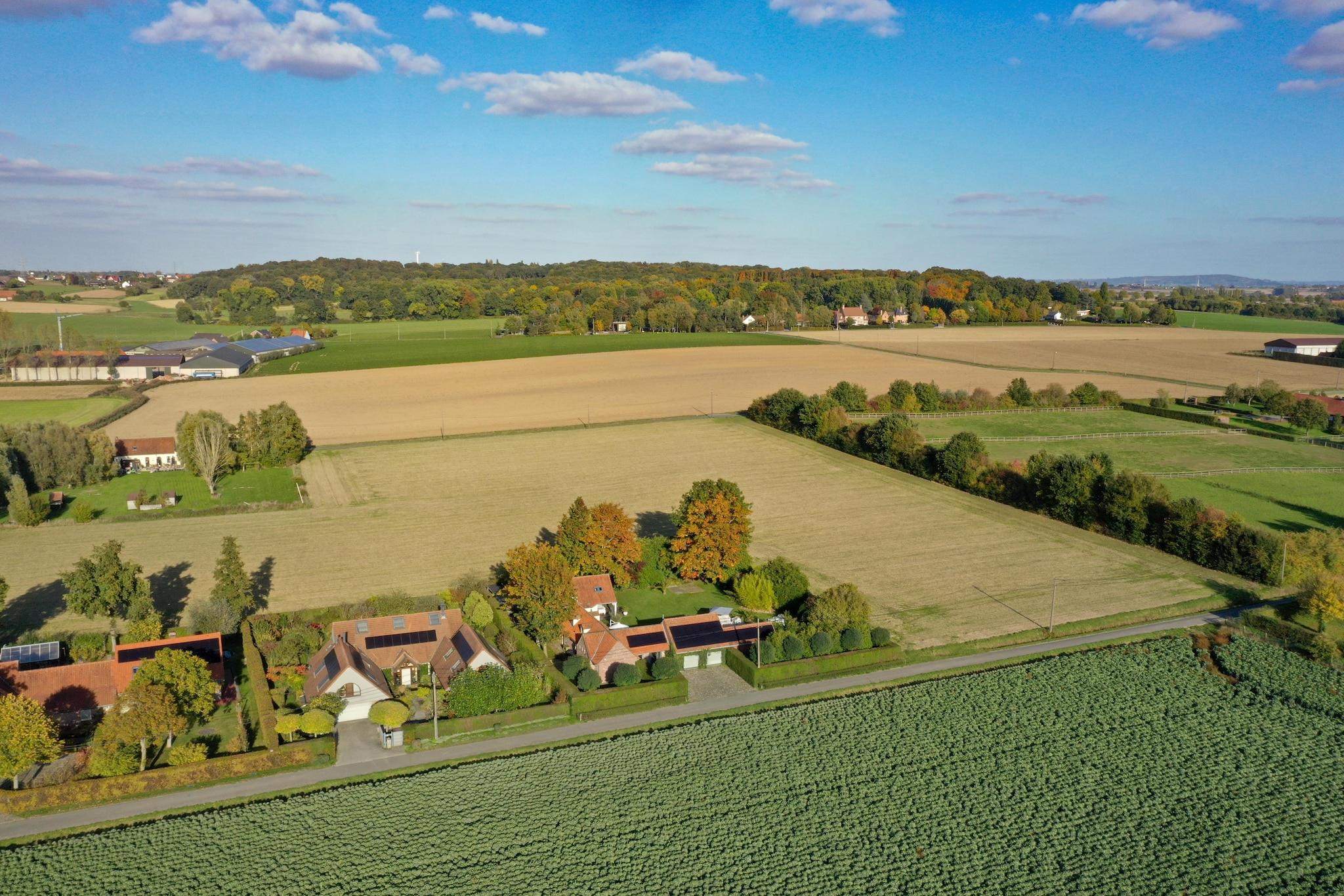 Stig inn i en sjarmerende villa i Bellegem, et fredelig tilfluktssted mellom Kortrijk, Ghent og Brugge, omgitt av frodig jordbruksland og bare minutter fra den rolige Bellegembos-skogen. Denne autentiske villaen kombinerer tradisjonell skjønnhet med moderne komfort, med synlige bjelker, bare steinvegger og en innbydende innredning som utstråler varme og karakter. Den store solfylte hagen er et virkelig høydepunkt, og tilbyr privatliv innenfor den inngjerdede eiendommen. Slapp av ved det glitrende private bassenget (oppvarmet fra 1. april til 30. september), nyt en deilig grillfest, eller utfordre venner til et slag petanque på den profesjonelle banen. Enten du nyter rolige stunder eller er vert for en sammenkomst, er denne villaen den perfekte setting for avslapning og nytelse. Nærliggende attraksjoner inkluderer de historiske byene Kortrijk, Ghent og Brugge, alle en kort kjøretur unna, som hver kan skryte av et rikt teppe av kultur, historie og vakker arkitektur. Med Bellegembos i nærheten kan naturelskere utforske de frodige skogene, mens de sjarmerende omgivelsene inviterer deg til å oppleve belgisk landliv.