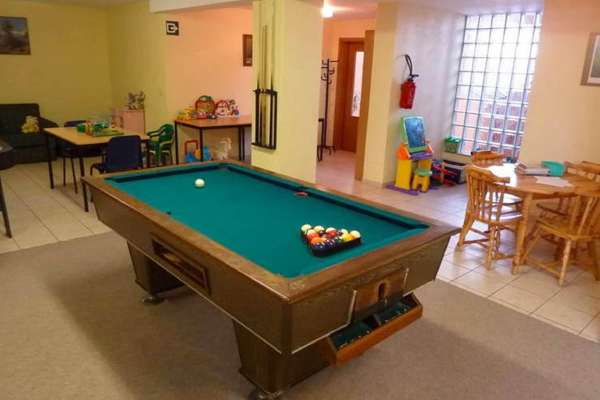 Hviler i Baugnez, dette er en vakker og ekstremt romslig hytte med 9 soverom, oppvarming og et avslapningsområde med badstue. Det er perfekt å organisere et samvær med familie og venner, totalt 28 gjester._x000D_ _x000D_ Blant severdighetene i regionen er Hautes Fagnes eiendom og Reinhardstein slott. Aktive feriegjester har mange turer og sykkelturer som venter på seg. Restauranter som serverer lokale retter ligger 500 meter unna. Du finner også en skiheis 500 meter unna. Supermarkeder og utelivspuber ligger 3 km unna. Hvis du ønsker å tilbringe en dag med å beundre naturen, er det en innsjø 5 km unna._x000D_ _x000D_ Etter å ha kommet tilbake fra utflukter, kan du slappe av i badstuen. Lekerommet med bordfotball- og biljardutstyr inviterer til å utfordre hverandre til en lek i fritiden. Uteliv kan nytes på terrassen og i den møblerte hagen med grill. Det er lekeapparater og trampoline for barn. Du kan ta med opptil 4 kjæledyr ved å betale en ekstra avgift per kjæledyr.