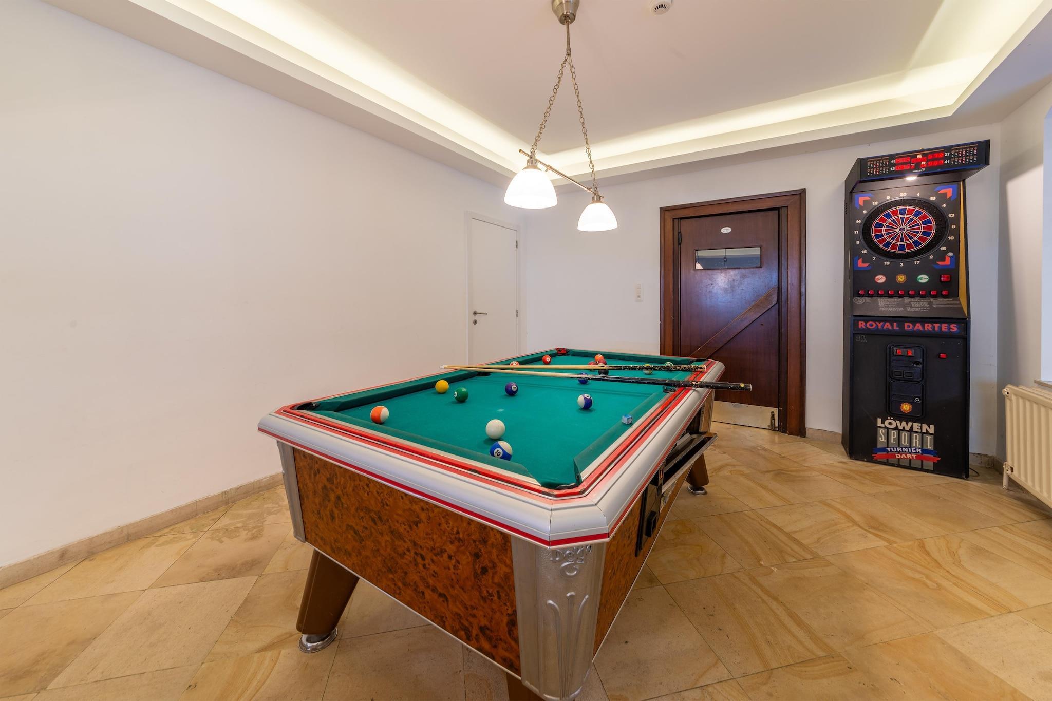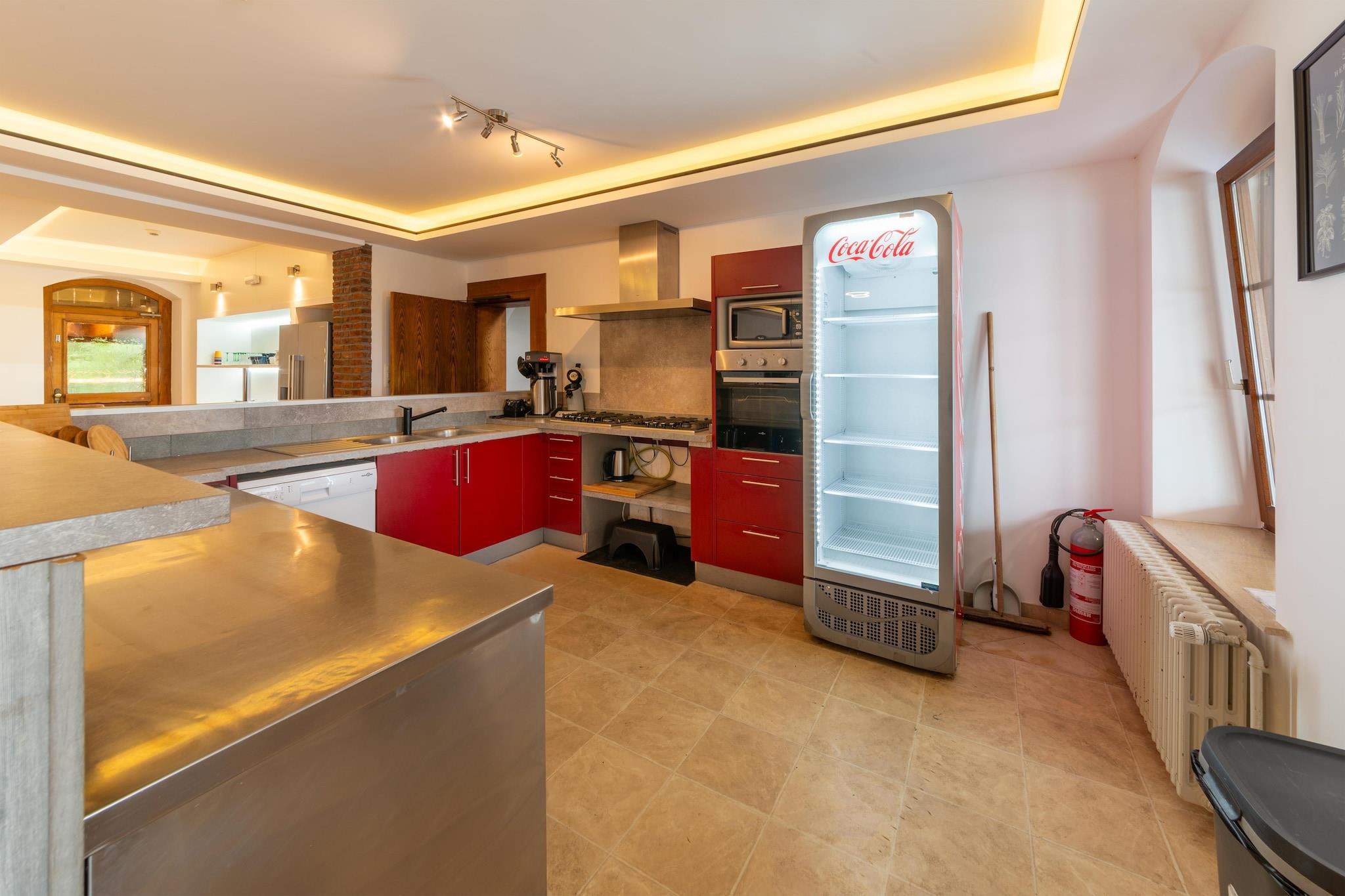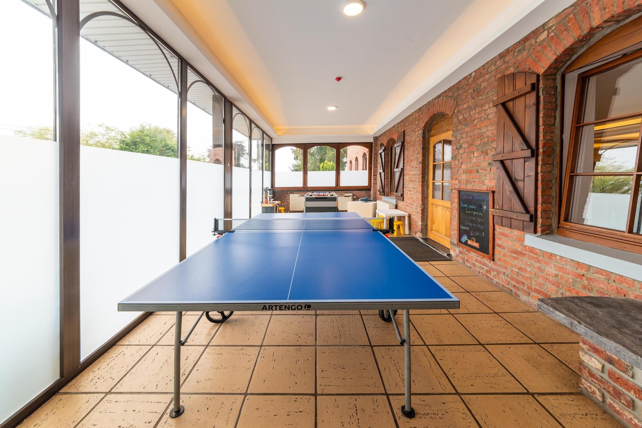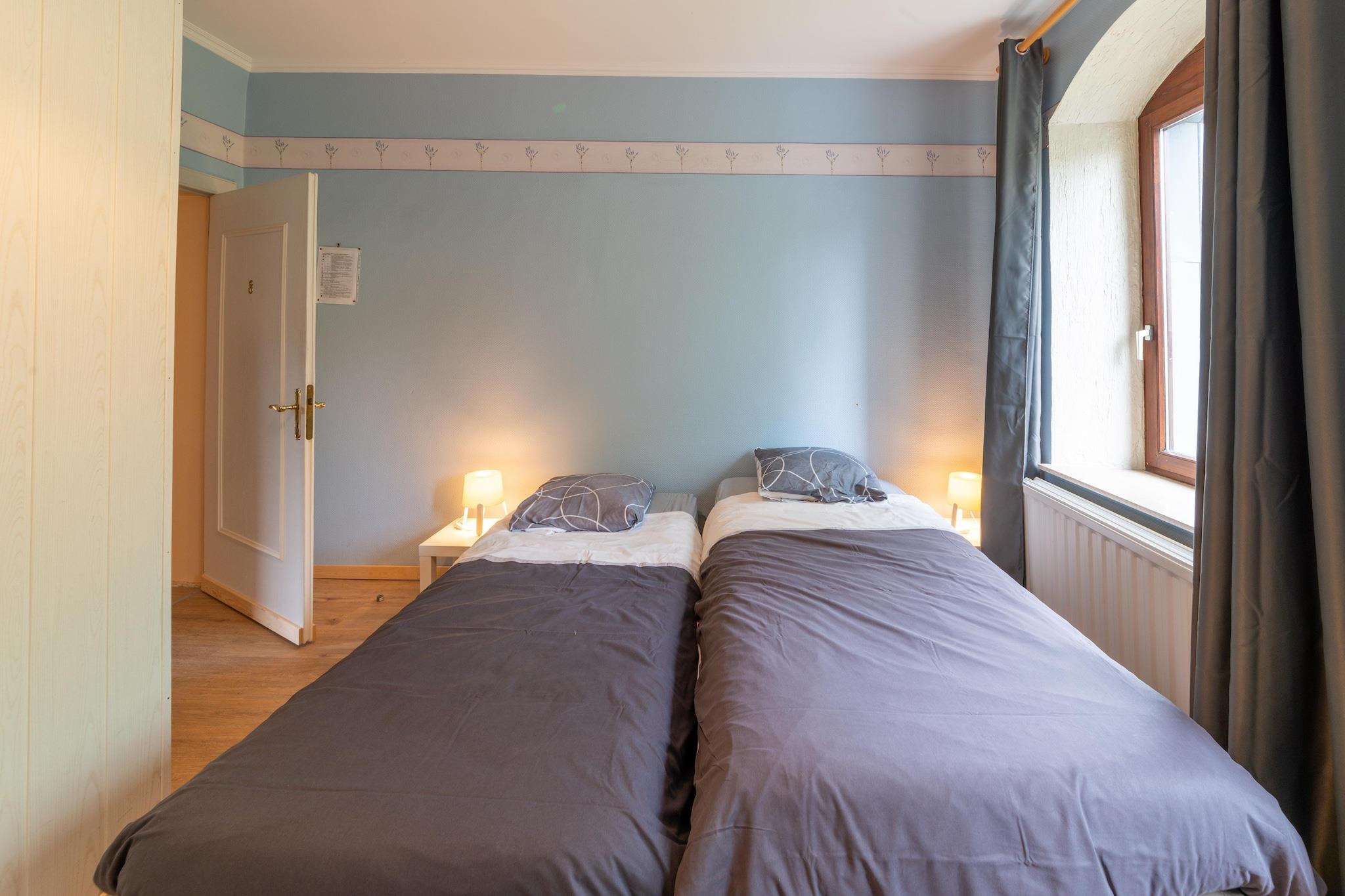 Dette landstedet i Ardennene er et tidligere hotell som har blitt omgjort til et feriehus og har 12 soverom. Ideell for en familiegjenforening. I det svært store rommet med innendørsbasseng finner du også boblebad og badstue. _x000D_ _x000D_ Naturelskere kan vandre i Hoge Venen naturpark, hvor freden råder. I Malmédy finner du butikker og restauranter. En øl, brygget med det berømte kildevannet fra Ardennene, kan nytes på terrassen eller i det koselige smaksrommet til Bellevaux-bryggeriet. Det nærliggende innsjøområdet Robertville og Bütgenbach anbefales sterkt for vannsportentusiaster. Her kan du kano, seile, fiske, dykke og svømme. _x000D_ _x000D_ Kjøkkenet er fullt utstyrt med stekeovn, mikrobølgeovn og oppvaskmaskin. I stuen finner du også en bar. Rekreasjonsrommet har et bordtennisbord, bordfotball og biljard. Det er også lekeapparater tilgjengelig for barn._x000D_ _x000D_ Huset leies ikke ut til grupper av ungdom. Studentfester, utdrikningslag eller andre fester er ikke tillatt i dette huset. Det er ikke tillatt å ta med lydanlegg, og etter kl 22.00 skal fred respekteres i dette rolige miljøet.