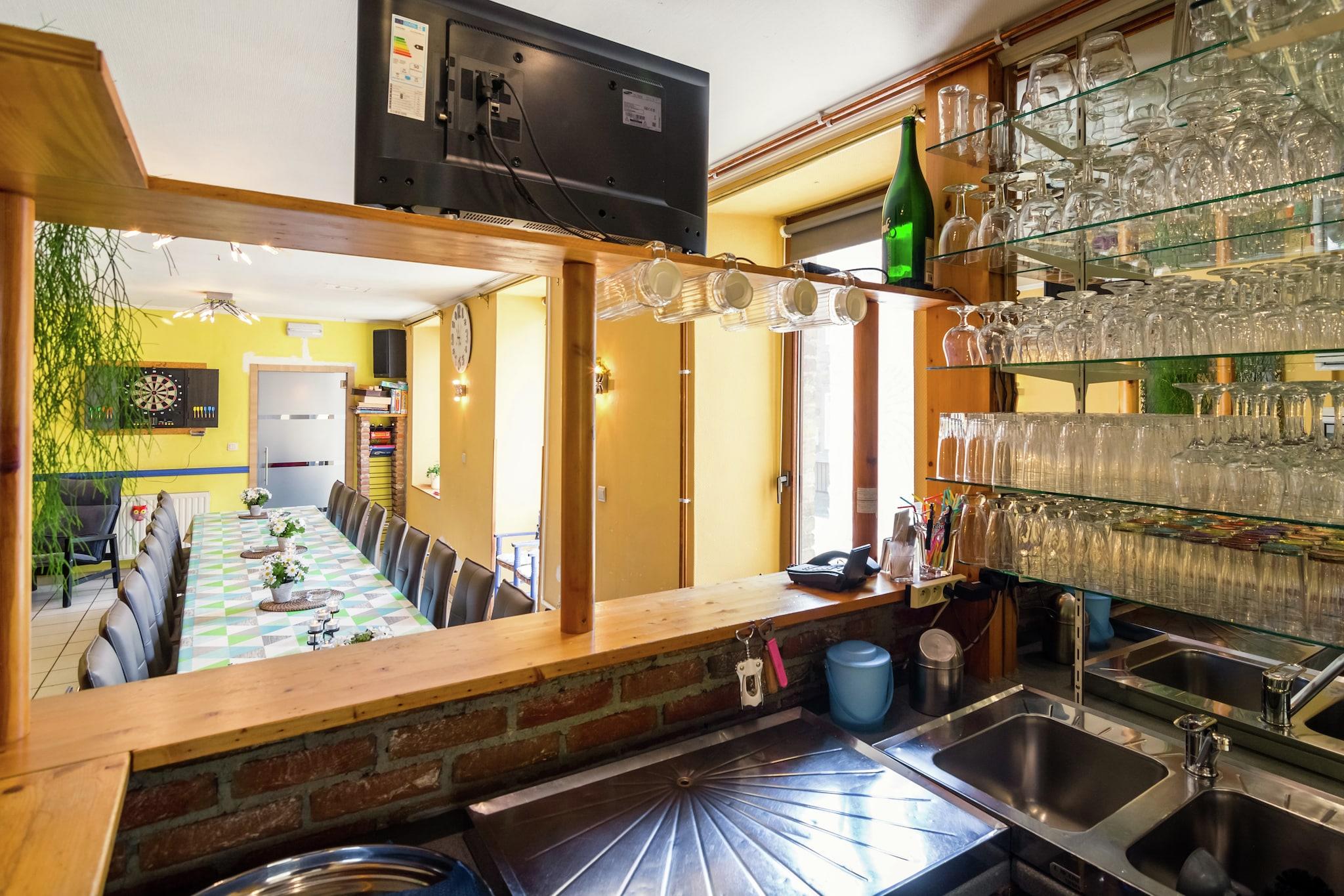 Dette romslige feriehuset med 8 soverom har komfortabel plass til opptil 20 gjester og ligger i den naturskjønne Ourthe-dalen i Marcourt-Ardennene. Omgitt av natur er det en ideell base for friluftsentusiaster, med utmerkede muligheter for terrengsykling, kajakkpadling og klatring i nærområdet. En innsjø ligger bare 15 km unna, og tilbyr ytterligere fritidsaktiviteter. Eiendommen har en beleilig beliggenhet i nærheten av populære turistbyer som La Roche, Hotton og Durbuy, alle perfekte for hyggelige dagsturer. Restauranter finnes innen 1 km fra huset, mens butikker og dagligvarer er tilgjengelige 3 km unna. Hjemmet har en stor hage med utemøbler, en terrasse og en grill, noe som gjør det perfekt for gruppesamlinger og avslappet utendørs servering. Designet med tanke på familier, er det barnevennlig og utstyrt med en barneseng, barnestoler, et babybadekar og en lekegrind. For innendørs underholdning kan gjestene nyte to barer og en dartskive. Opptil tre kjæledyr er velkomne gratis, noe som gjør dette til et utmerket valg for gjester som reiser med dyr. Liège lufthavn ligger omtrent 65 km unna, noe som sikrer enkel tilgjengelighet mens du nyter et fredelig tilfluktssted på landet.