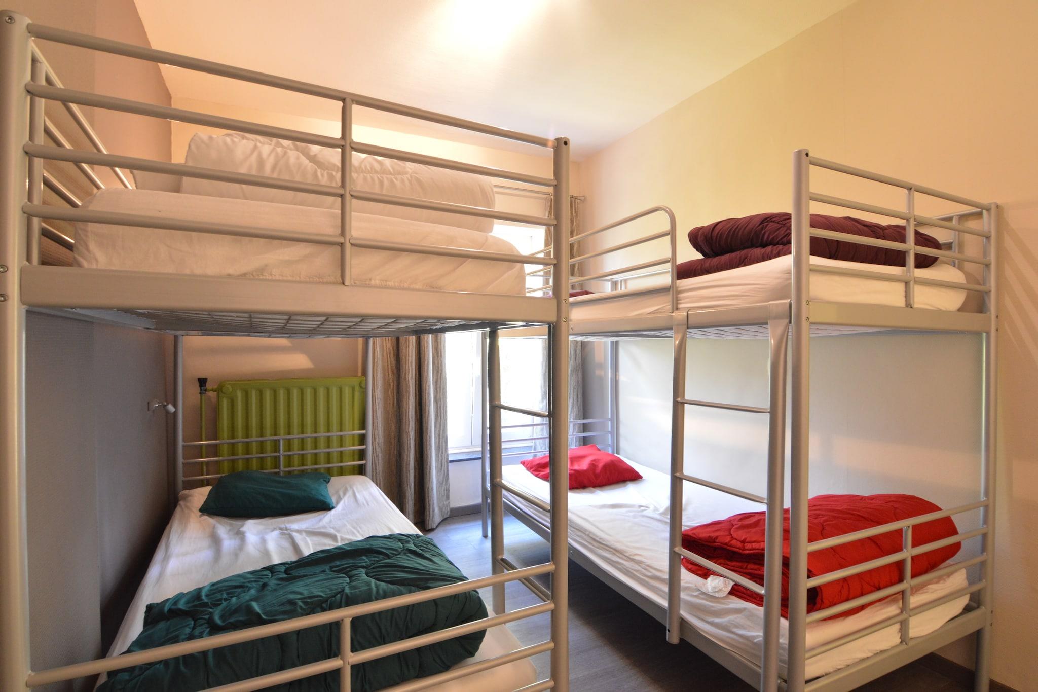 Velkommen til din perfekte gruppeferie i Marcourt, Belgia - en sjarmerende landsby som ligger i hjertet av Ardennene. Dette feriehuset tilbyr alt du trenger for en minneverdig ferie med venner, familie og til og med dine lodne følgesvenner. Med plass til store grupper og kjæledyr, kommer komfort og bekvemmelighet sammen i dette varme og innbydende tilfluktsstedet. Nyt kvalitetstid i den private hagen, komplett med utemøbler og en grill for utendørs måltider. Barn vil elske trampolinen og lekeområdet på stedet, mens voksne kan slappe av i rekreasjonsrommet med biljard og bordfotball. Hvert soverom har sitt eget bad for ultimat privatliv. Bare 500 meter unna, tilbyr Marcourt sentrum butikker og nødvendigheter, mens Bois de Rendeux-skogen inviterer deg og kjæledyrene dine til å nyte fredelige skogsstier. Innen 2 km kan du besøke lokale favoritter som Le Clos des Récollets eller Le Saint-Amour for å spise middag, og tilbringe en avslappende ettermiddag ved Lac de Nisramont, perfekt for spaserturer langs innsjøen eller piknik med dine firbeinte venner. For vintersport, ta turen 15 km ut til Baraque de Fraiture, et av de høyeste skistedene i Ardennene, som tilbyr skiheiser og langrennsruter. For kjæledyrvennlige eventyr kan du ta en naturskjønn spasertur gjennom Parc Ardennes eller utforske skjønnheten i Viroin-Hermeton Natural Park, som begge tar imot hunder. Dette hjemmet tilbyr en perfekt blanding av avslapning og rekreasjon i fantastiske naturlige omgivelser.