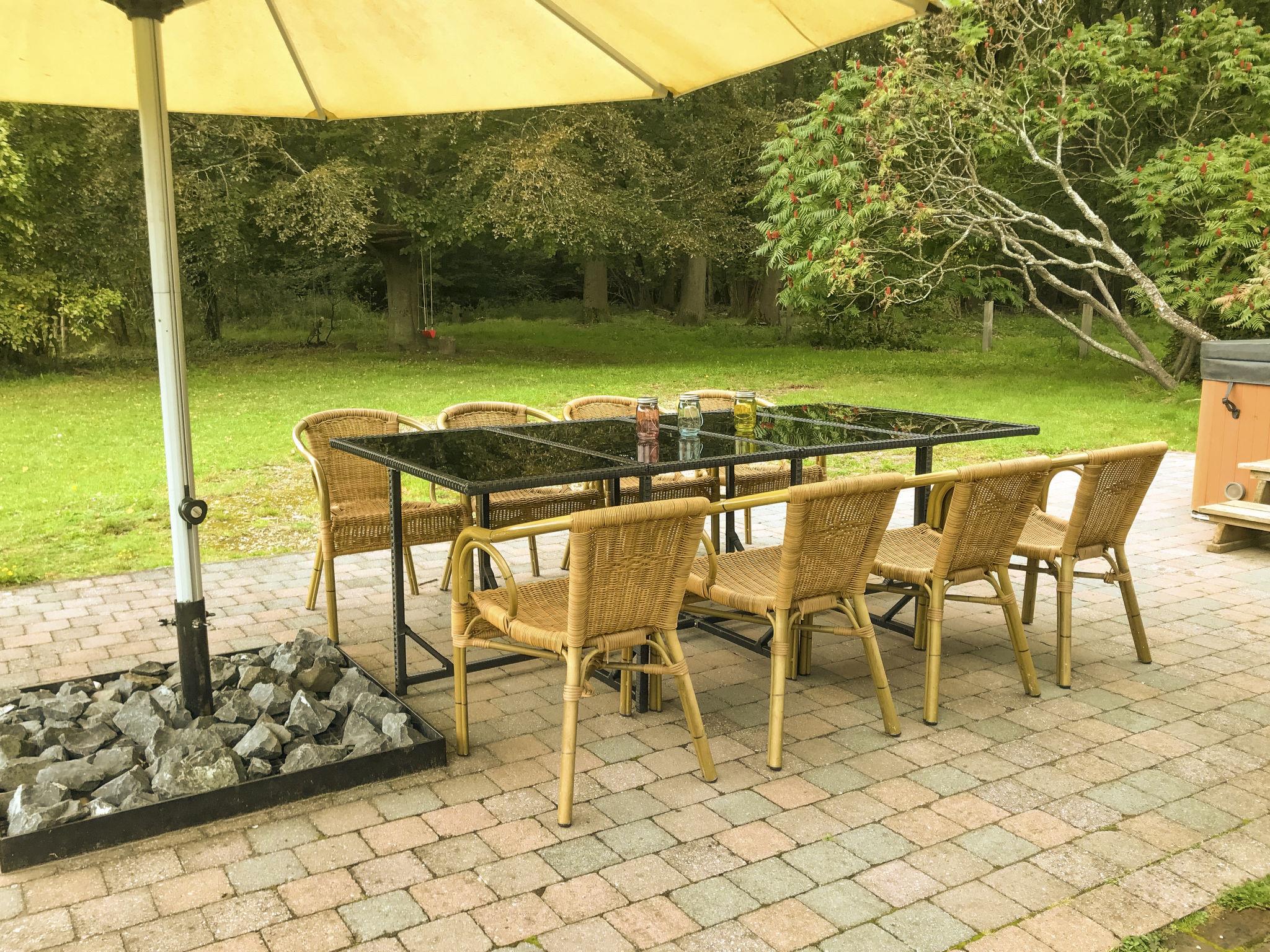 The spacious veranda, which also provides a fairytale view over the nature reserve, will allow you to spot deer and other wildlife unnoticed. Children can play to their hearts' content in the climbing trees on the grounds. A rope ladder and swing were installed in grandfatherly fashion on the tree near the terrace. Faithful four-legged friends are also welcome. Part of the garden has been specially fenced off for them. The holiday home has a spacious terrace with table and chairs for 8 people, a finished dog field and a beautiful view of the nature reserve. A swing and rope ladder are attached to the climbing tree near the terrace. Cycling and mountain bike enthusiasts will find plenty of space to clean their bikes.