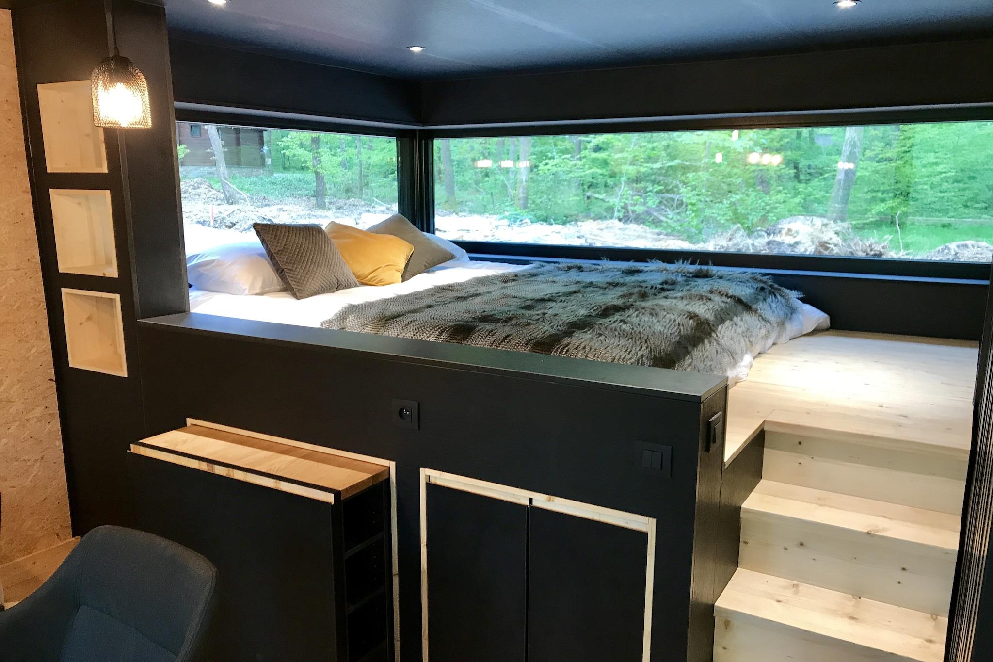 Bærekraftig skogsflukt med moderne komfort Denne økohytta ligger bortgjemt i et rolig, privat område i Village de Vacances Oignies, og blander luksus med natur. Hytta er designet som en krysning mellom en elegant trehytte og et lite hjem, og har naturlige materialer som halmisolasjon og en varmepumpe for helårskomfort. Innvendig gjør smarte plassbesparende funksjoner – som et uttrekkbart spisebord og koselig salongboks som forvandles til en king-size seng – perfekt for par eller små familier. Dyrevennlig paradis i trærne Ta med deg din firbeinte venn – kjæledyr er velkomne! Omgitt av fredelige skogsstier, er det den perfekte lekeplassen for hunder å utforske uten bånd. Du kan nyte lange fotturer, vandre langs innsjøen, eller bare slappe av på den delvis overbygde terrassen mens kjæledyret ditt slumrer i nærheten. For en morsom utflukt tilbyr nærliggende landsbyer kjæledyrvennlige kafeer og piknikplasser hvor både du og kjæledyret ditt kan føle seg hjemme. Fredelig tilbaketrukkethet med lokale smaker i nærheten Selv om hytta ligger dypt i naturen, er hytta bare en kort kjøretur fra sjarmerende byer som Couvin og Nismes, hvor du finner koselige tavernaer, bakerier og belgisk mat. Etter en dag med eventyr kan du komme hjem for å nyte et måltid tilberedt på ditt fullt utstyrte kjøkken, eller slappe av med en film og et glass vin under stjernene. Enten det er fred, lek eller nærhet du er ute etter – denne hytta tilbyr alt i øko-luksus.