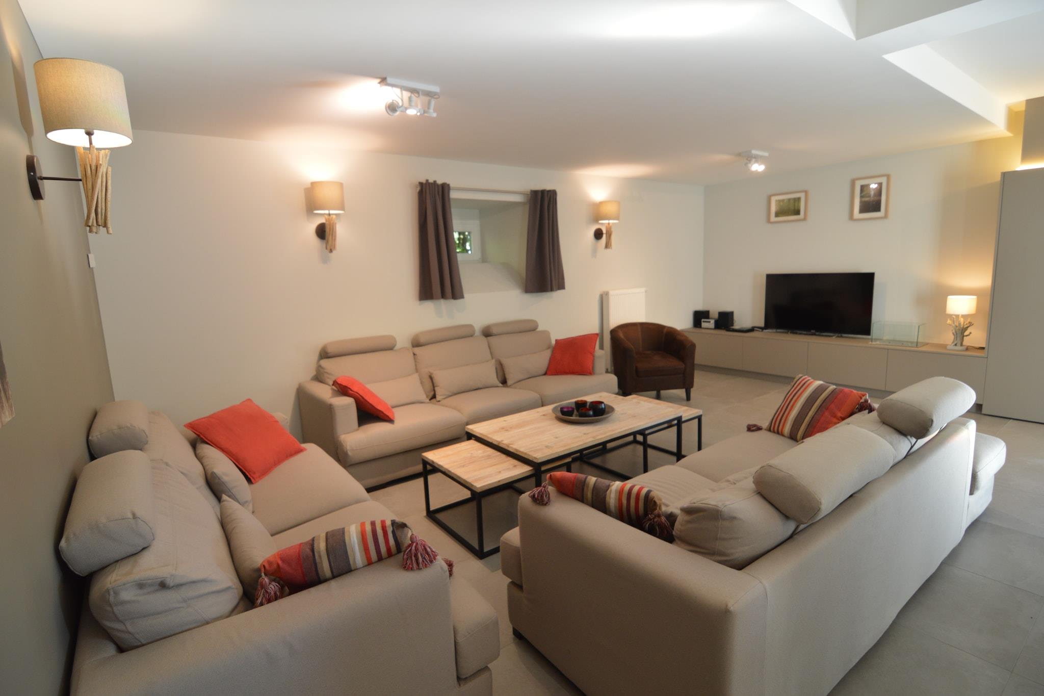 Dette vakkert renoverte huset ligger i stor, 4 hektar stor eiendom i en dal i den belgiske byen Ondenval. Huset ligger i en meget rolig beliggenhet midt i naturen og tilbyr fantastisk utsikt over dalen. Den hyggelige, romslige kjøkken / spisestue er fullt utstyrt og tilbyr plass til hele gruppen. Den separate stuen har et koselig sittegruppe og et bord hvor noen mennesker kan sitte og spille et spill eller ta en matbit. Det er en badstue i første etasje. Huset ligger i stor, privat eiendom, og terrassen tilbyr uforstyrret utsikt over dalen og skogene. Huset er et ideelt utgangspunkt for fotturer, sykkelturer eller utflukter. Ondenval er en liten landsby i Ardennene, sør for byen Waimes og på kanten av Hoge Venen. Det er to hus i disse områdene, som begge deler samme parkeringsplass. Disse husene kan bestilles sammen, noe som gir deg innkvartering for opptil 24 personer.