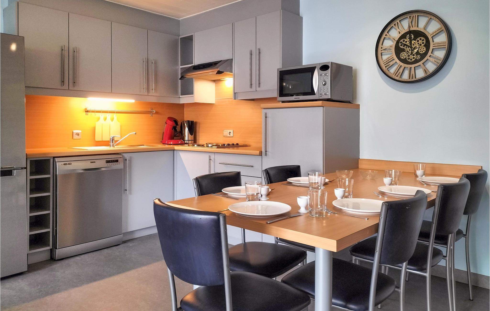 Nyt en avslappende ferie med familien i denne komfortable leiligheten, som har alt du trenger for en bekymringsfri ferie. Det sentrale stedet i leiligheten i første etasje er stuen, der du kan lage mat i det åpne kjøkkenet, leke ved spisebordet og slappe av i sofaen.