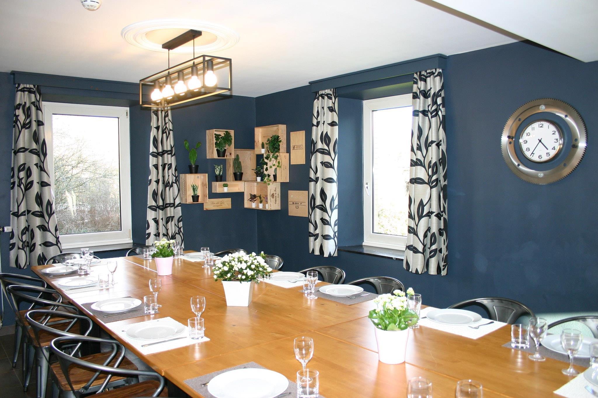 Dette romslige og innbydende feriehuset i Vielsalm er perfekt for store grupper eller familier som reiser sammen. Med 5 store soverom, er det komfortabelt vert for opptil 16 gjester. Nyt den ultimate avslapningen med en privat badstue, hage, terrasse og grill. Området ligger i hjertet av Ardennene, og byr på mange utendørsopplevelser, fiske, ridning, fotturer og terrengsykling. Etter en dag med utforsking kan du slappe av ved vedovnen i den koselige stuen eller samles rundt det store bordet i den romslige spisestuen. For moro og lek er det et lekerom med bordfotball og biljard, og utendørs finner du lekeapparater for barn. Dette barnevennlige hjemmet har også en barneseng og barnestol. Med plass til 6 parkerte biler, er den ideell for flere familier. Merk: Ungdomsgrupper er ikke tillatt.