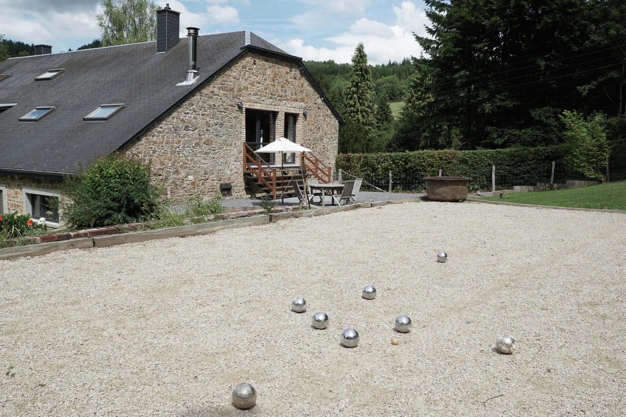 Dette sjarmerende huset ligger mellom elven og skogen, og tilbyr et fredelig og privilegert tilfluktssted i hjertet av de belgiske Ardennene. Med en blanding av moderne komfort og historisk karakter, har den plass til opptil 14 personer i syv romslige soverom. Eiendommen kan også utvides ved å kombinere med den tilstøtende hytta "La Clairière", ideell for større sammenkomster. Eieren har omtenksomt bevart hjemmets historie samtidig som de har lagt til myk belysning og koselige detaljer, noe som gjør det til en sann refleksjon av deres familiearv. Første etasje har en stor stue, spisestue, koselig TV-stue og et biljardrom, sammen med et fullt utstyrt kjøkken, garderobe og WC. Gjestene kan nyte en overbygd terrasse og et stort uteområde. Første etasje inneholder flere soverom, hvert med sitt eget private dusjrom, inkludert "Valley" foreldresuiten med balkong, og "The Orchard", "The Forest", "The Garden" og "The River" rom. Et lite tilstøtende rom, "The Underbrush", tilbyr en ekstra seng. I andre etasje tilbyr "The Meadow" og "The Stream" begge dobbeltsenger og eget bad. Den store skogkledde hagen (60 ar) er fullstendig inngjerdet, med en bekk, en liten dam og petanquebane. Privat parkering er tilgjengelig for opptil seks biler, noe som sikrer komfort og privatliv for alle gjester.