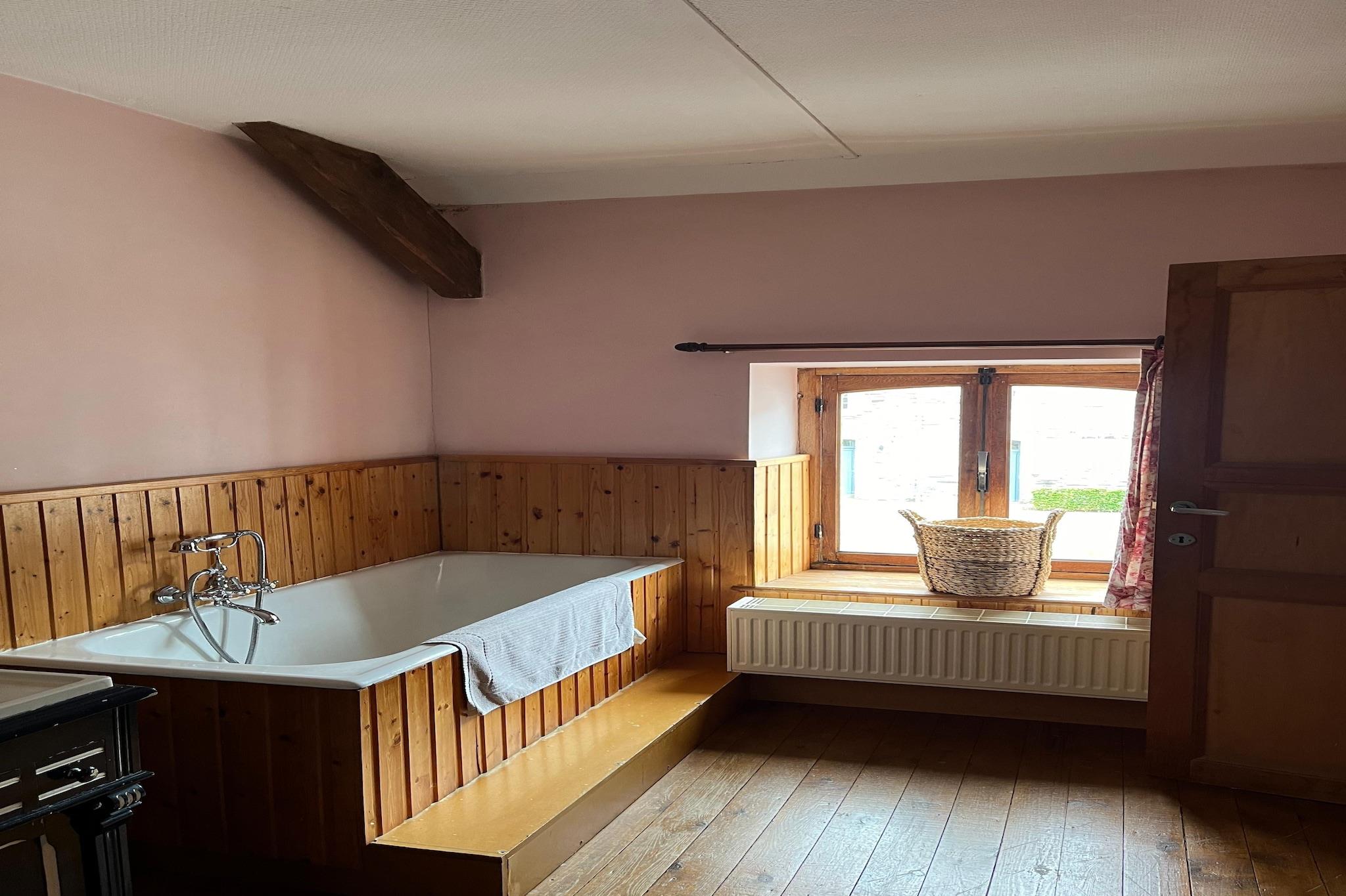 Zeer mooi gelegen en simpel ouderwets maar toch comfortabel ingerichtte kasteelhoeve. Voldoende wasgelegenheid voor de negen volwassen personen waar wij mee verbleven in dit grote huis. Wel opletten dat men niet te hard praat in de zitruimte als er al mensen slapen in de kamers erboven. Een droogkast zou wel handig zijn om bij regenweer de vele handdoeken die je wel kan wassen droog te krijgen. Een zeer goede vakantie gehad in dit toch wel speciale huis met soms een vreemde bezoeker zoals een vogel of een kikker of een slak in de zitkamer. Een vakantiewoning voor mensen die niet de mooie moderne luxe hoeven maar tevreden zijn met wel alle comfort op een iets of wat ouderwetse stijl. Ook een grote achtertuin met een barbecue en voldoende tuinstoelen onder een grote schaduwrijke boom als de zon haar best doet. Voor ons zeker voor herhaling vatbaar.