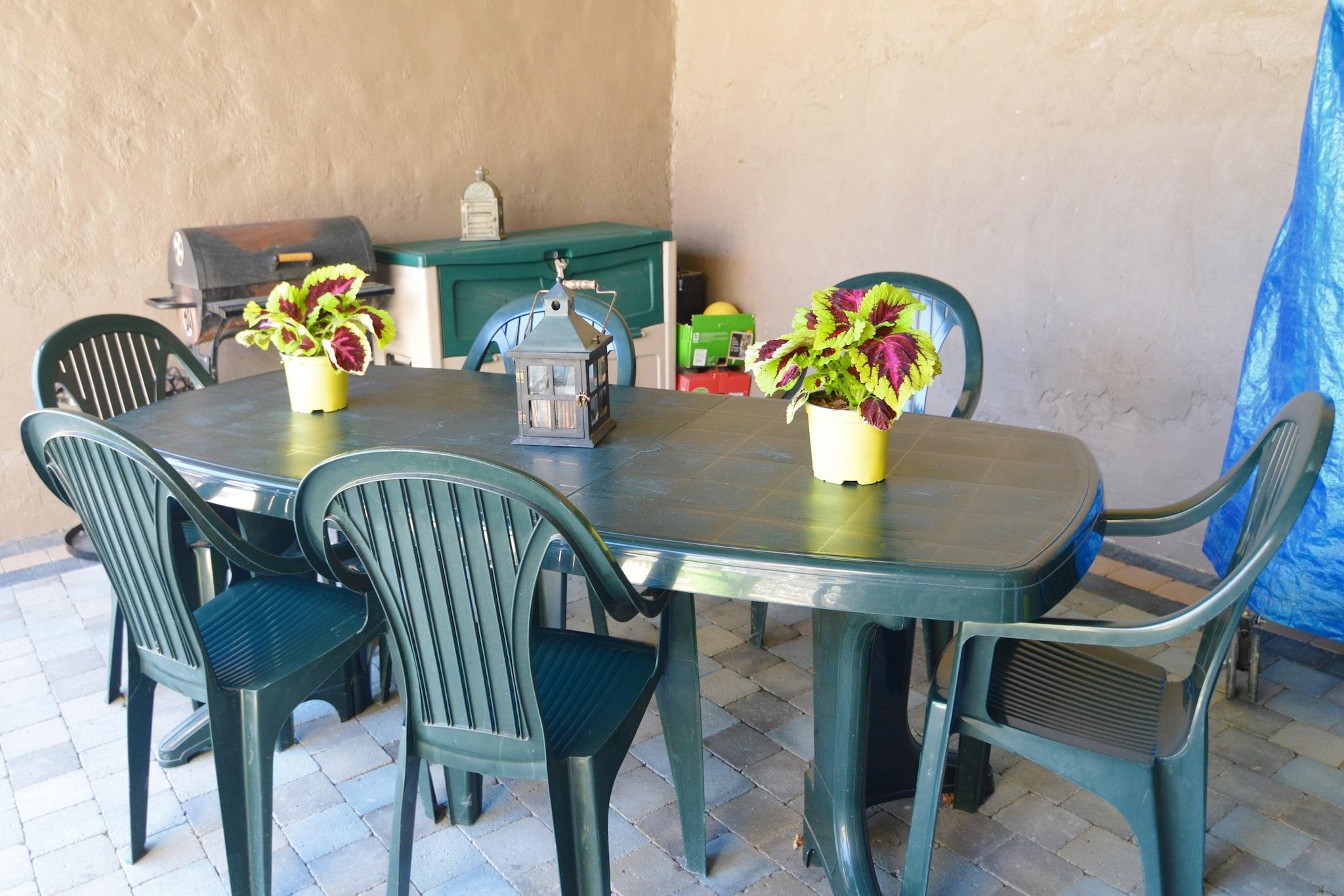 Første etasje: (Stue(TV, vedovn(tre), DVD-spiller, radio, stereo), spisestue(spisebord), Kjøkken(komfyr(komfyr med 4 kokeplater, induksjon), stekovn, kjøleskap med fryser, tørketrommel, vaskemaskin), åpent kjøkken(vannkoker, brødrister, kaffetrakter(kaffetrakter, kaffepute), mikrobølgeovn, oppvaskmaskin), soveværelse(dobbeltseng(160 x 200 cm), køyeseng), soveværelse(dobbeltseng(160 x 200 cm), babyseng/sprinkelseng), bad(badekar, dusj, håndvask, toalett), WC(håndvask)) terrasse(privat, inngjerdet), terrasse(privat), hage, hagemøbler, grill, parkering, kulespill, lekeområde, bordtennis, høy barnestol