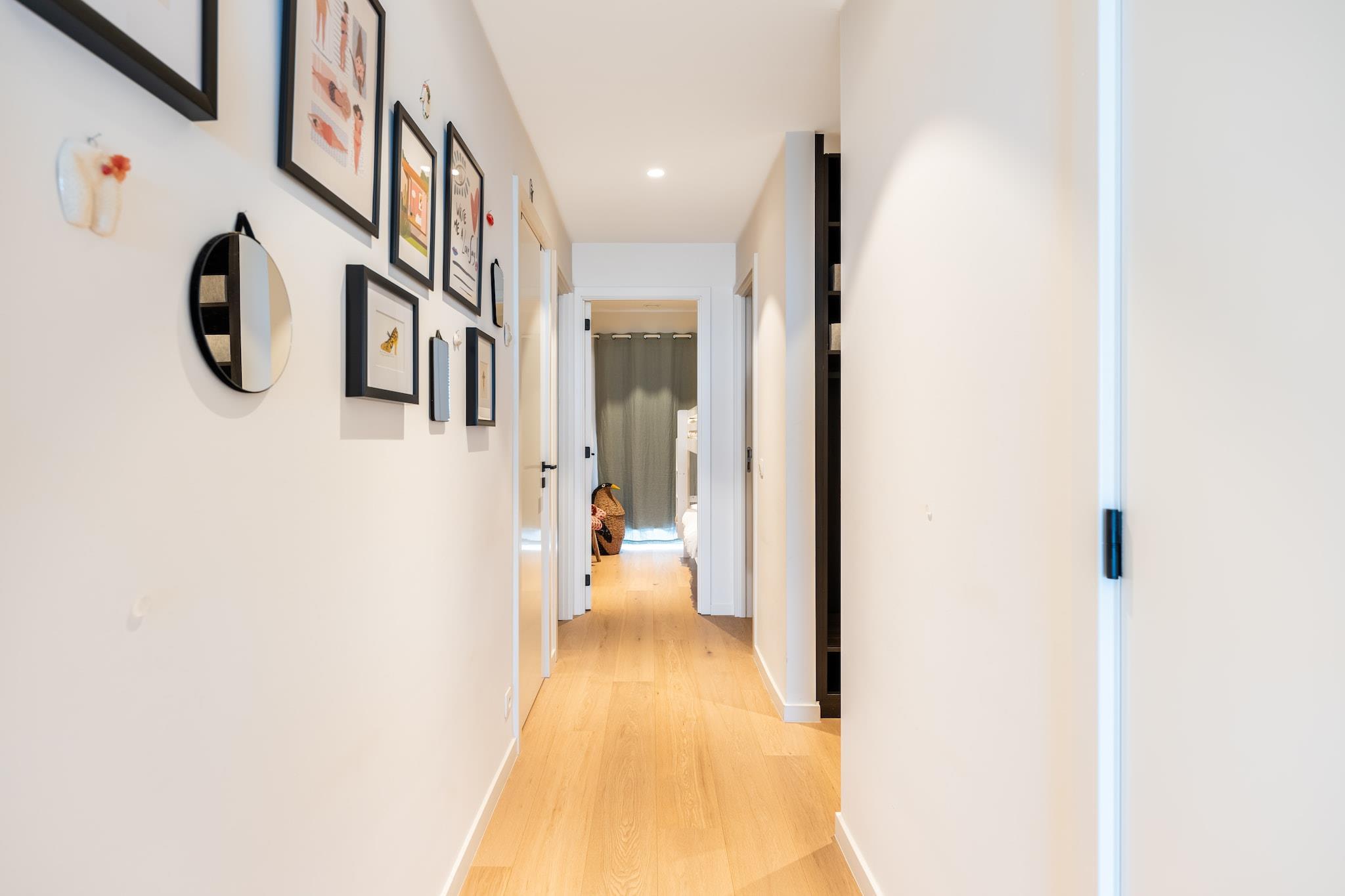I 2. etasje: (åpent kjøkken(komfyr med kokeplater(induksjon), vannkoker, brødrister, kjøkkenvifte, kaffetrakter(kopper), stekovn, grill, mikrobølgeovn, oppvaskmaskin, kjøleskap med fryser, Juicemaskin, Håndholdt blender), Stue/spisestue(TV(flatskjerm, digital), spisebord, sittehjørne, balkong eller terrasse), soveværelse(dobbeltseng(dobbeldyne, 160 x 200 cm)), soveværelse(køyeseng(dyn)), Sovrum med badrum(dobbeltseng(dobbeldyne, 160 x 200 cm), dusj, håndvask, toalett), bad(dusj(Frittstående dusj), håndvask, håndvask), WC(toalett)) balkong eller terrasse, heis, strykebrett, strykejern