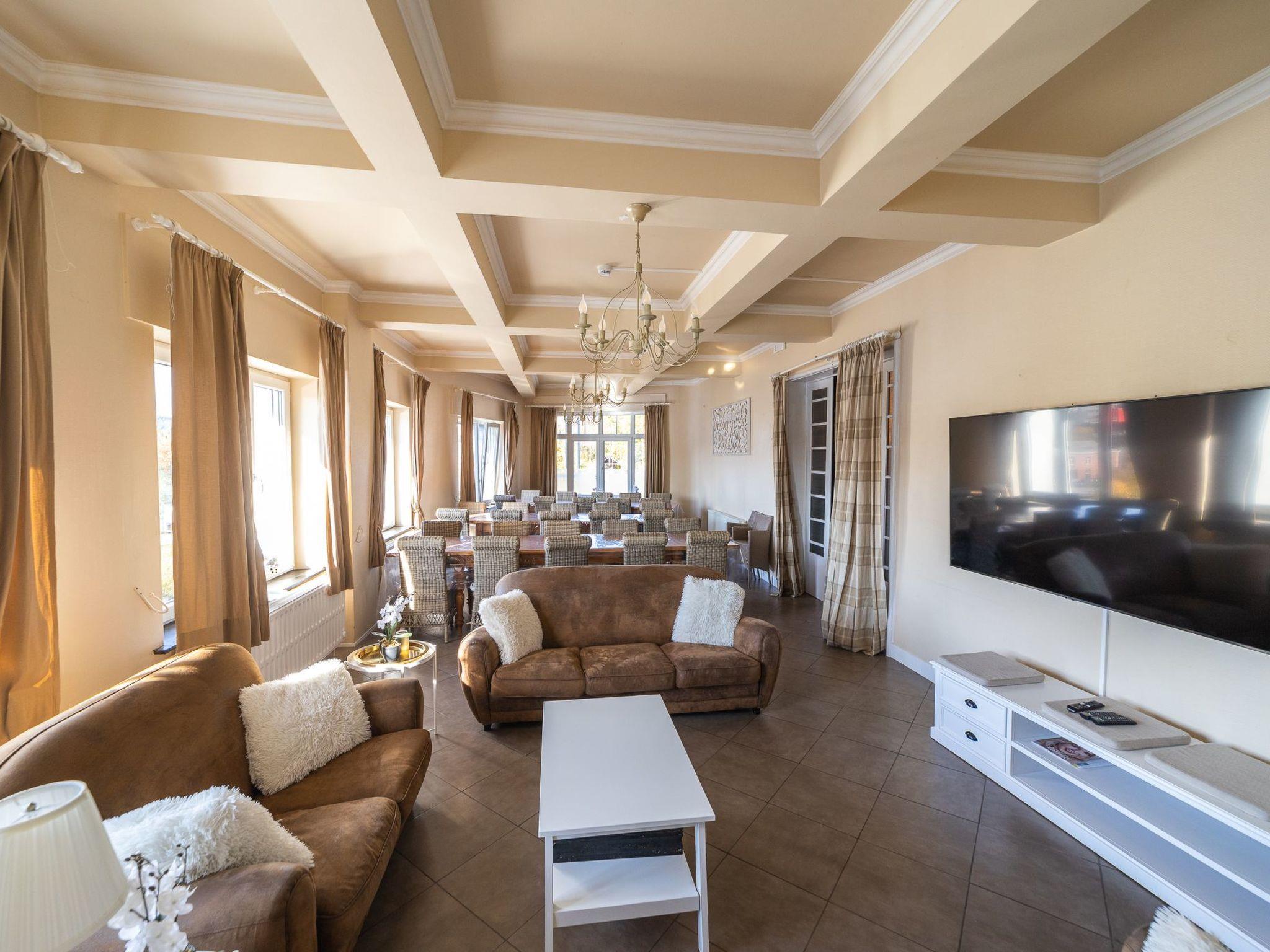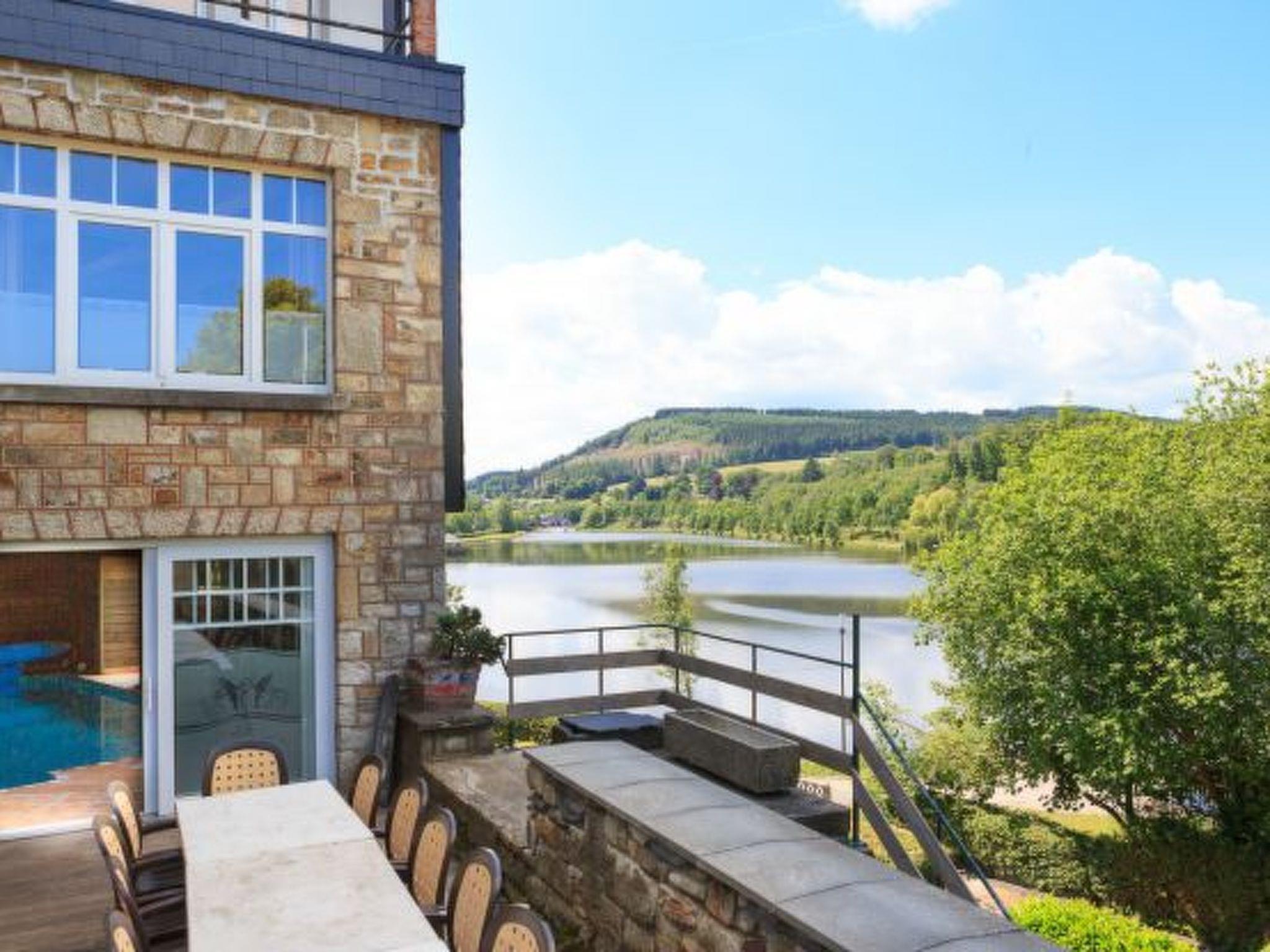 Villa 34p Wellness Renovated former hotel located in the centre of the town of Vielsalm. Ideal for large families. Direct access to the lake and stunning views. The house has 17 bedrooms and 14 bathrooms. Bar, fully equipped kitchen, 2 lounge areas and 1 children's playroom. Basement wellness area with heated pool, sauna and access to terrace and garden.