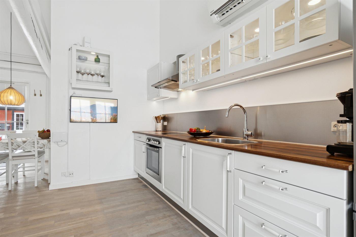 Kjøkkenet er utstyrt med 1 kjøleskap. Det er 4 keramiske kokeplater, varmluftsovn.