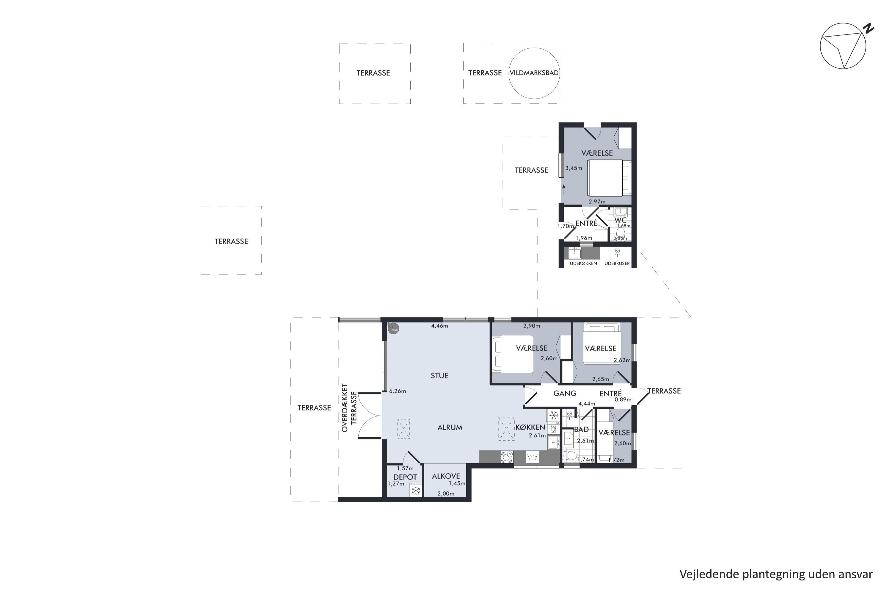 The property is situated on a well-kept plot with several attractive terraces. Near the annex, you’ll find a luxurious wildernes bath and a fire pit – perfect for cosy summer evenings. There’s also an outdoor sink and shower.