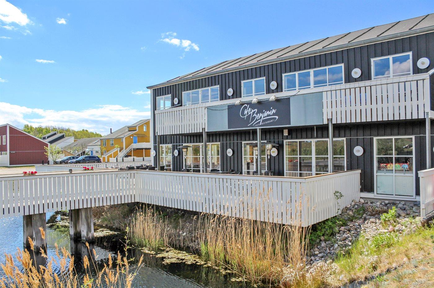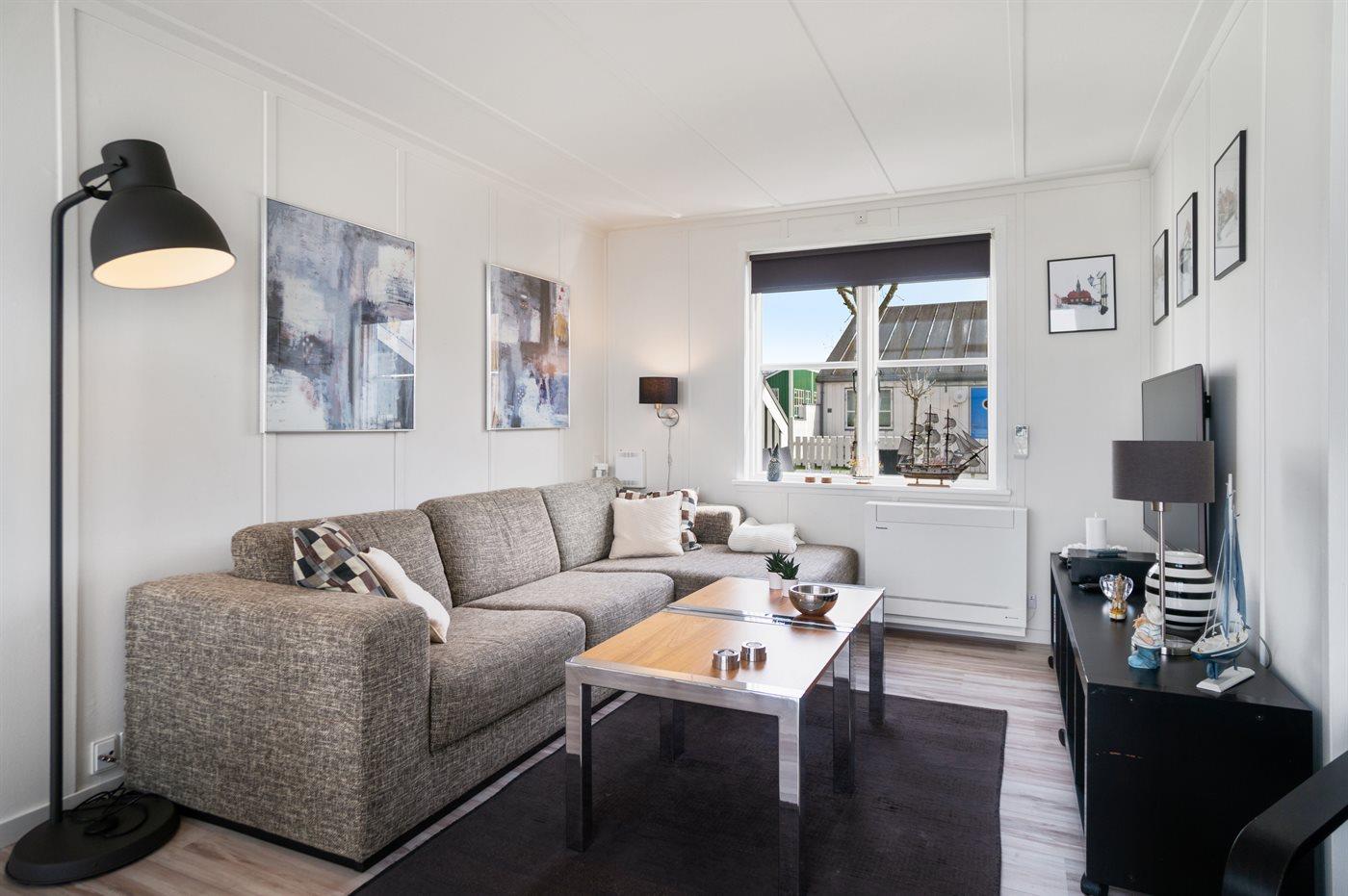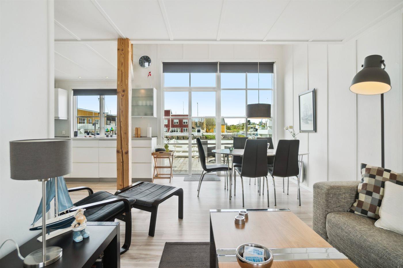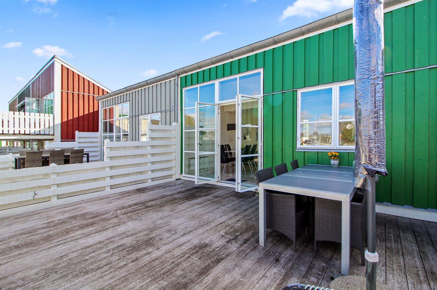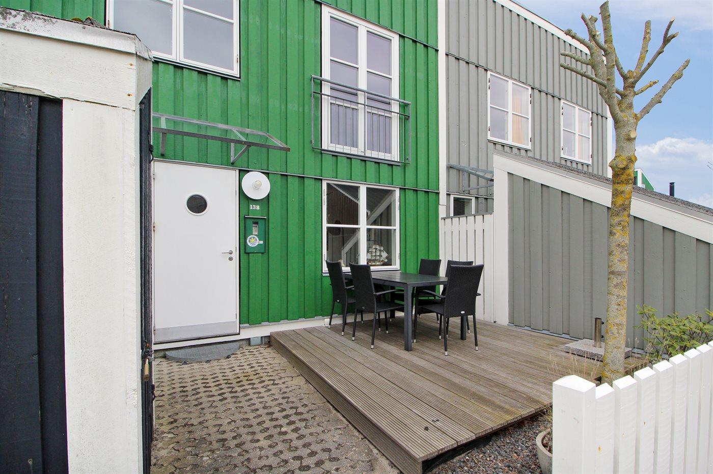Ferieboligen er beliggende på en 150 m² stor naturtomt. Avstand til hav er 5 m. Nærmeste butikk ligger i en avstand på 500 m. Til ferieboligen hører 30 m² terrasseareal. P-plass ved huset.
