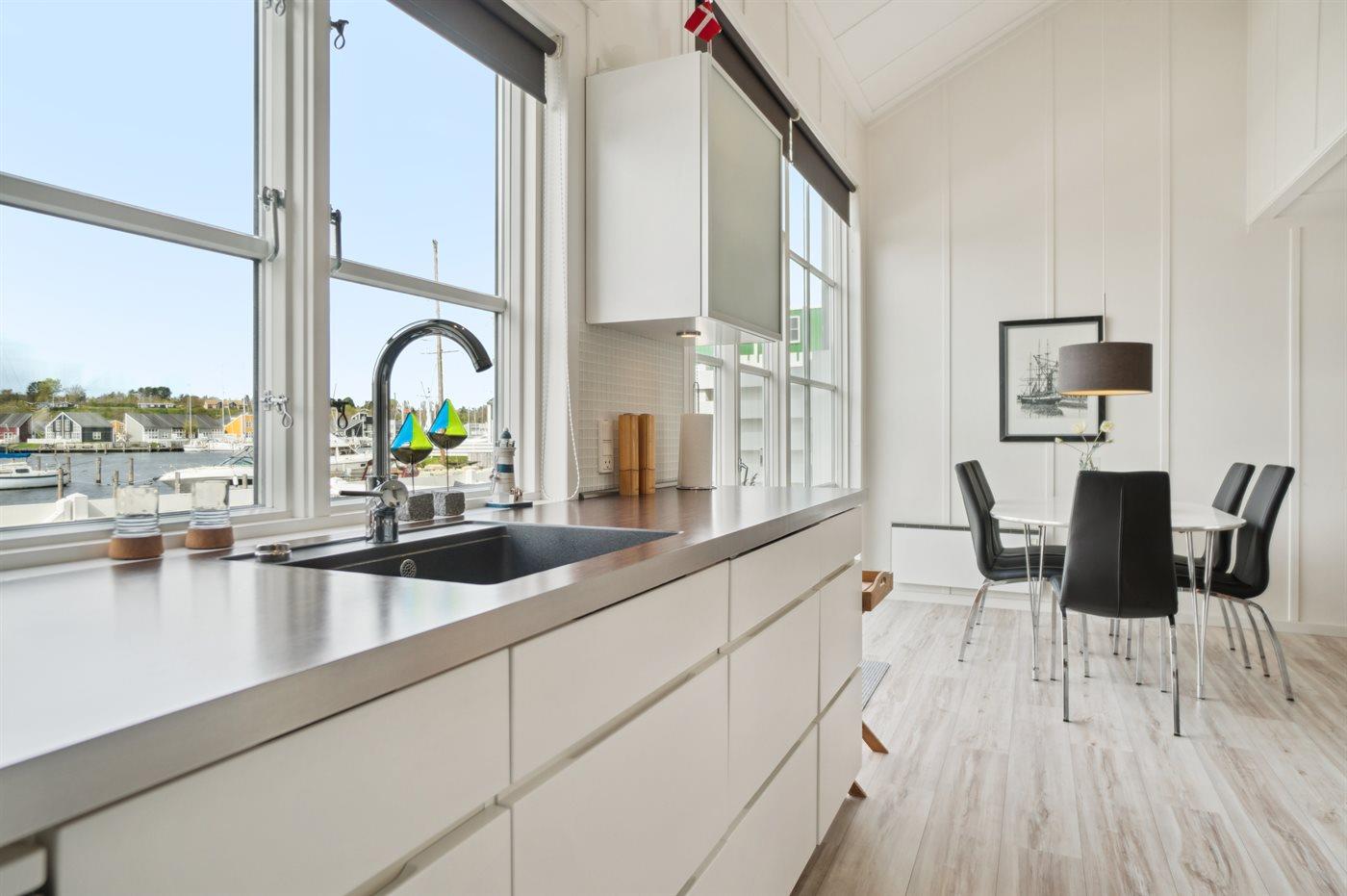 Kjøkkenet er utstyrt med 1 kjøleskap. Det er 4 keramiske kokeplater, varmluftsovn, mikrobølgeovn og oppvaskmaskin.