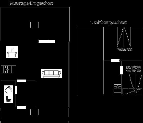 Det er i alt 2 soverom. Soveplassene fordeler seg på: 4 soveplasser i dobbeltsenger.1 soveplass i etasjeseng.