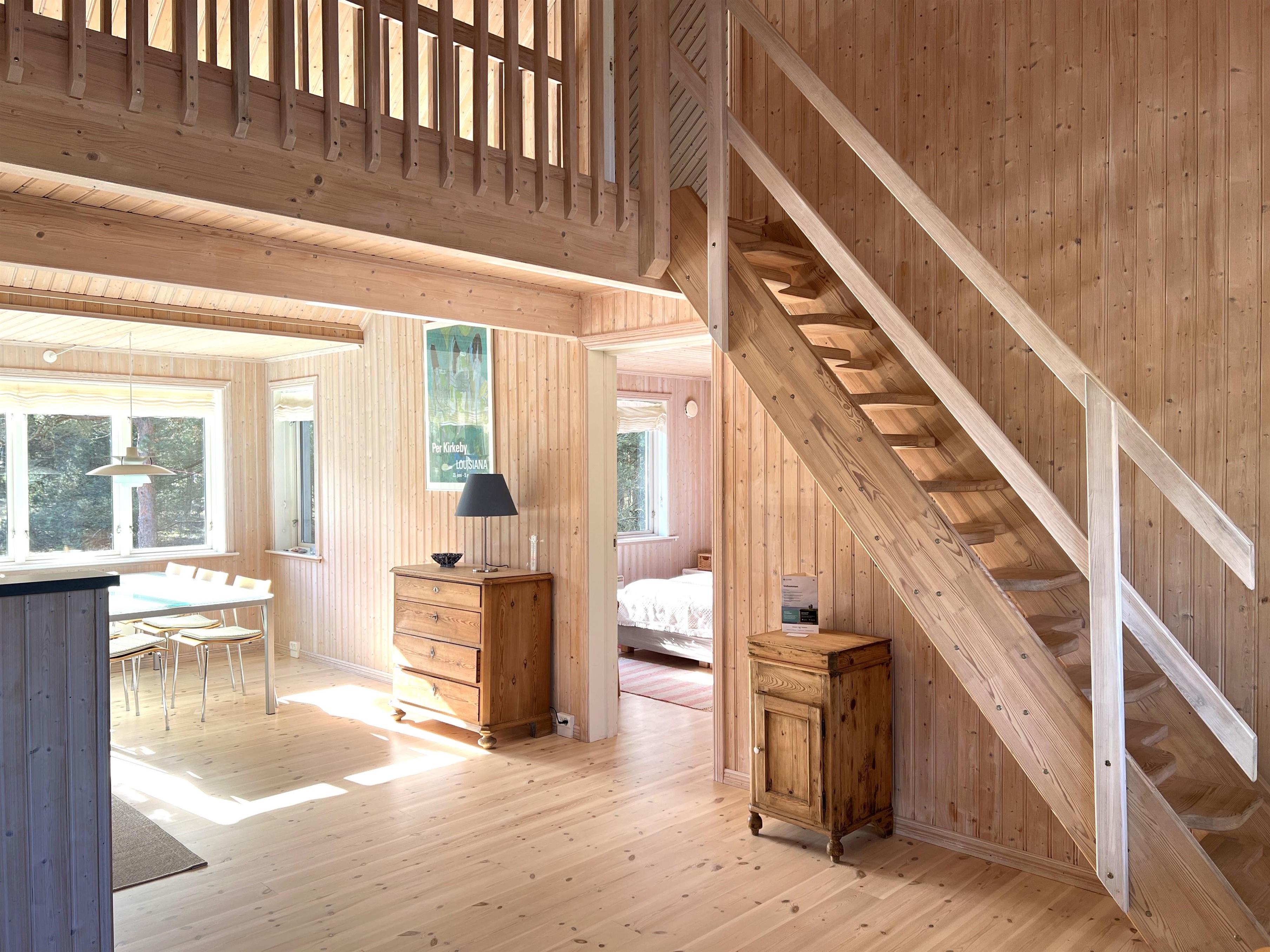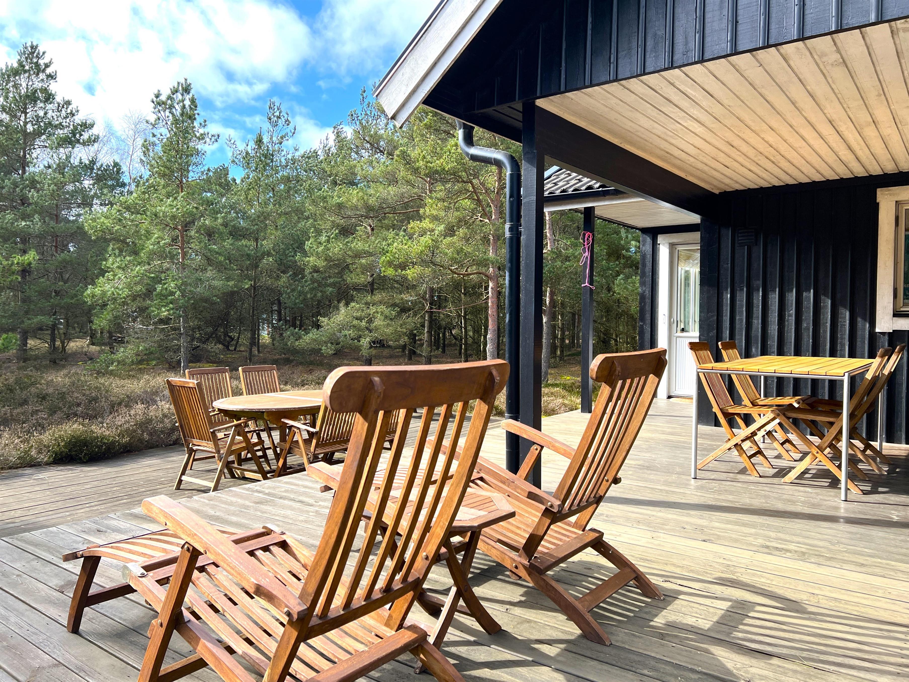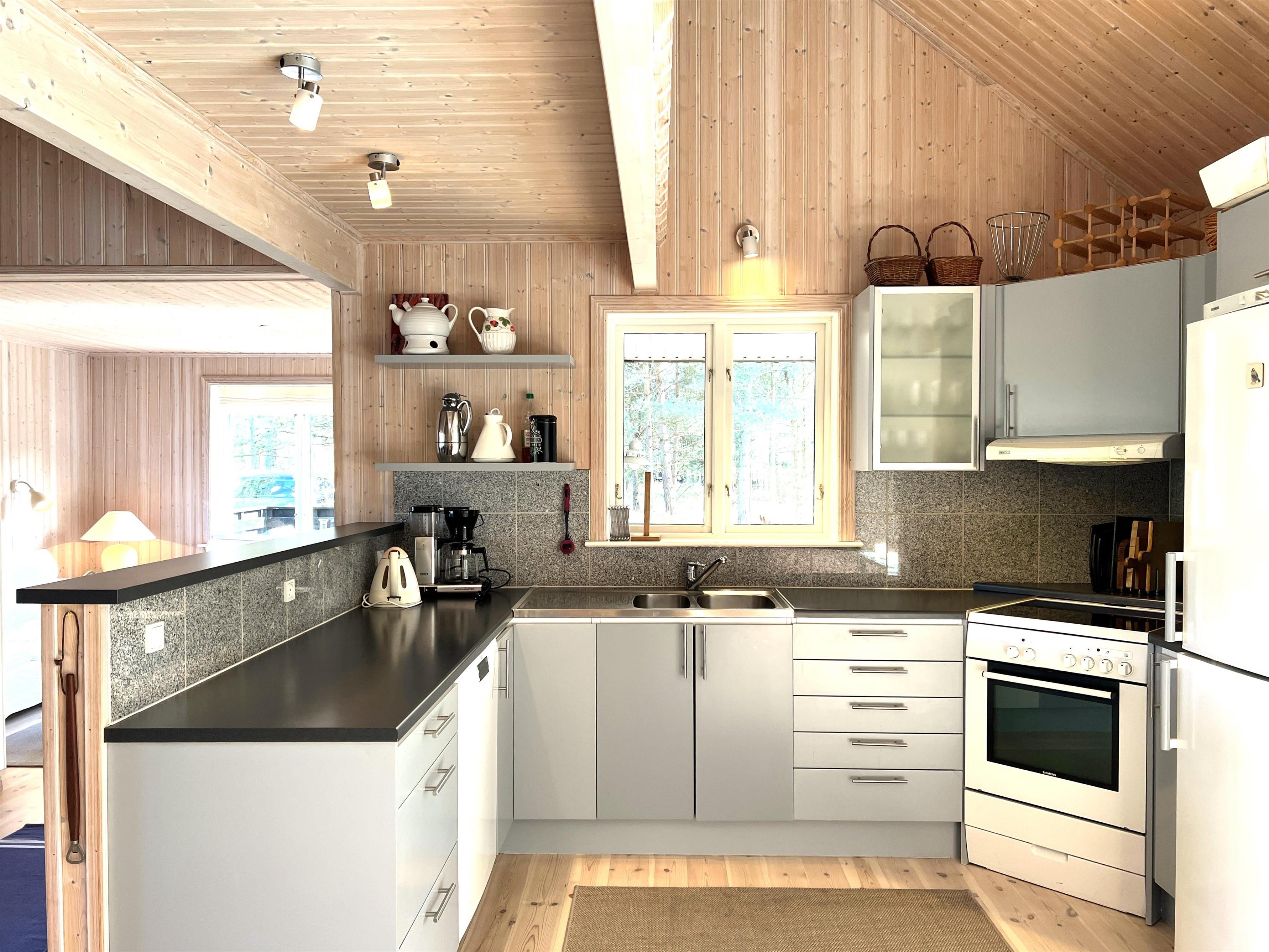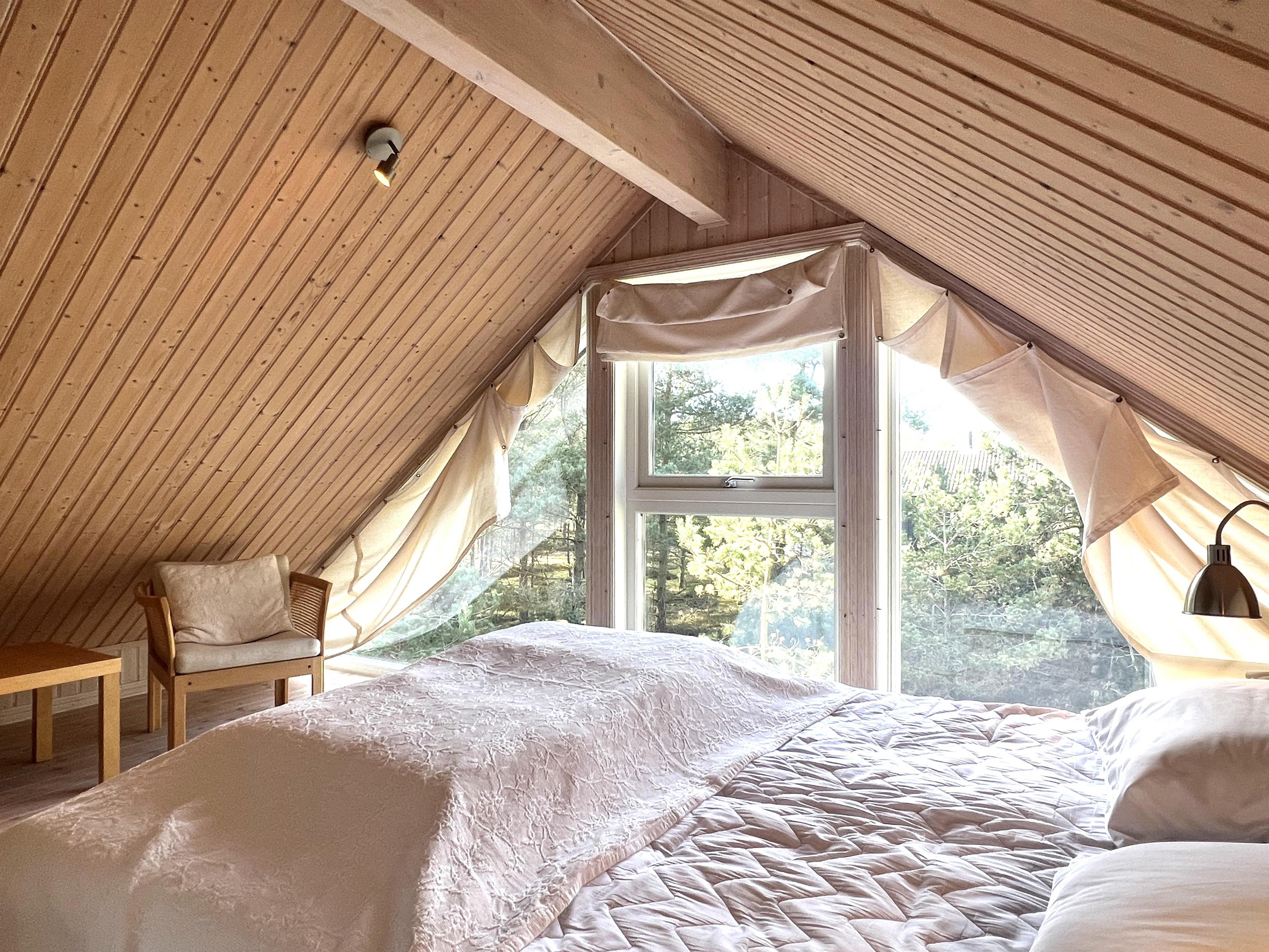 Das große Haupthaus und das Nebengebäude sind durch eine Holzterrasse verbunden, so dass Sie problemlos zwischen den beiden Häusern wechseln können, die zu schönsten Urlaubsaufenthalten einladen – auch für zwei Familien. Das Haupthaus ist mit einer Dachschräge gebaut und wirkt hell und einladend. Feine und gut ausgestattete Küche in offener Verbindung zum Esszimmer mit Zugang zur beeindruckend großen Terrasse. Das Haus verfügt über ein schönes Wohnzimmer mit bequemen Möbeln und TV, von dem aus auch Zugang zur Holzterrasse besteht. Außerdem gibt es ein Schlafzimmer mit Doppelbett und ein schönes Badezimmer mit Sauna. Im 1. Stock befinden sich zwei weitere schöne Schlafzimmer mit jeweils einem Doppelbett und zwei Einzelbetten. Alle Zimmer sind sehr geräumig und verfügen über viel Stauraum. Im Nebengebäude gibt es ein großes, schönes Schlafzimmer mit Doppelbett und ein schönes Badezimmer mit Dusche. Der Anhang verfügt über schönes Licht durch den Doppelfensterbereich mit Terrassentür. Das Haus verfügt über ein starkes Glasfasernetz und ist insgesamt sehr gut ausgestattet. Rund um das Haus gibt es mehrere schöne Sonnenplätze und viele schöne Gartenmöbel. Auch der Hausgrill kann hier genutzt werden. Zusammen mit der Aussicht auf das schöne Gelände und der ruhigen Lage spüren Sie das besondere Læsø-Ruhe.