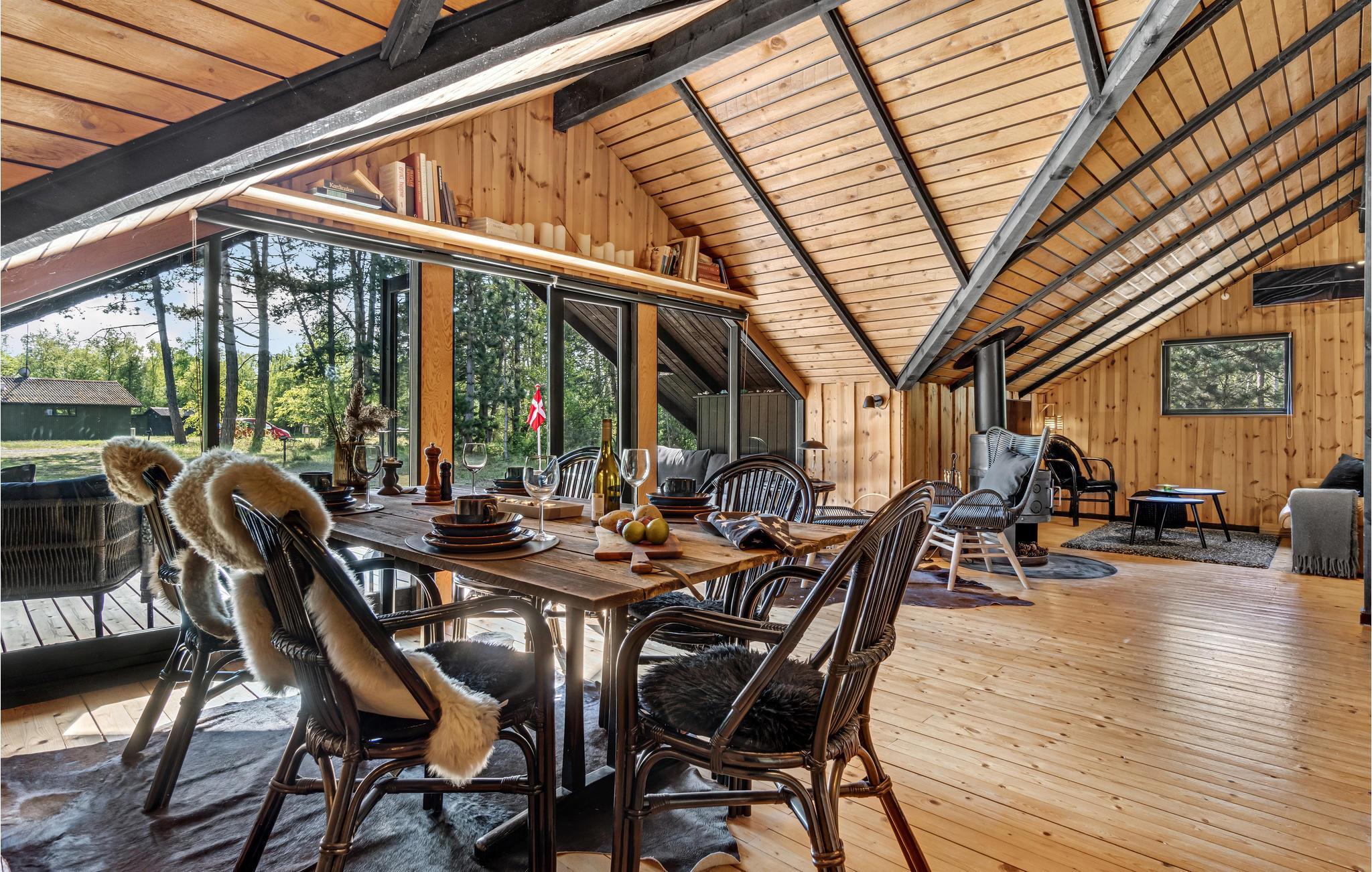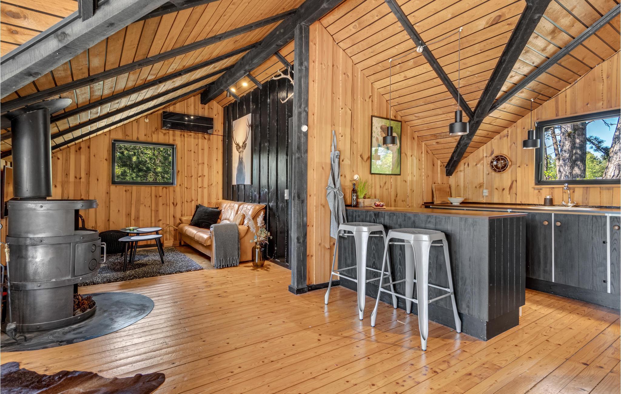 Huset ligger på en attraktiv tomt omgitt av trær og i nærheten av en god badestrand, noe som gjør det ideelt for en avslappende ferie. I de koselige rommene kan du slappe av med hele familien i en rustikk atmosfære. Lag mat sammen i fred og ro og nyt måltidene med vakker utsikt over naturen, slik at du kan oppleve nærheten til naturen på best mulig måte. Etter en aktiv dag kan du sette deg godt til rette i oppholdsrommet, legge opp føttene, fyre opp i den dekorative peisen og slå av en lang prat.
