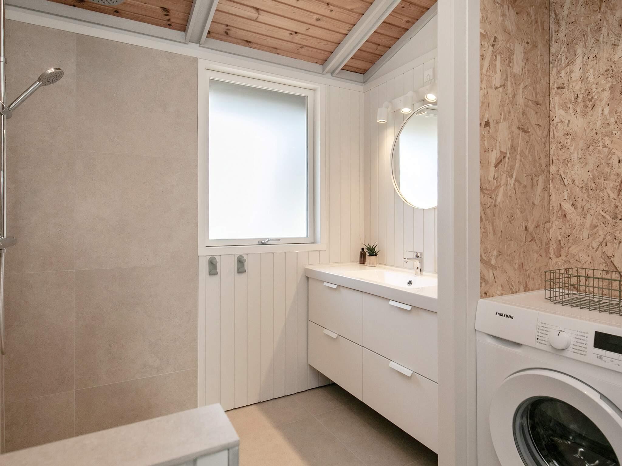 Sommerhuset har masser af plads til hele familien, med tre dejlige soveværelser (sengestørrelserne er 2 x 90 x 200 og 2 x 140 x 200) og to af soveværelserne har hems til de mindste. Et dejligt lyst badeværelse med bruseniche, gulvvarme, samt vaskemaskine.