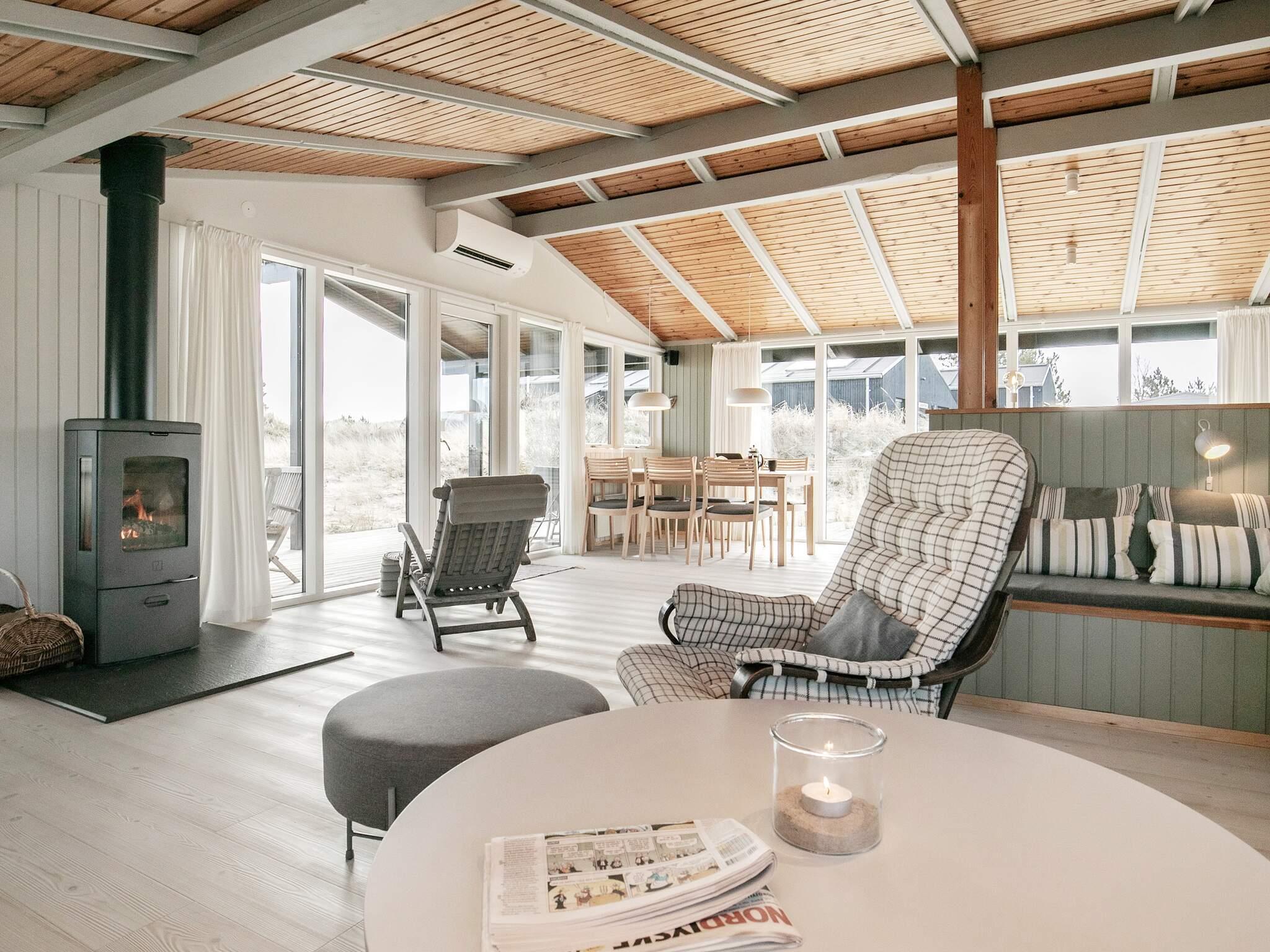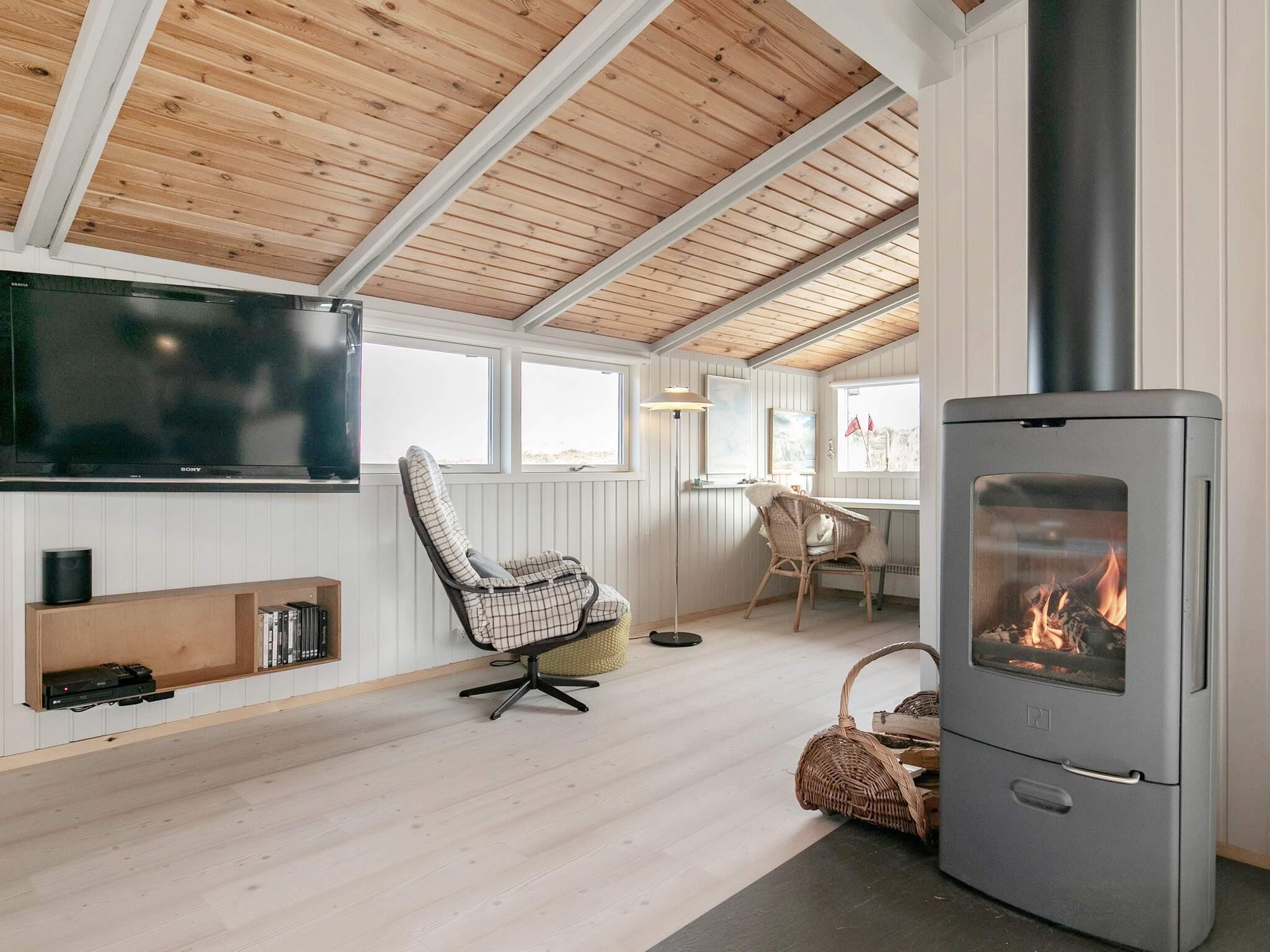 Husets hjerte er bestemt det store, veludstyrede køkken/alrum, som byder på moderne faciliteter såsom automatisk kaffemaskine og opvaskemaskine. I tilknytning til køkkenet ligger den hyggelige stue med dejlige komfortable møbler og brændeovn. Huset er desuden udstyret med et arbejdsbord med udsigt til den smukke natur.
