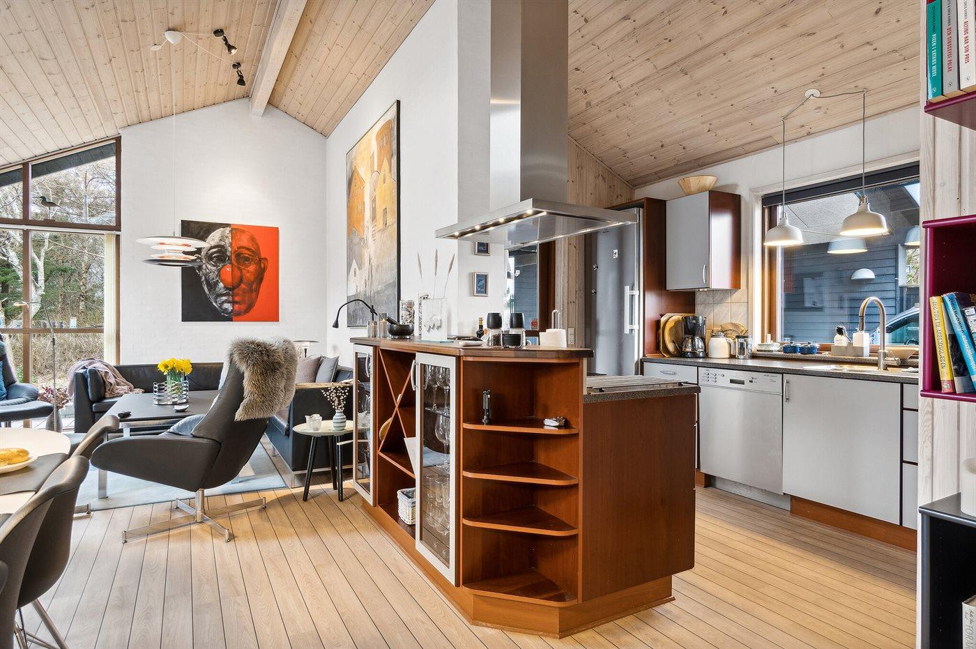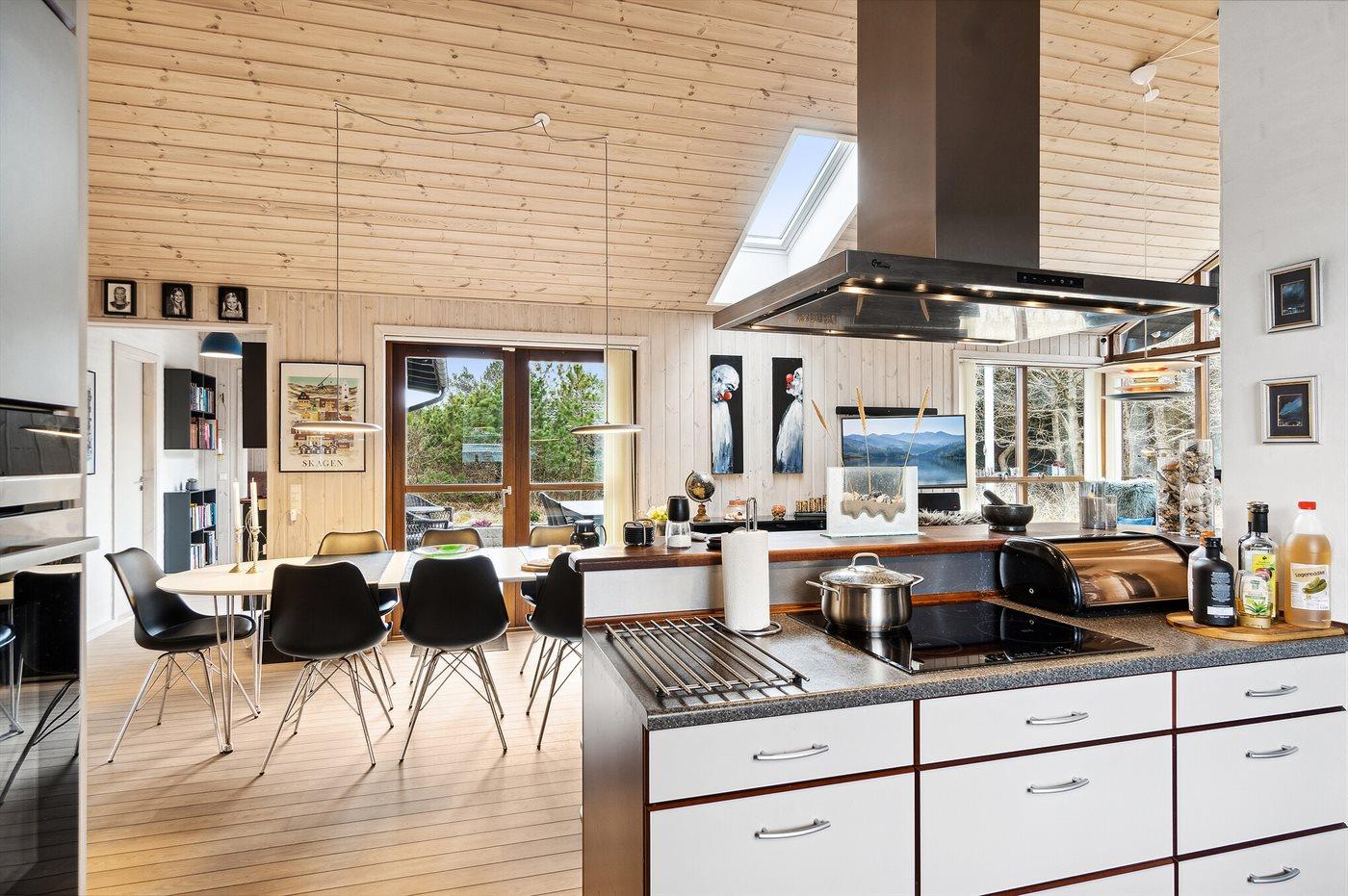 Kjøkkenet er utstyrt med 2 kjøleskap. Det er 4 induksjonskokeplater, varmluftsovn, mikrobølgeovn og oppvaskmaskin.
