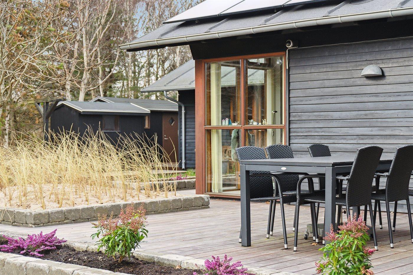 Ferieboligen er beliggende på en 2000 m² stor naturtomt. Avstand til hav er 100 m. Nærmeste butikk ligger i en avstand på 2800 m. Til ferieboligen hører åpent terrasseareal. I tillegg er det utgang til utestue. Det er Redskapsrom. Det er grill til rådighet. Det er montert kontakt til lading av elbil ved huset. Med 11 kW ladeeffekt. P-plass ved huset.