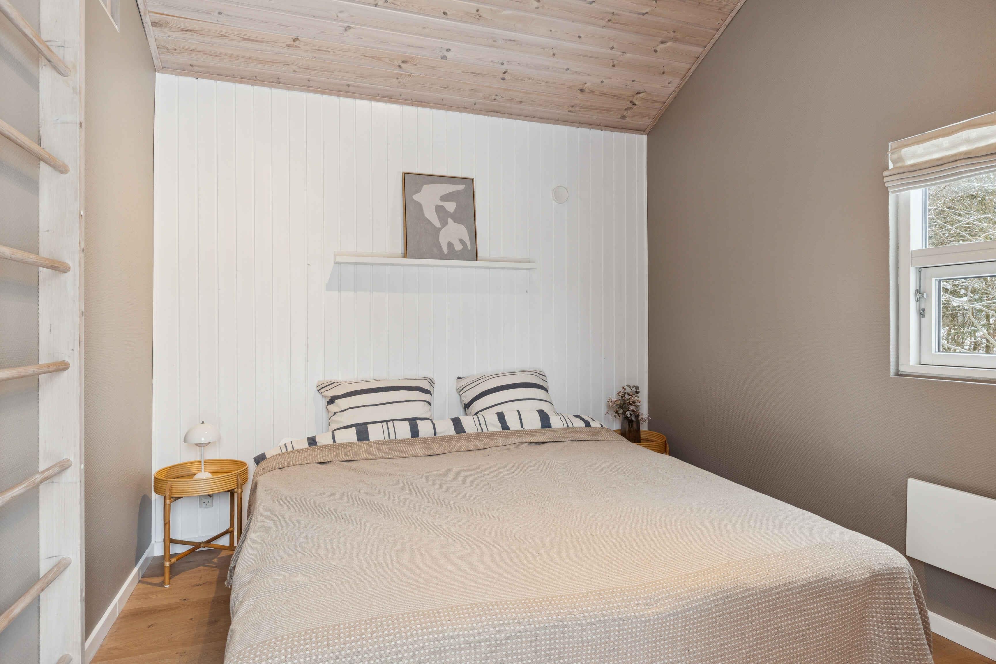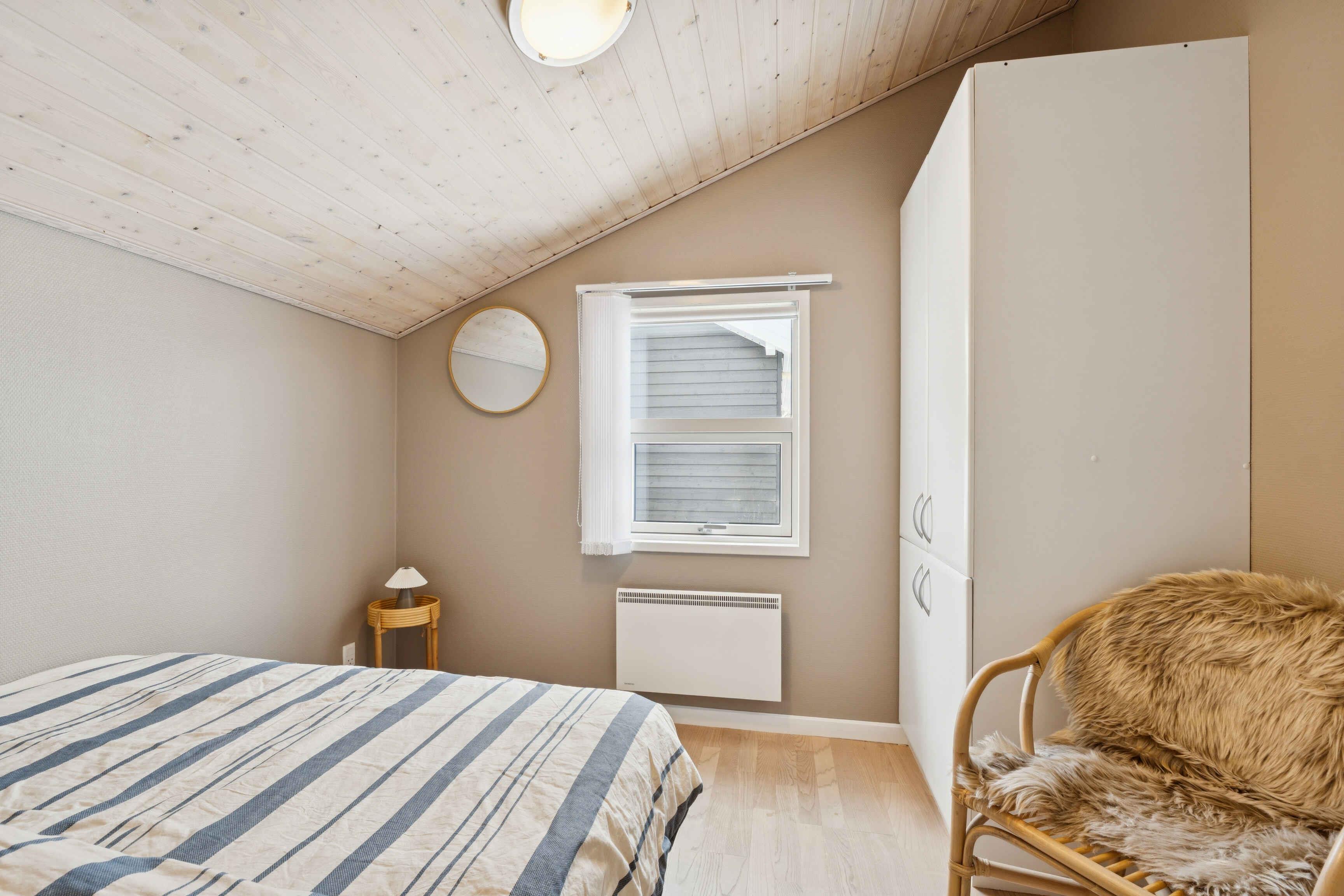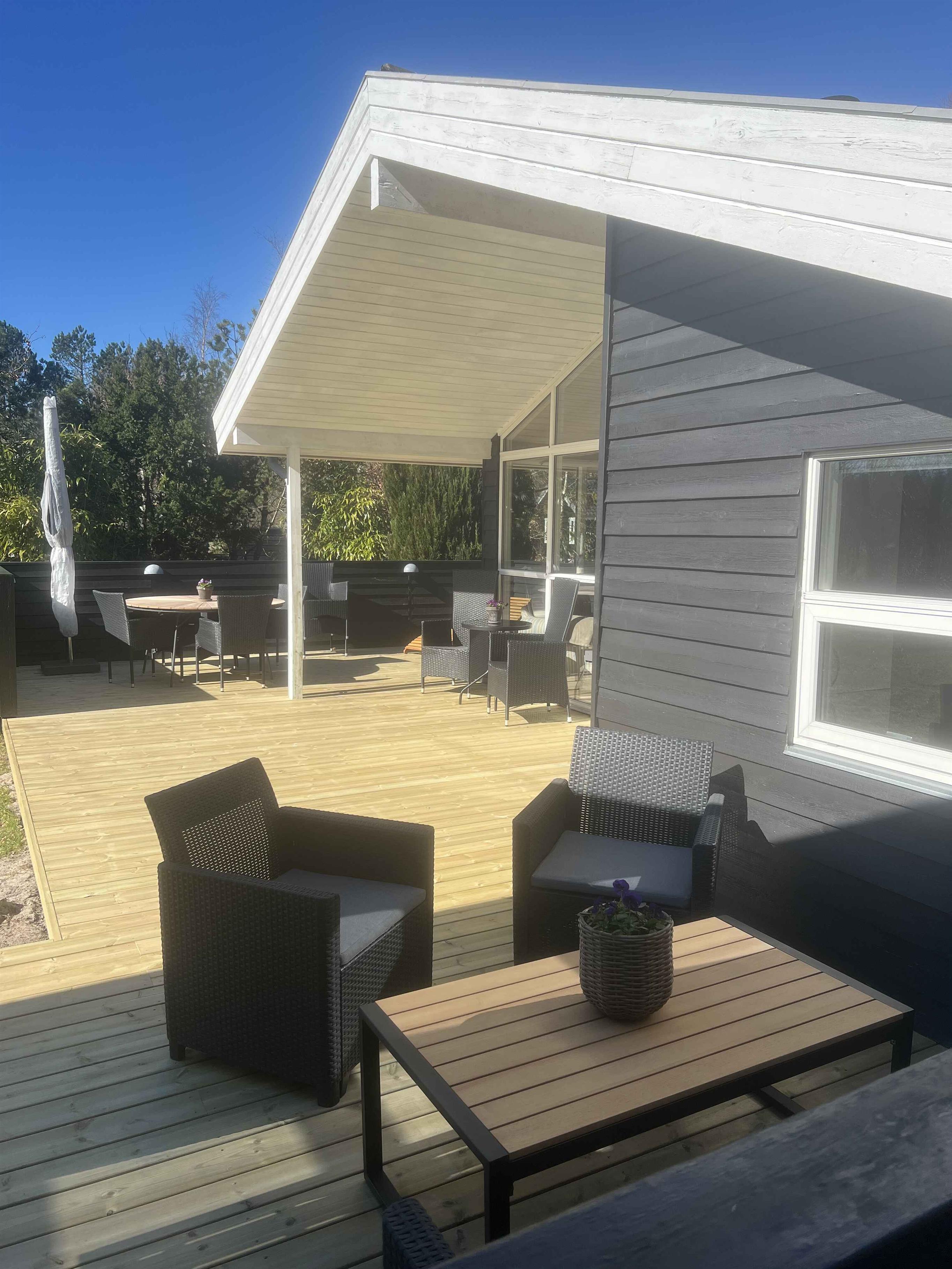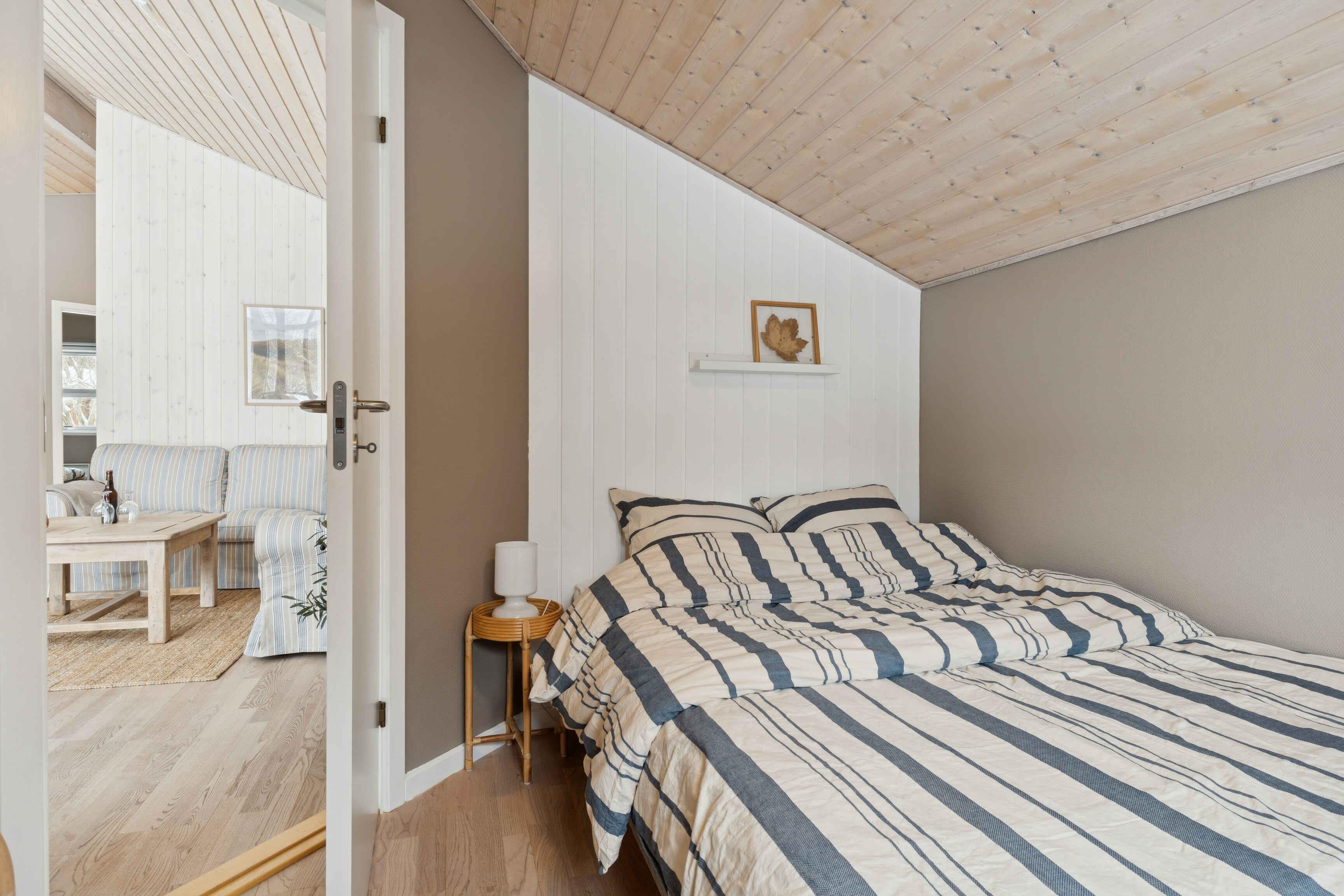 This well-maintained 70 m² holiday home offers a calm and welcoming setting for your stay. The house has been freshly painted and is neat and presentable, with wooden wall panels that create the classic holiday-home atmosphere many associate with relaxation and togetherness. The layout is practical with three bedrooms and sleeping space for up to five guests. Two bedrooms are located in the main house with beds measuring 160 cm and 140 cm. The third bedroom is in the annex, featuring new wooden floors and a 180 cm double bed. The living area is the heart of the house and invites quality time together. A wood-burning stove adds extra coziness on cooler days, while the covered wooden terrace extends outdoor living and makes it easy to enjoy meals and peaceful moments sheltered from the wind. The area surrounding the holiday home is known for its tranquil atmosphere, open landscapes, and distinctive Northern Jutland calm. Ålbæk Beach is wide and child-friendly, ideal for swimming, seaside walks, and quiet evenings overlooking the sea. The town of Ålbæk is close by, offering a harbor, shops, and restaurants. Råbjerg Mile, Ålbæk Plantation, and Skagen are also excellent destinations for day trips. Nature is always close at hand, providing great opportunities for cycling, hiking, and experiencing the surroundings at your own pace. This holiday home is an excellent choice for those seeking a well-kept vacation property with an annex, comfortable beds, a wood-burning stove, and a location where beach, nature, and attractions are easily accessible. The perfect setting for a relaxing and successful holiday.