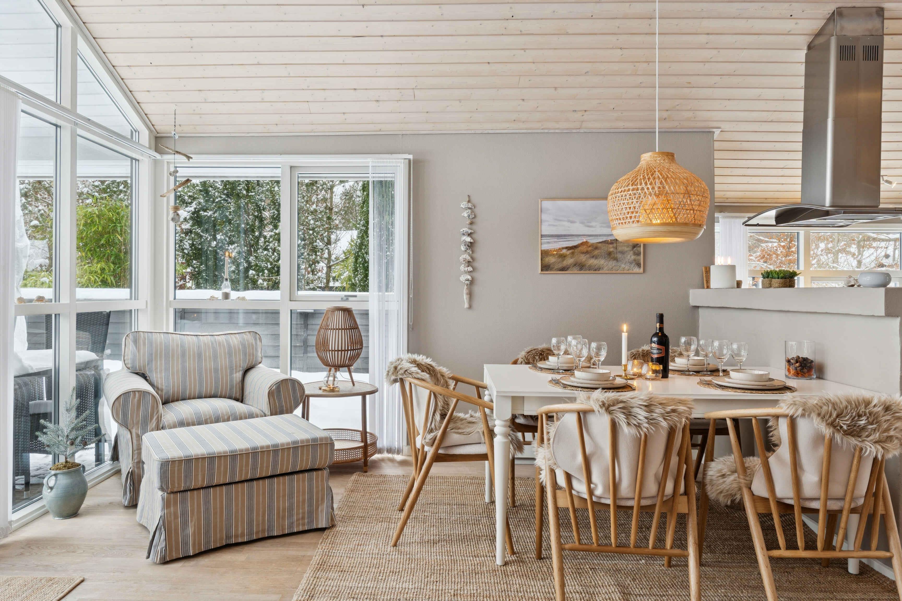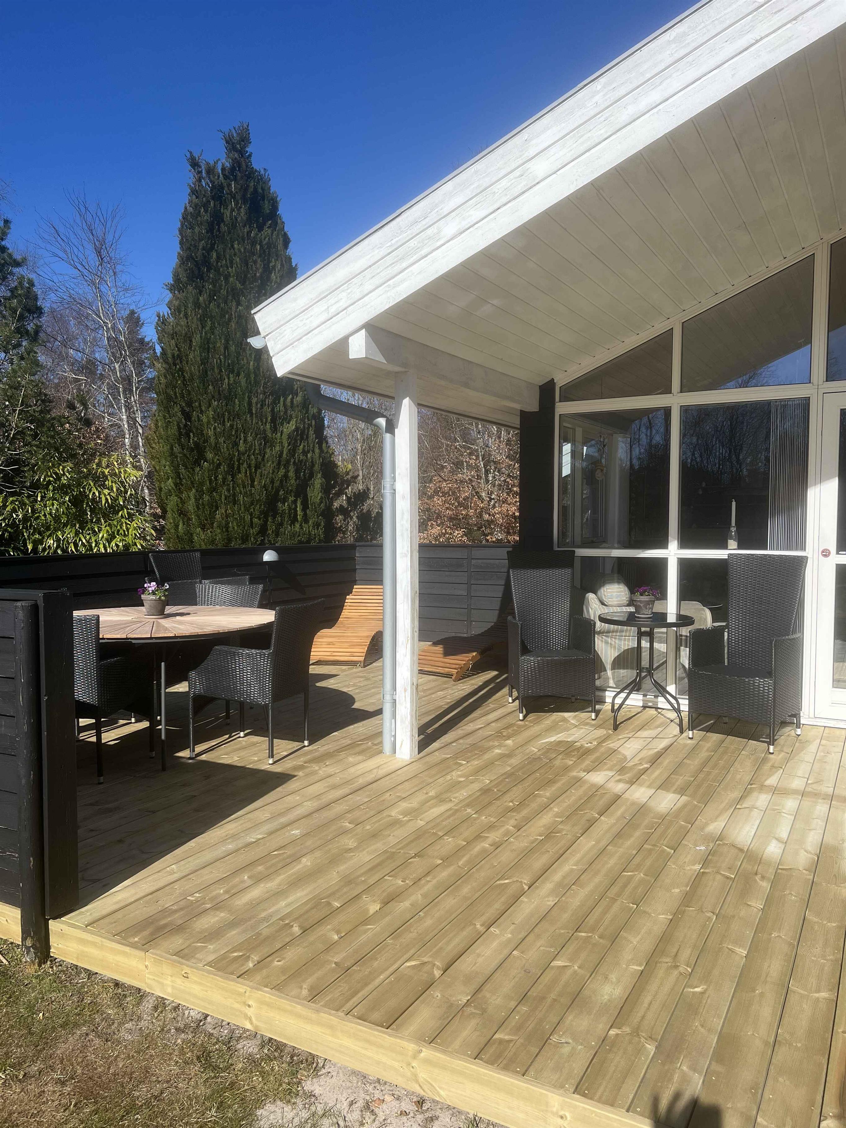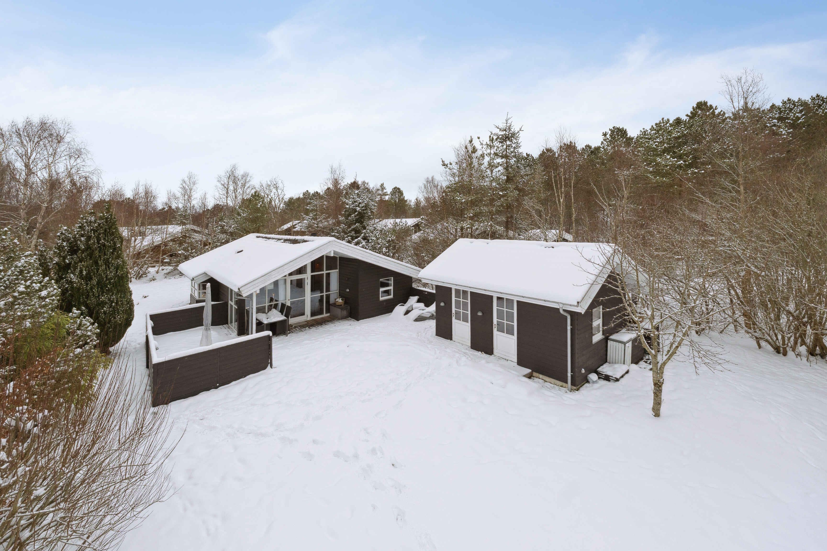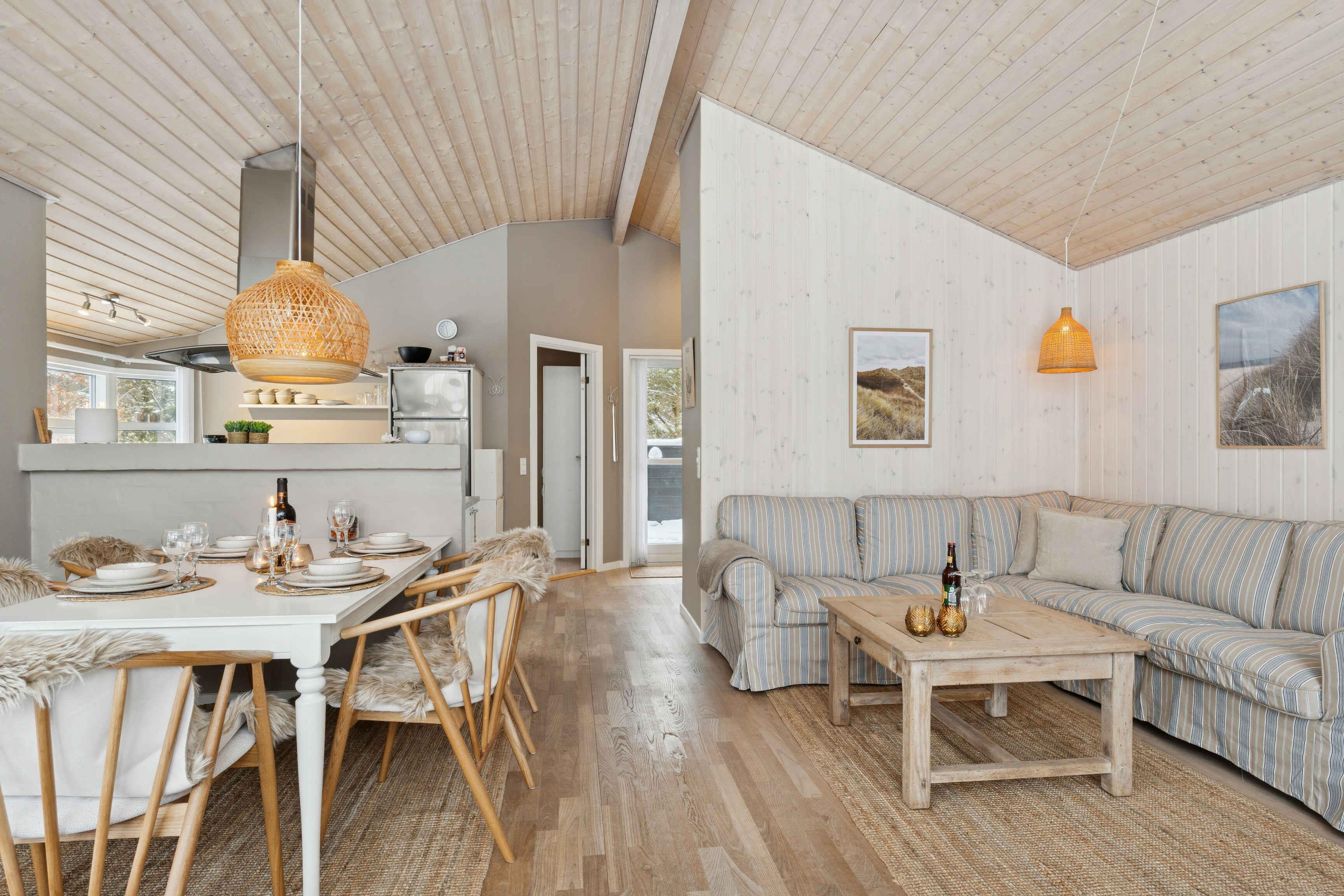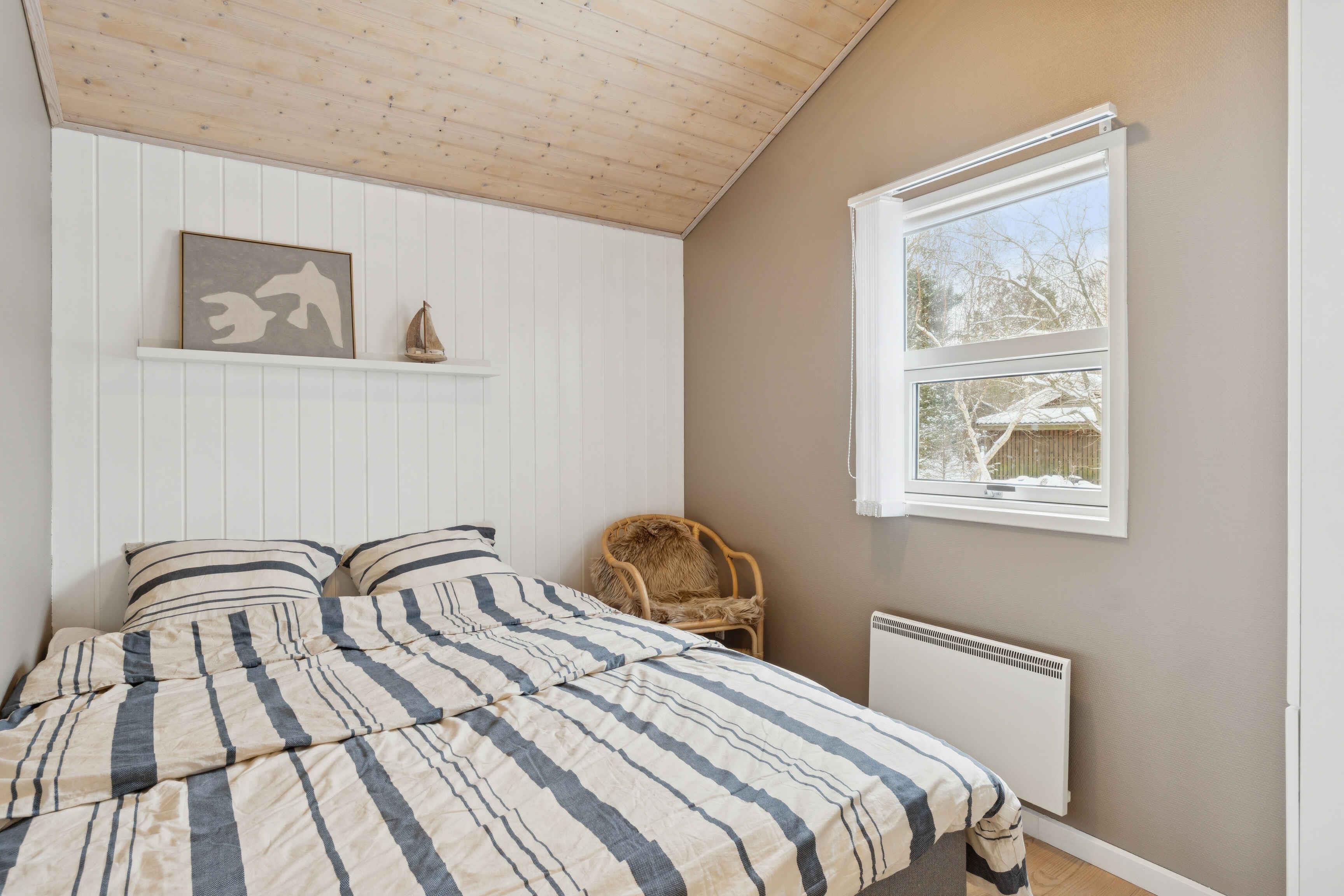 This well-maintained 70 m² holiday home offers a calm and welcoming setting for your stay. The house has been freshly painted and is neat and presentable, with wooden wall panels that create the classic holiday-home atmosphere many associate with relaxation and togetherness. The layout is practical with three bedrooms and sleeping space for up to five guests. Two bedrooms are located in the main house with beds measuring 160 cm and 140 cm. The third bedroom is in the annex, featuring new wooden floors and a 180 cm double bed. The living area is the heart of the house and invites quality time together. A wood-burning stove adds extra coziness on cooler days, while the covered wooden terrace extends outdoor living and makes it easy to enjoy meals and peaceful moments sheltered from the wind. The area surrounding the holiday home is known for its tranquil atmosphere, open landscapes, and distinctive Northern Jutland calm. Ålbæk Beach is wide and child-friendly, ideal for swimming, seaside walks, and quiet evenings overlooking the sea. The town of Ålbæk is close by, offering a harbor, shops, and restaurants. Råbjerg Mile, Ålbæk Plantation, and Skagen are also excellent destinations for day trips. Nature is always close at hand, providing great opportunities for cycling, hiking, and experiencing the surroundings at your own pace. This holiday home is an excellent choice for those seeking a well-kept vacation property with an annex, comfortable beds, a wood-burning stove, and a location where beach, nature, and attractions are easily accessible. The perfect setting for a relaxing and successful holiday.